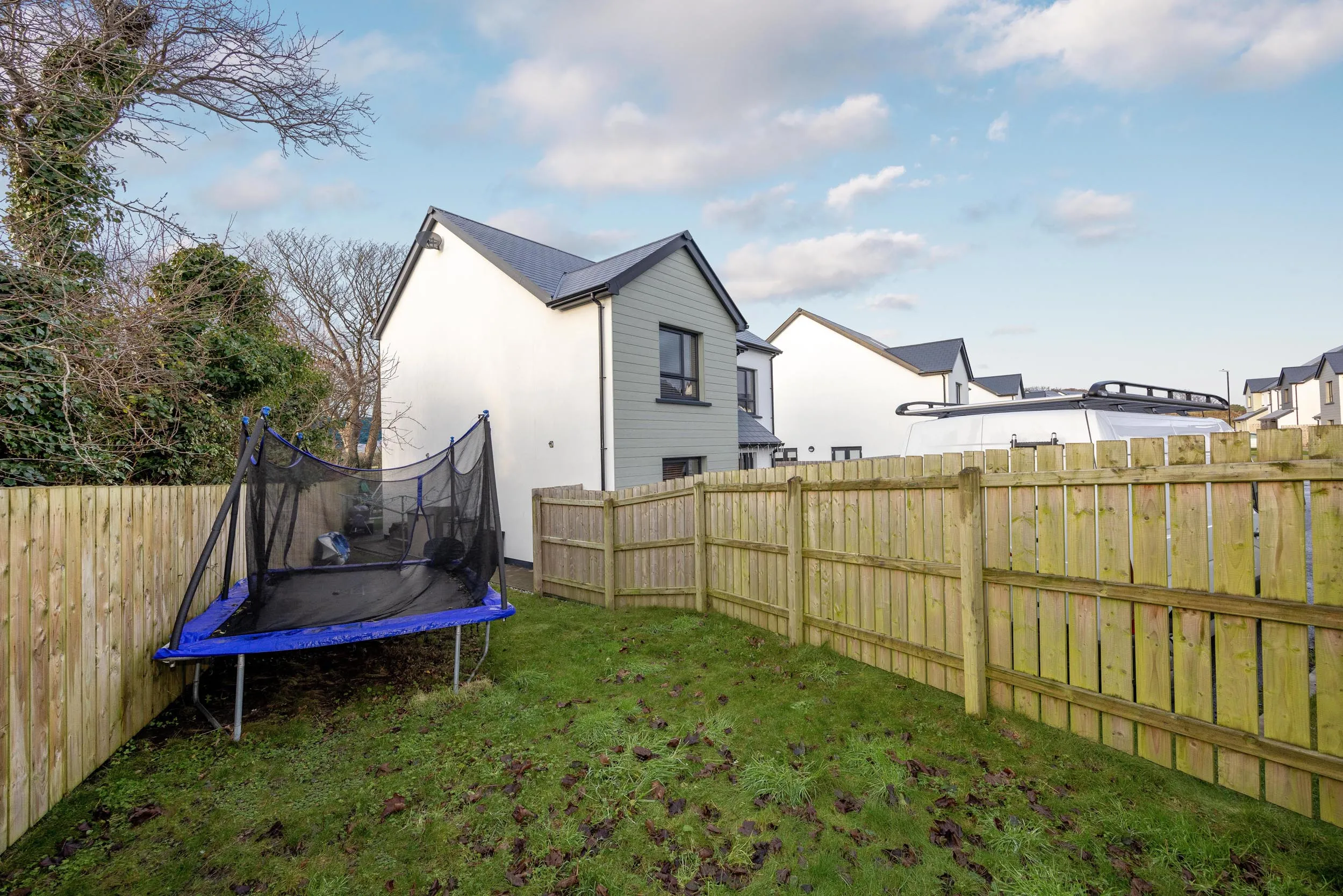 Externally, the property continues to impress. To the front, an attractive block-paved driveway provides off-road parking and access to the integral garage. The large corner plot offers excellent outdoor space, with the rear garden mainly laid to lawn, complemented by a paved patio area and a substantial composite decked terrace with pergola—ideal for outdoor dining and entertaining. An additional large landscaped area sits to the side of the property, and the plot backs onto the historic Isle of Man Steam Railway, adding a unique and charming backdrop.