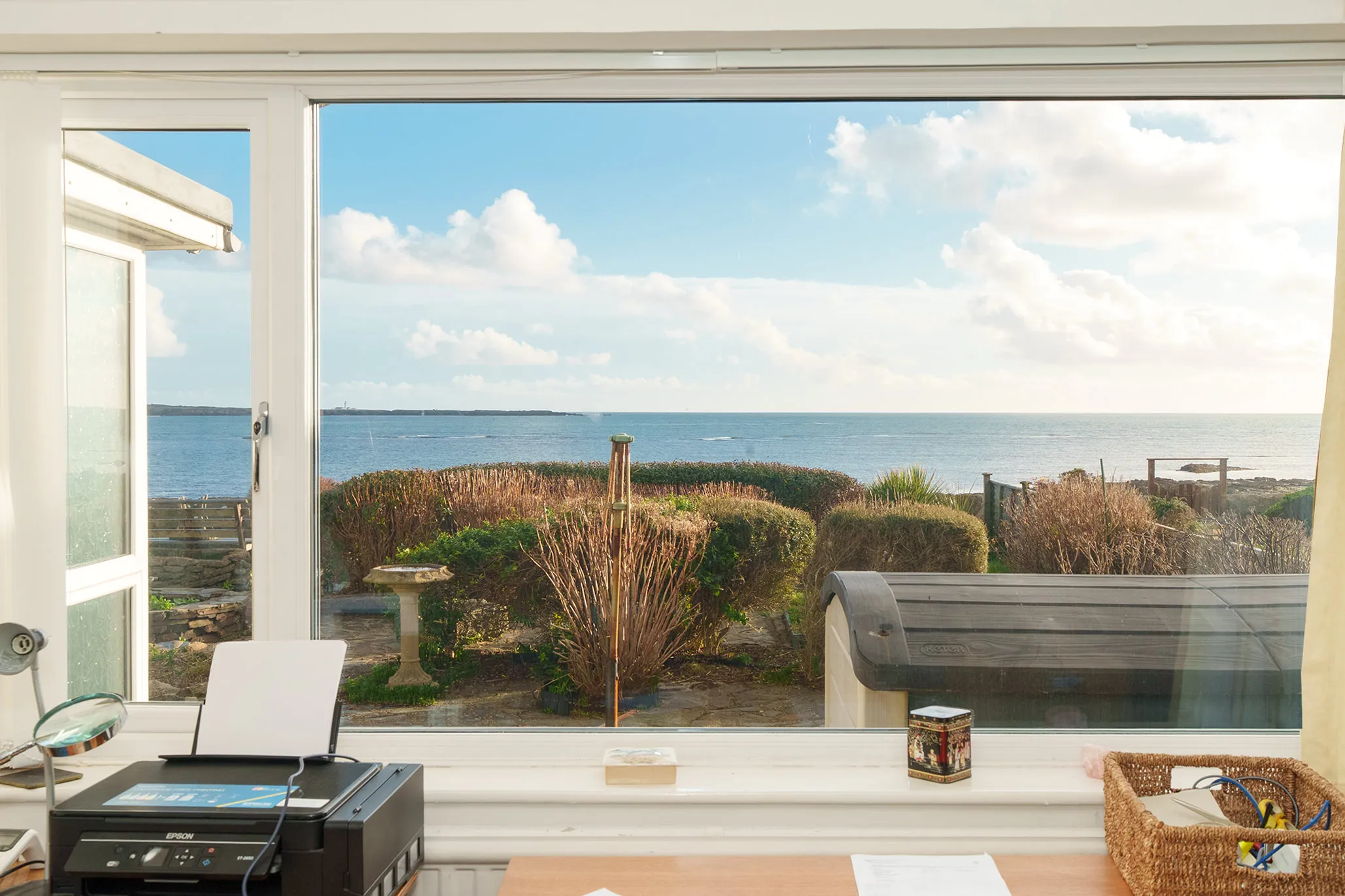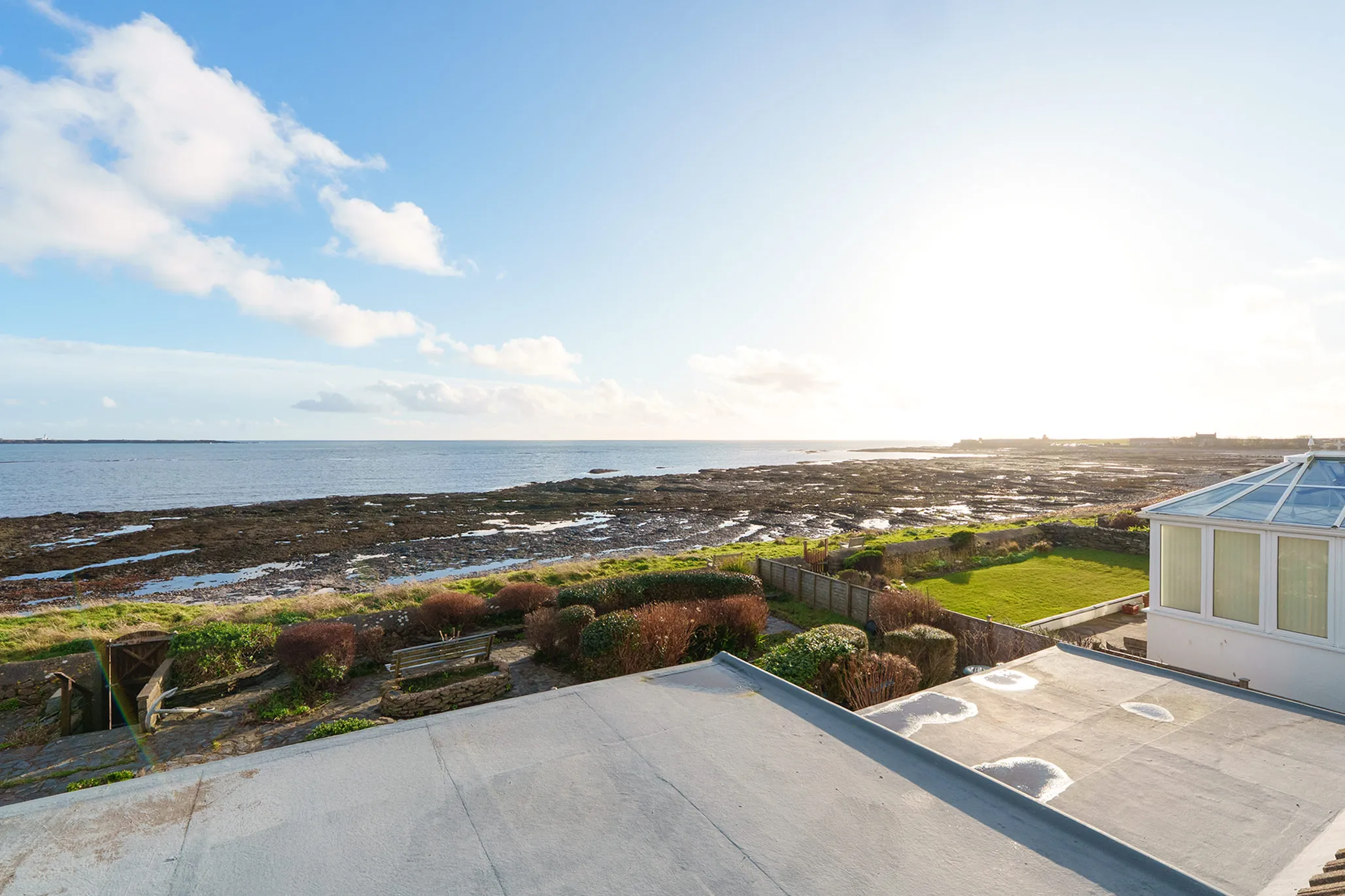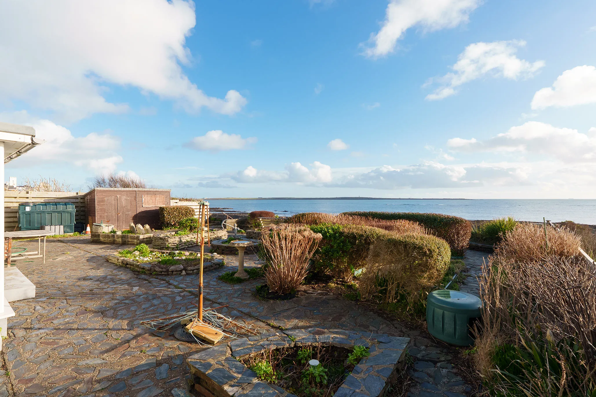 Externally, the property features a driveway providing off-road parking for multiple vehicles and access to the integral garage. To the rear is a south-facing paved garden with a storage shed and direct access onto Scarlett Road and the shoreline, creating a truly enviable coastal lifestyle.