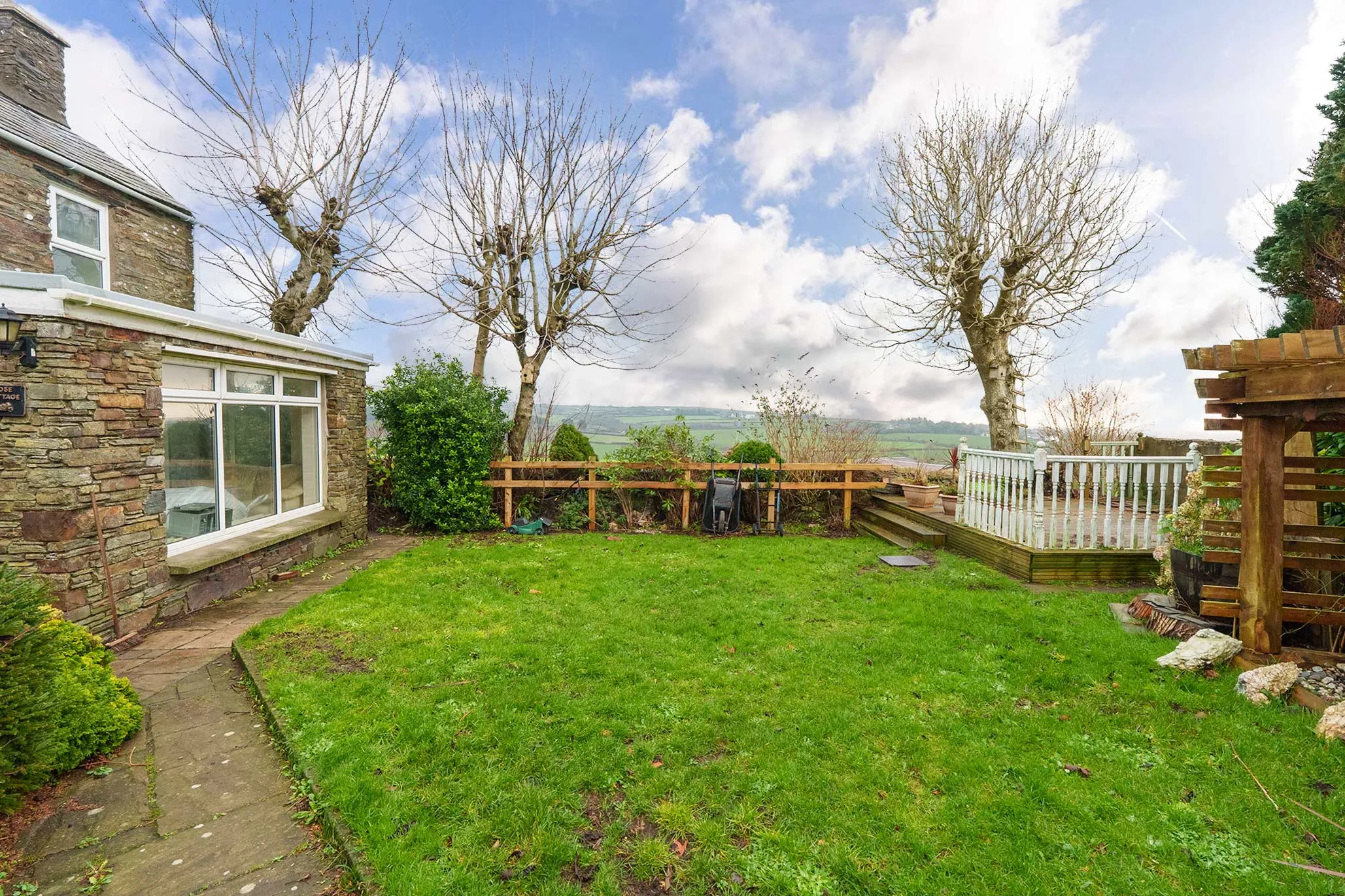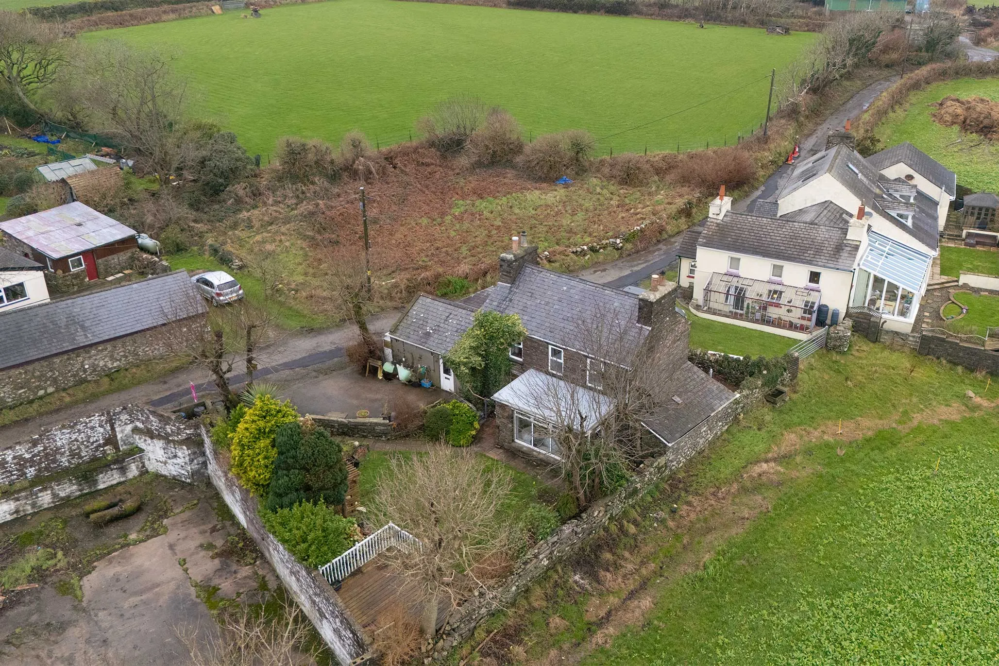 Occupying a picturesque semi-rural position, the cottage borders open fields to one side and enjoys delightful far-reaching views across the surrounding countryside and down towards the southern coastline.