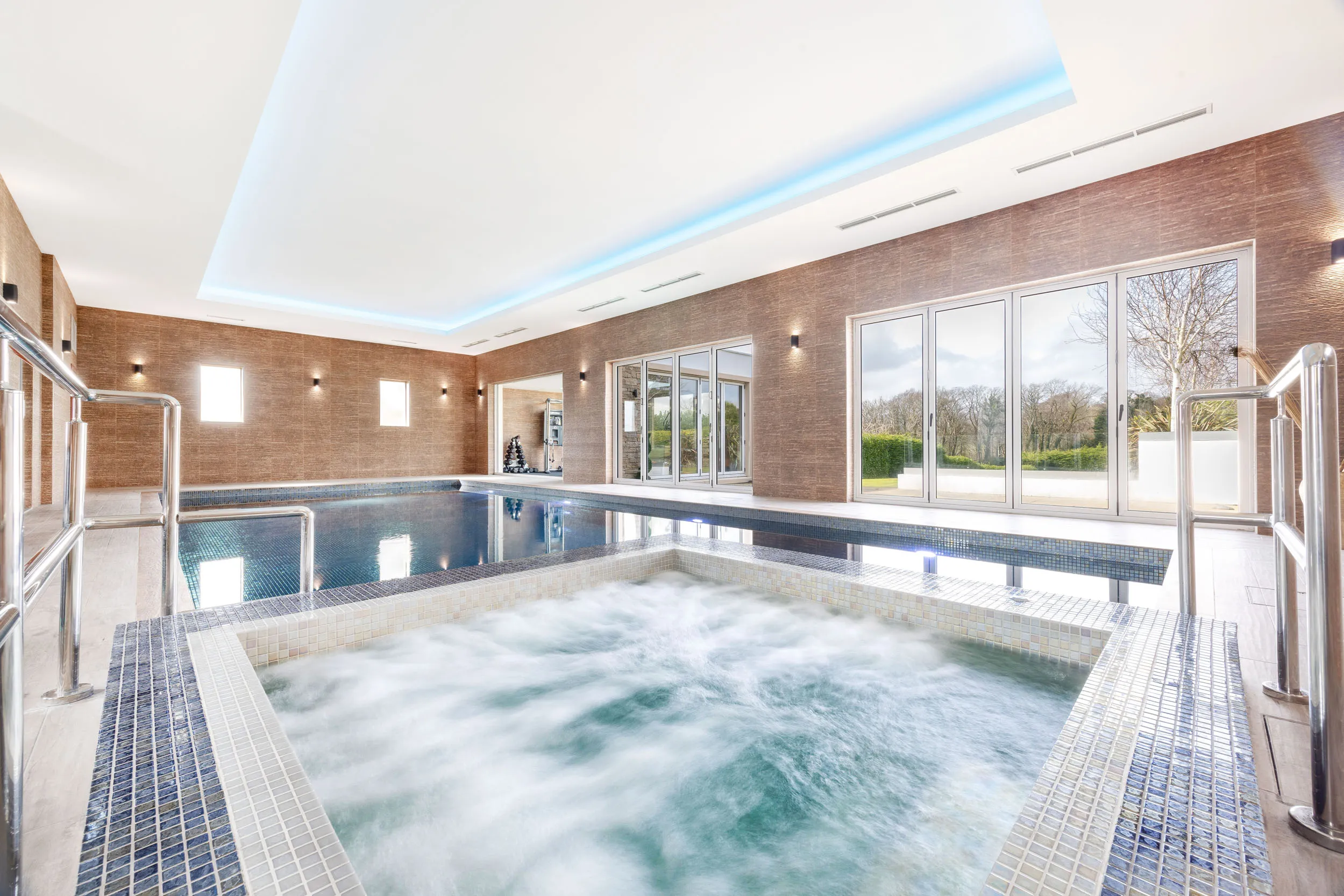 - Detached resort-style pool complex and wellness spa with a 15m pool, jacuzzi, steam room and changing facilities