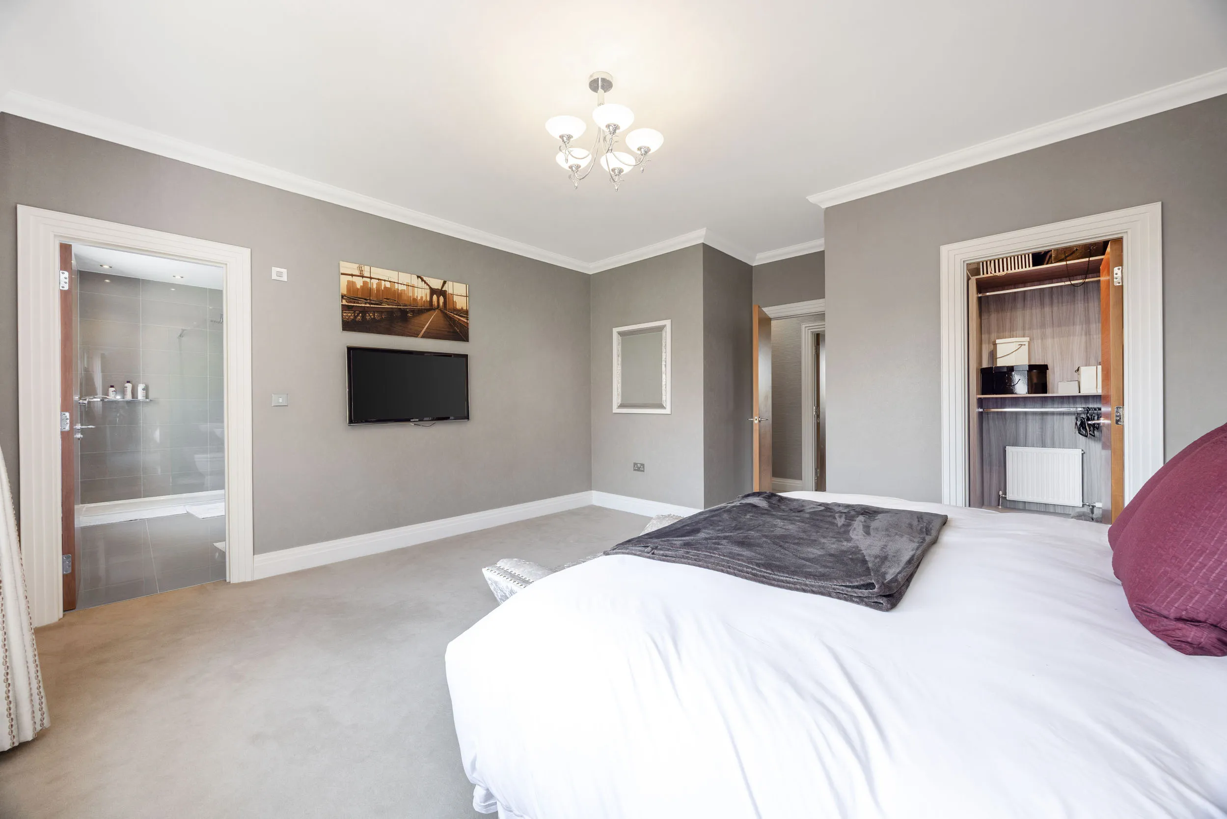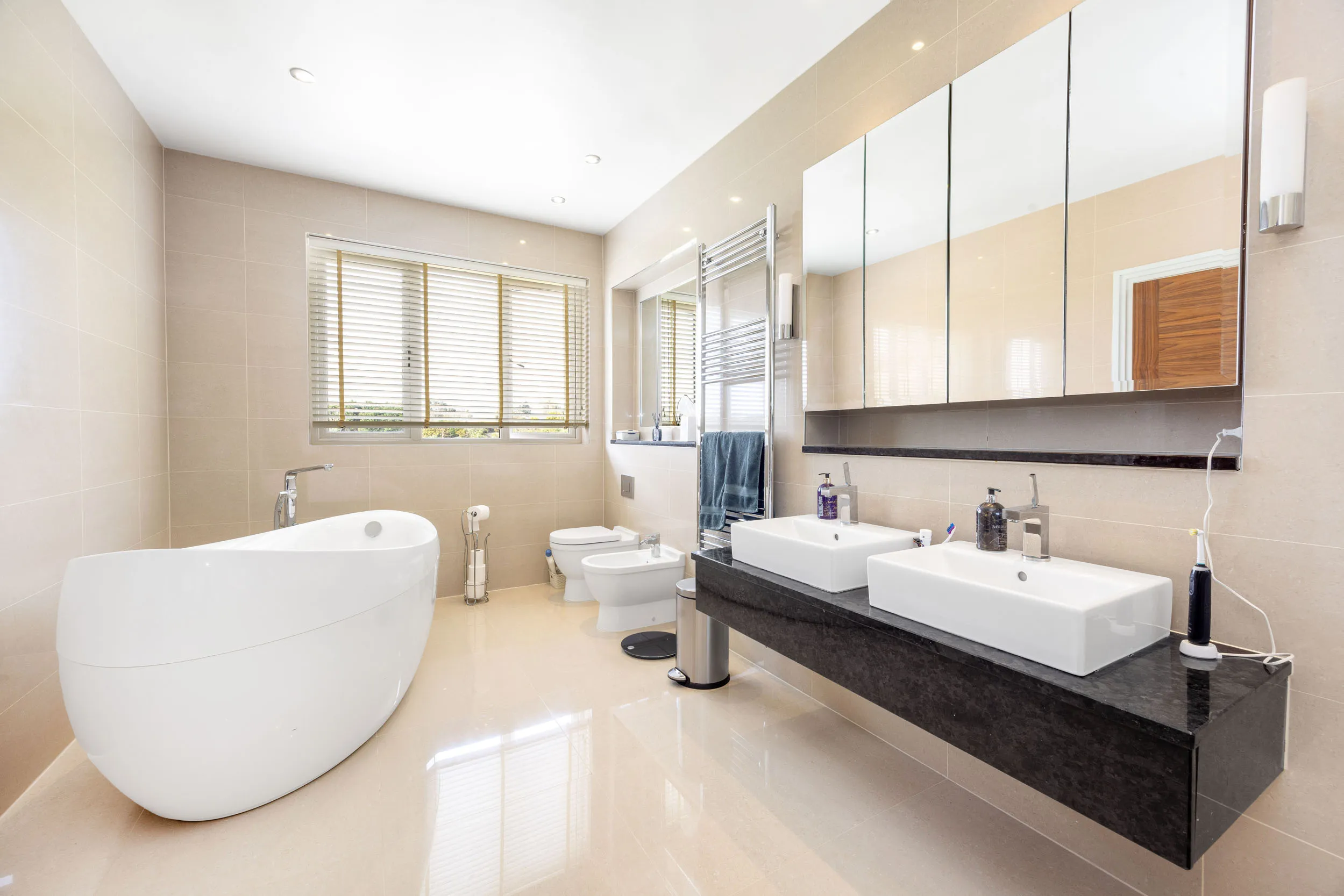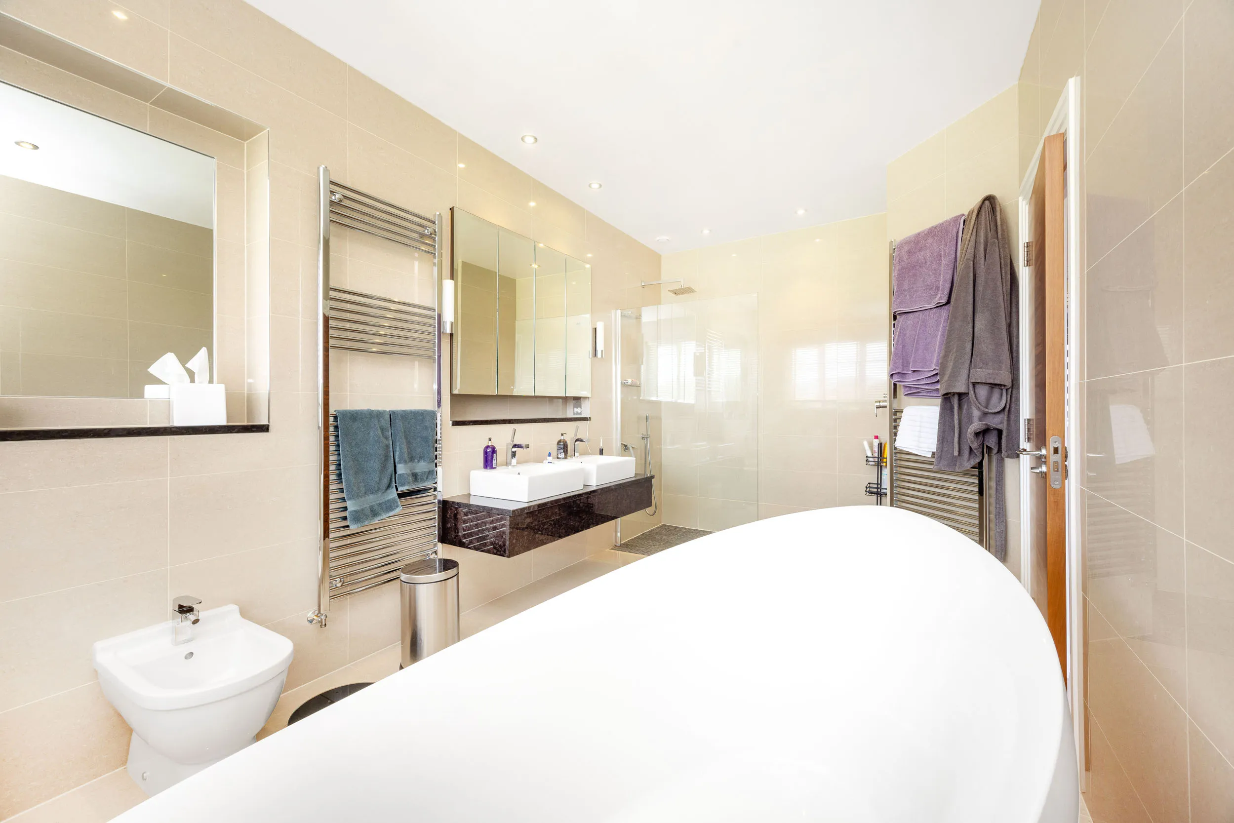 - Five double bedrooms all with en-suites and both the principal suites and the third bedroom are complemented by walk in dressing rooms