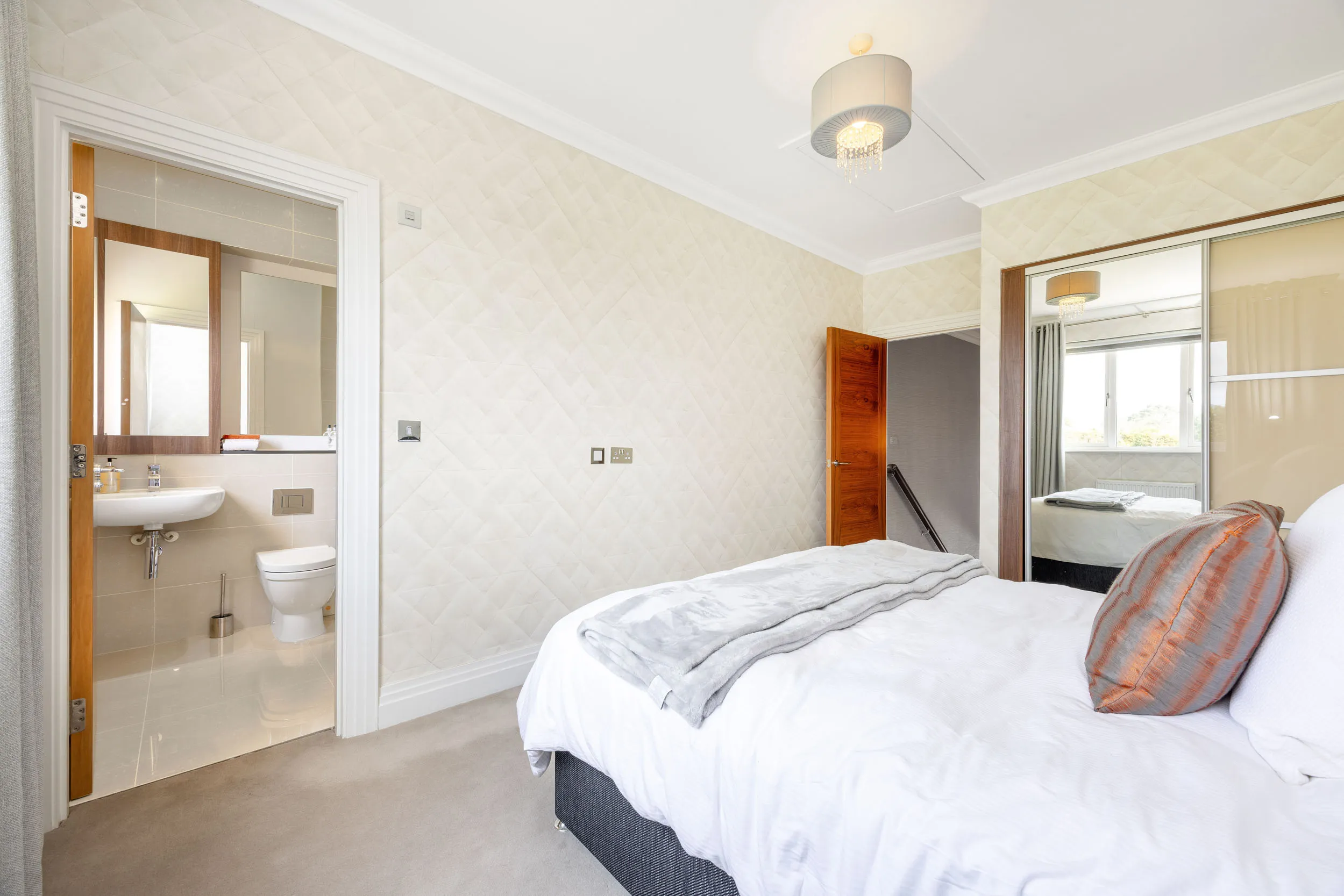 The first floor comprises five magnificent double bedrooms, each with bespoke en-suite facilities. The principal suite and two additional bedrooms are further enhanced by luxurious walk-in dressing rooms, providing exceptional storage and dressing space.