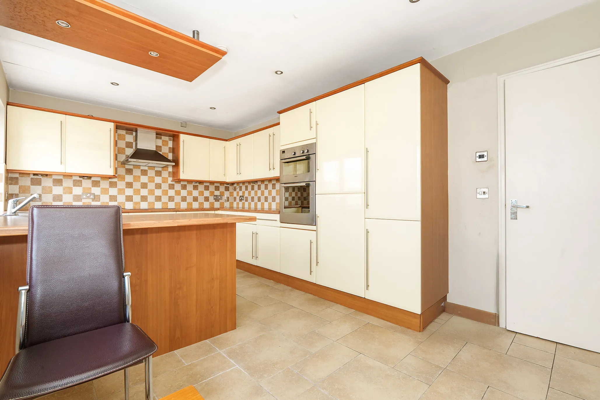 At the heart of the home is a large dual-aspect living room, creating a bright and welcoming space ideal for both relaxing and entertaining. The dining kitchen is well appointed and features a breakfast bar, offering a practical yet sociable layout.