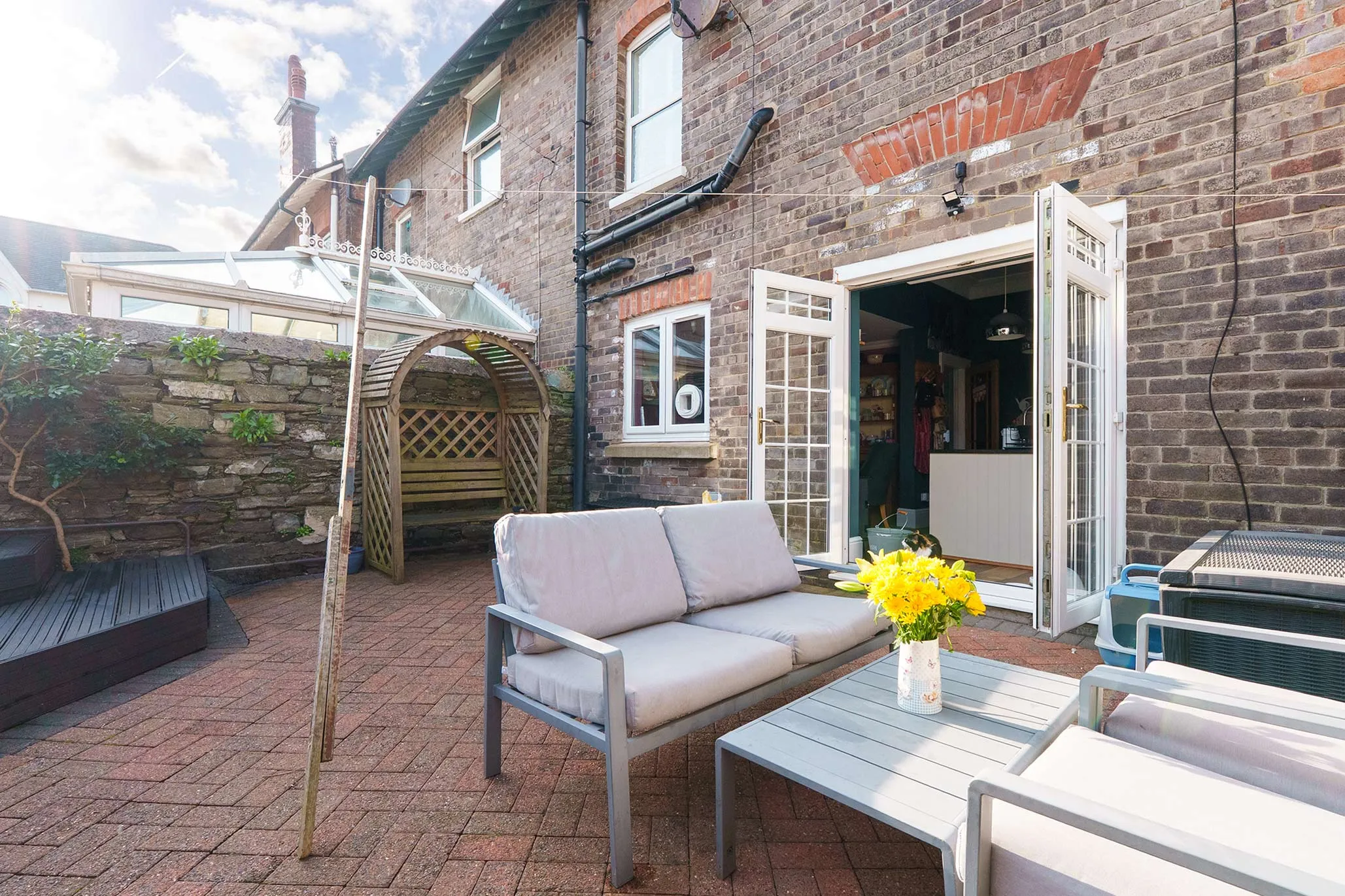 Positioned in a sought-after setting overlooking Brunswick Gardens, this striking mid-terrace townhouse has been thoughtfully restored, blending period character with carefully considered modern upgrades.
