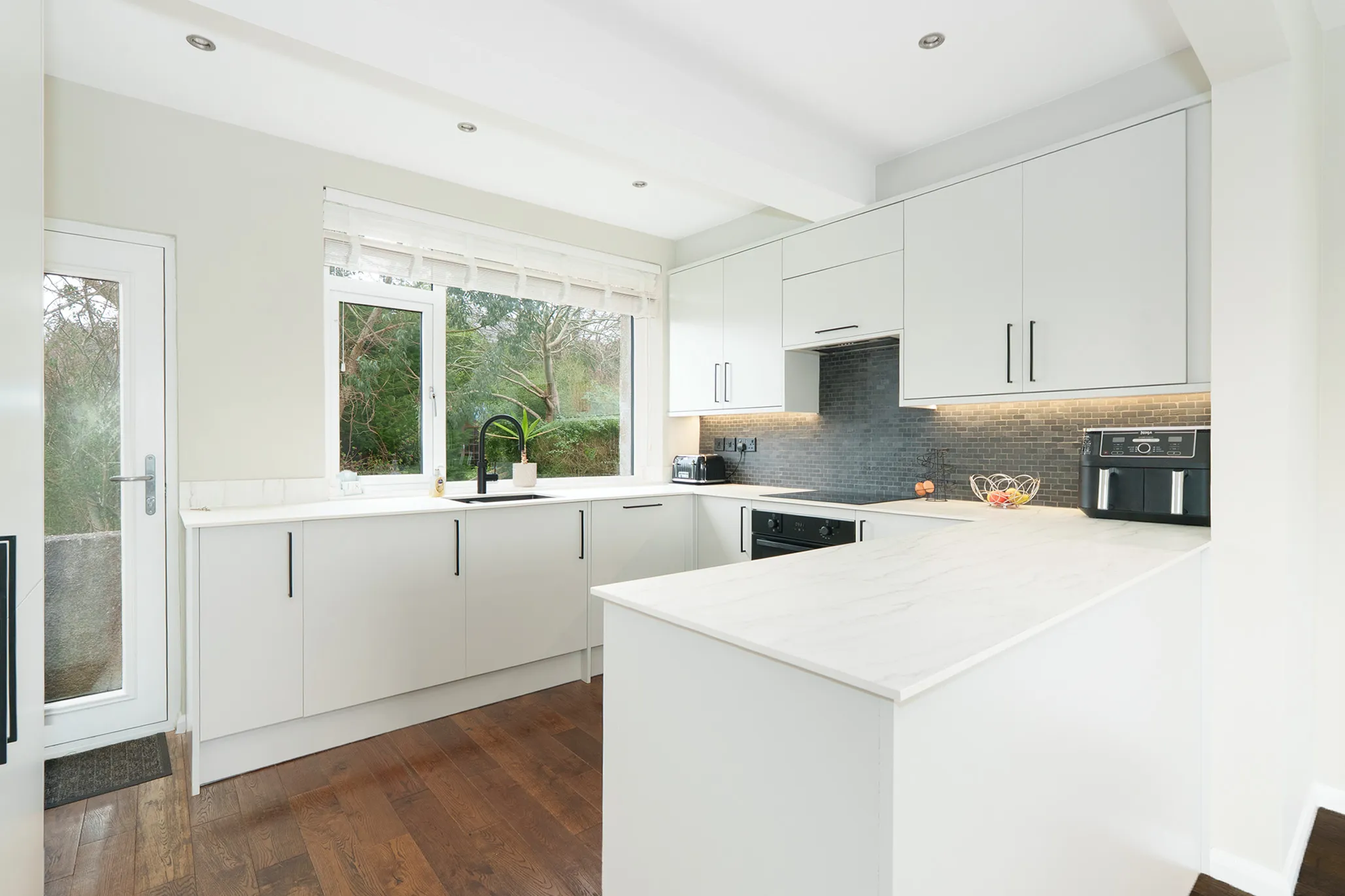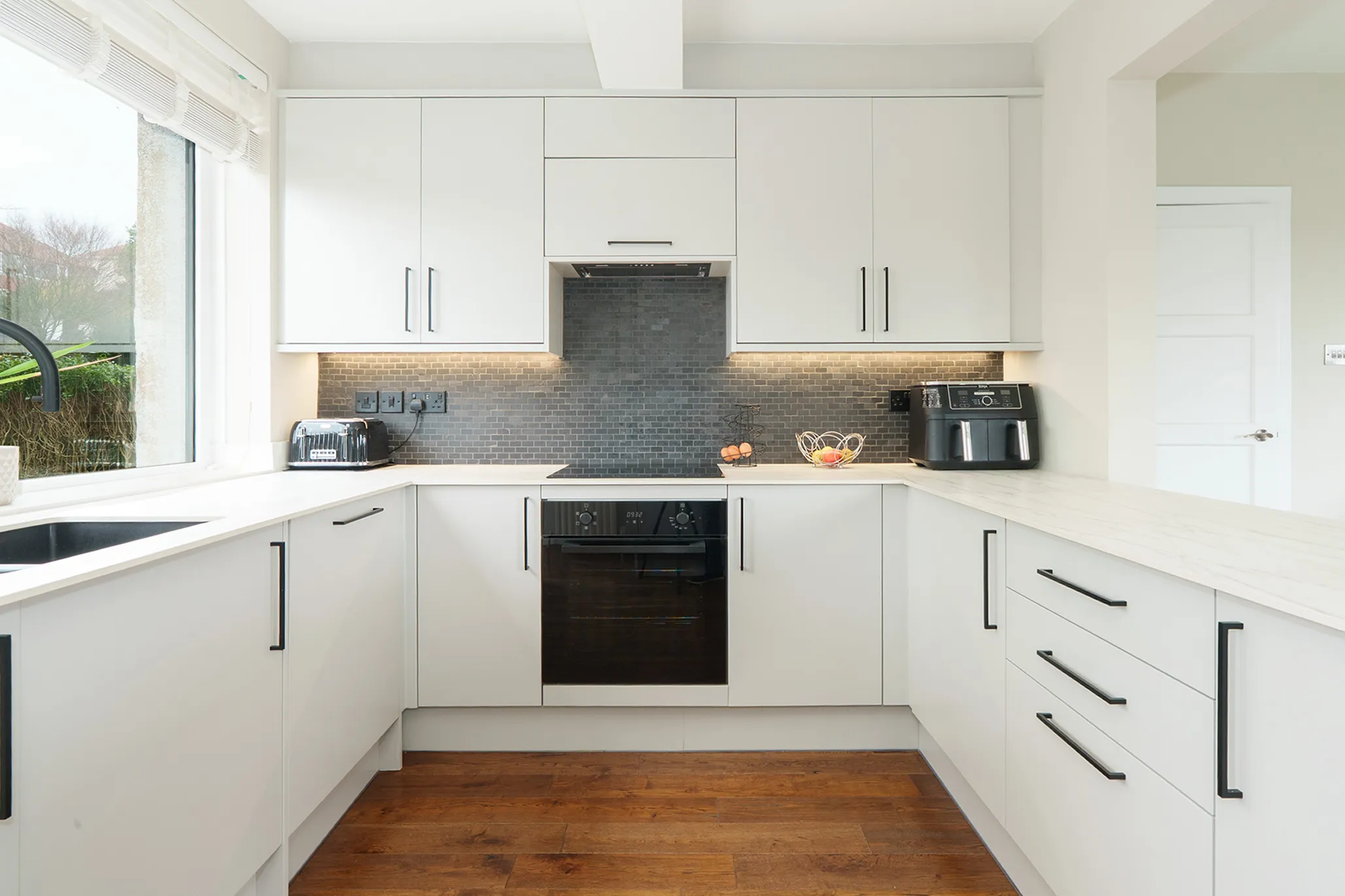 Appliances Oven and 4 ring induction hob, dishwasher, fridge, freezer and washing machine/dryer, Quooker tap