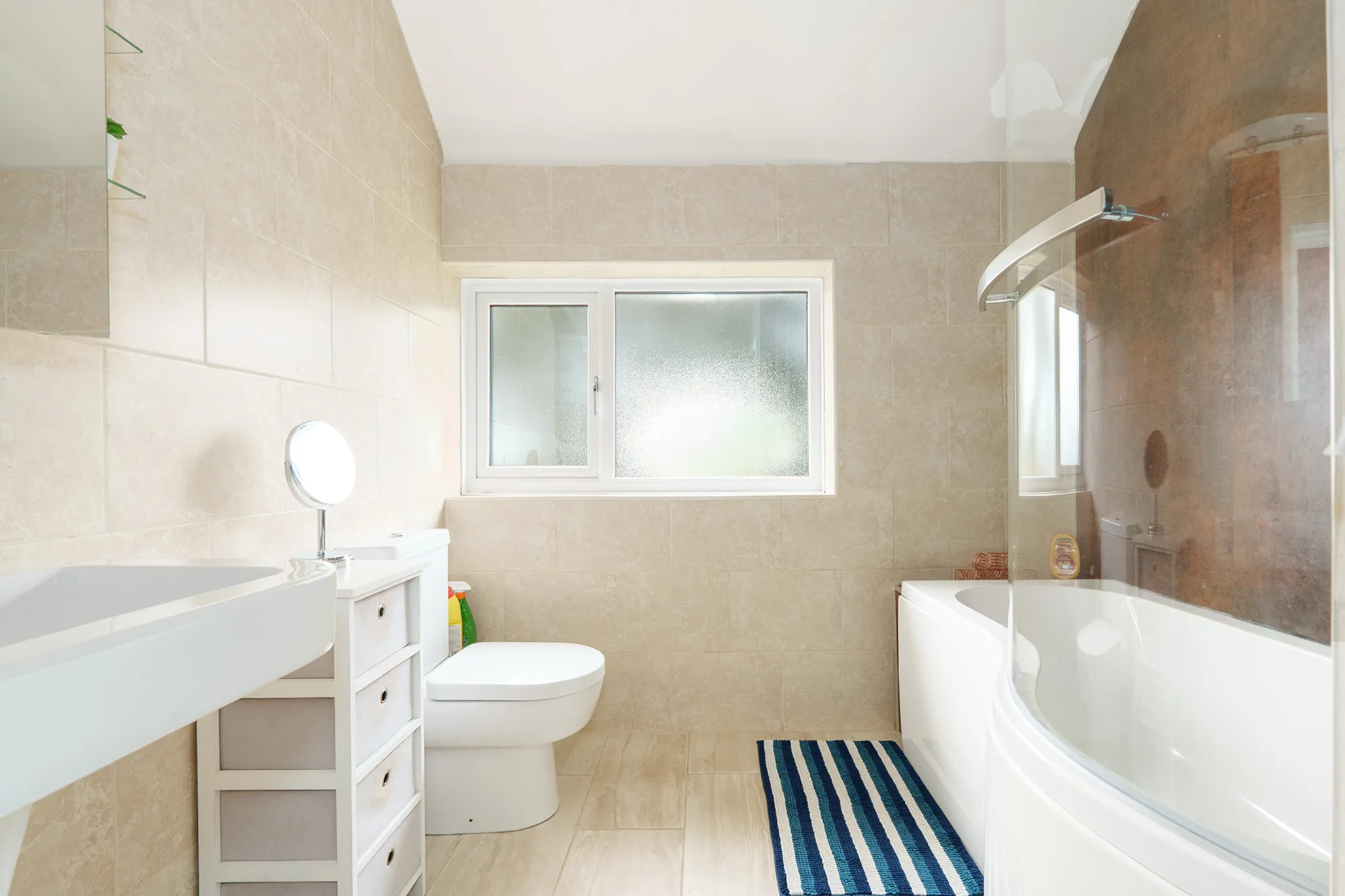 There are three good-sized bedrooms, complemented by two bathrooms, including a family bathroom and a rarely available en-suite shower room for this style of property.