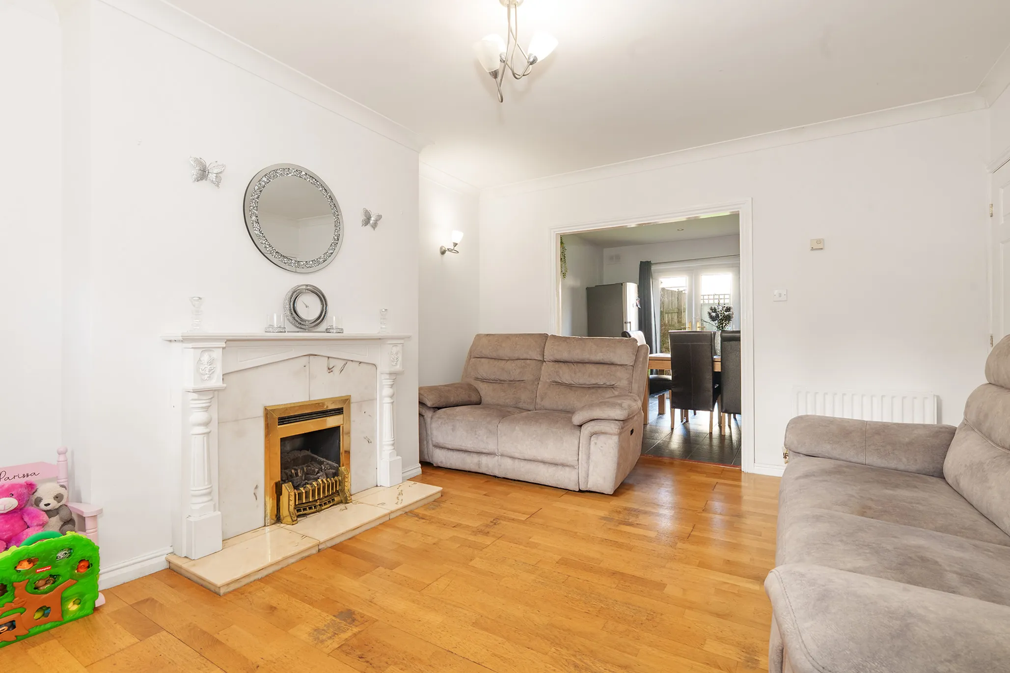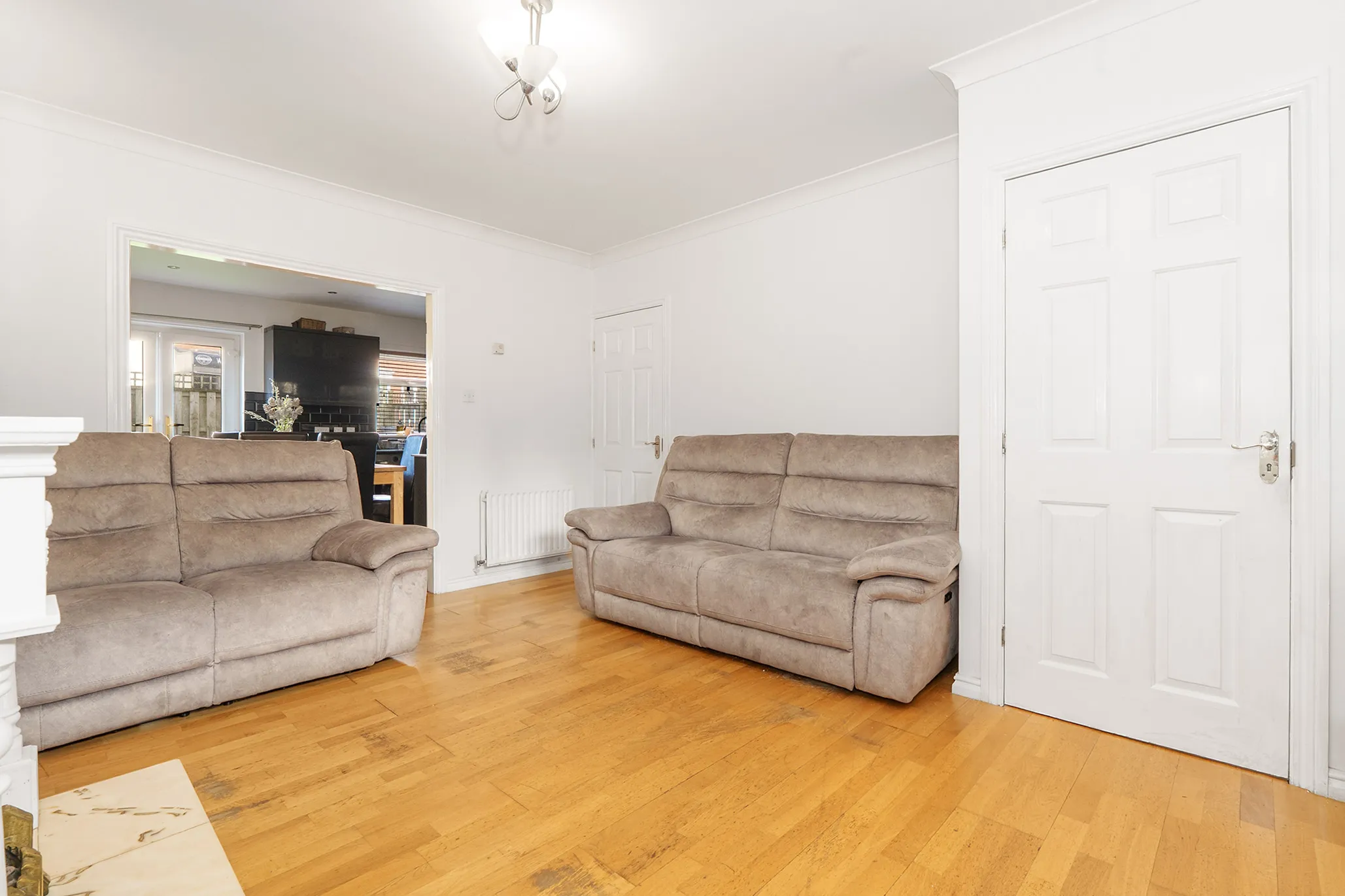 Internally, the accommodation is well presented throughout and comprises a welcoming living room and a modern, stylish dining kitchen, which provides direct access to the rear garden—perfect for both everyday family living and entertaining.