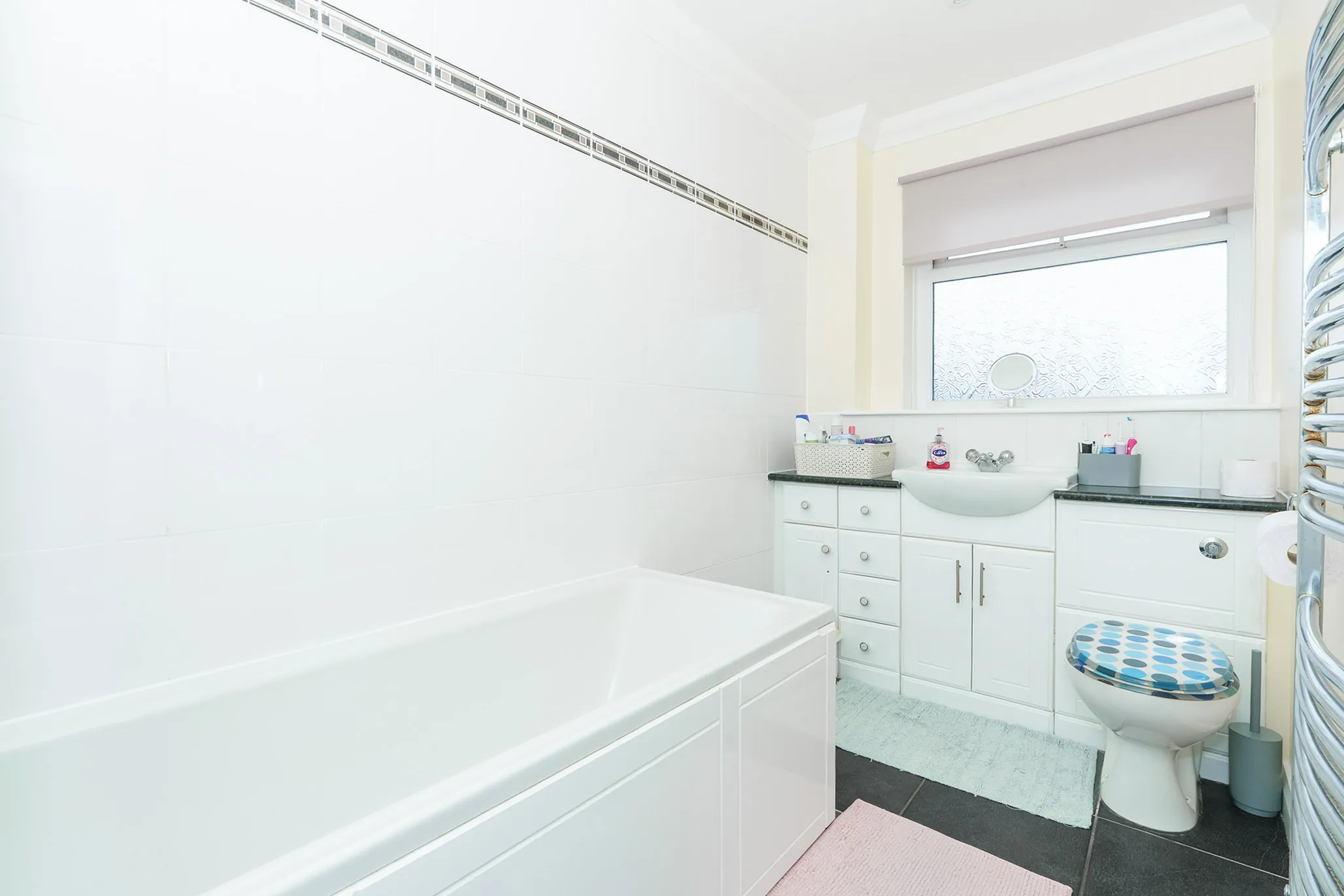 Externally, the property enjoys a low-maintenance south-facing outdoor space, including a patio and stoned garden area, perfect for enjoying the sunshine with minimal upkeep. Additionally, a garage (with number 24 on) is located within a nearby row of garages, providing valuable secure parking or storage.