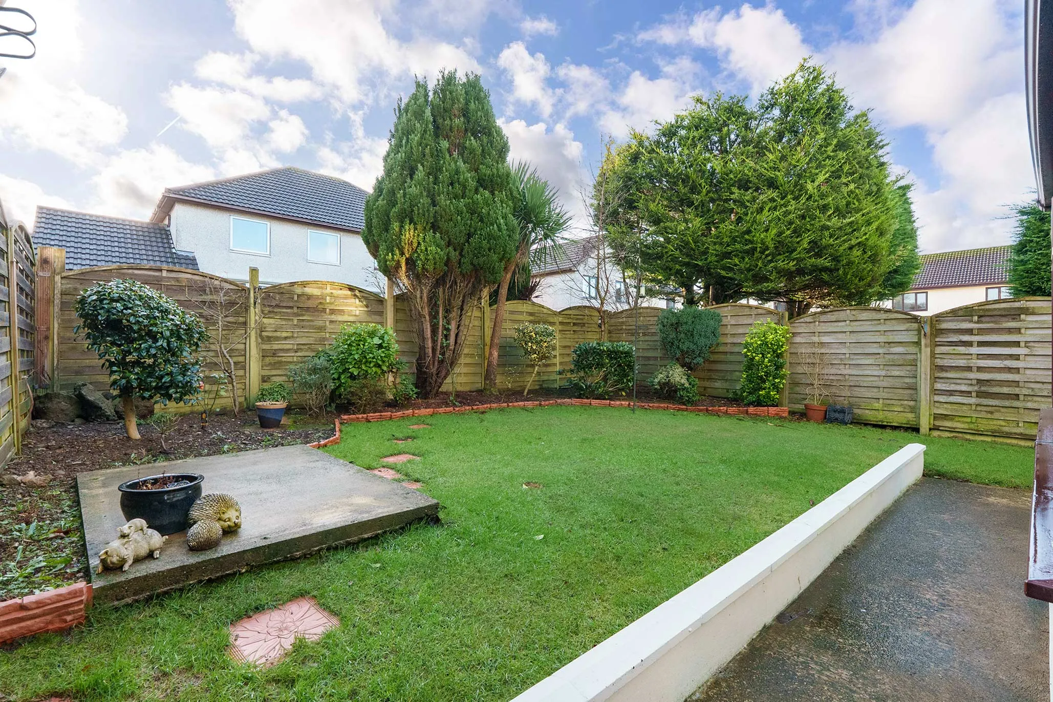 - Driveway with access to the attached garage, lawned garden and established shrubs