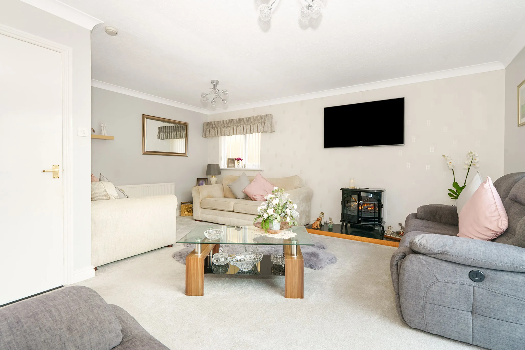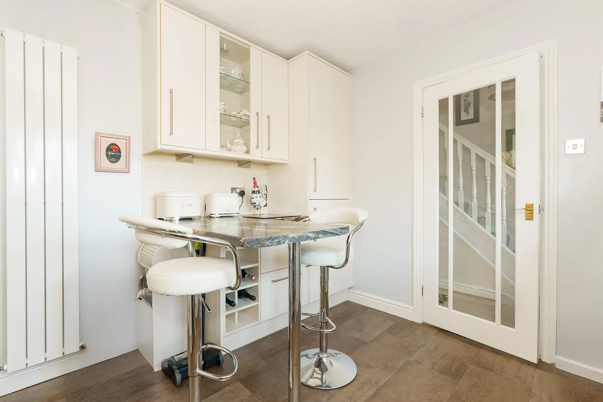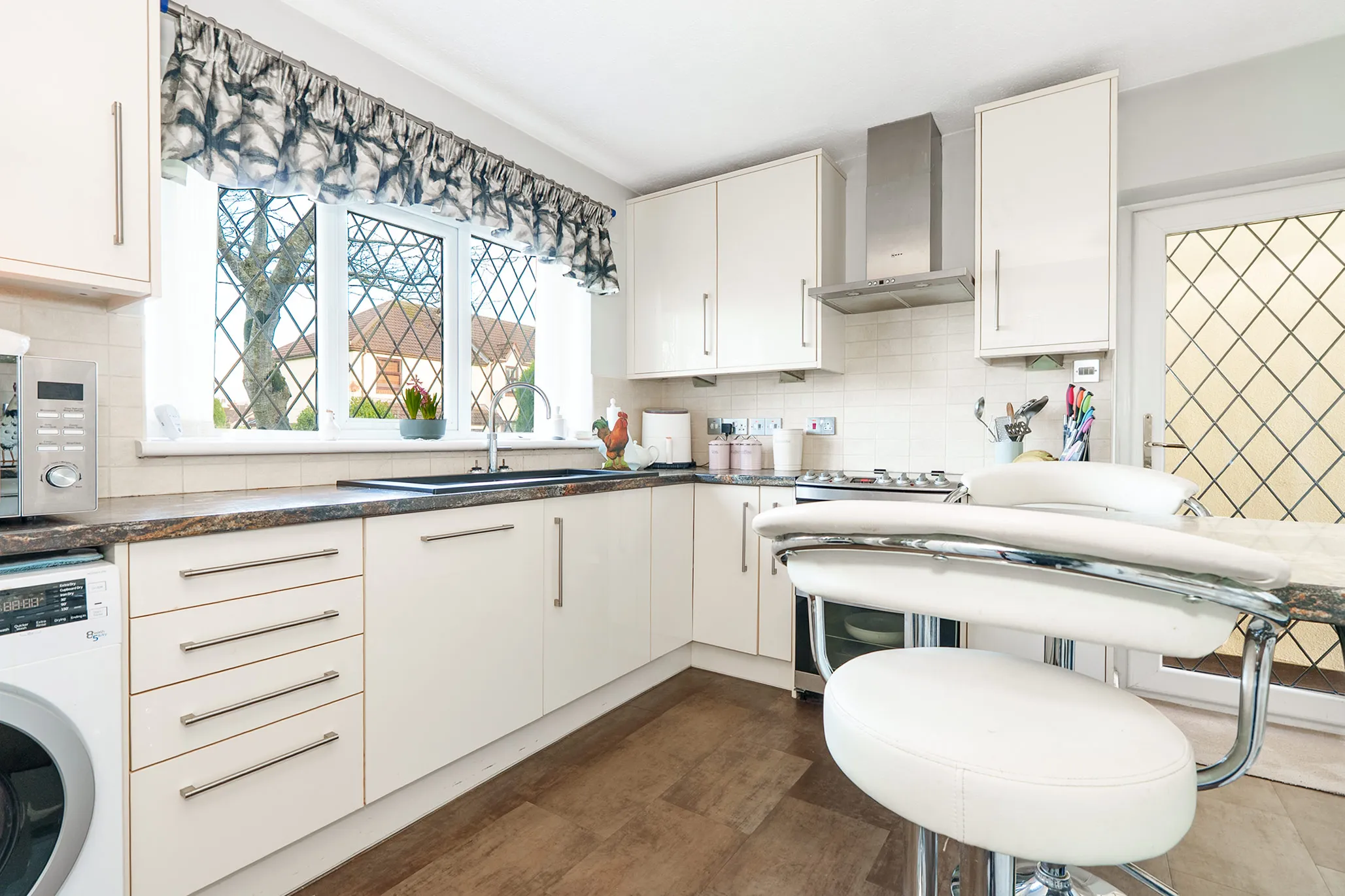The property also features a separate modern kitchen, thoughtfully designed with breakfast bar seating, creating a practical and sociable space for everyday family life.
