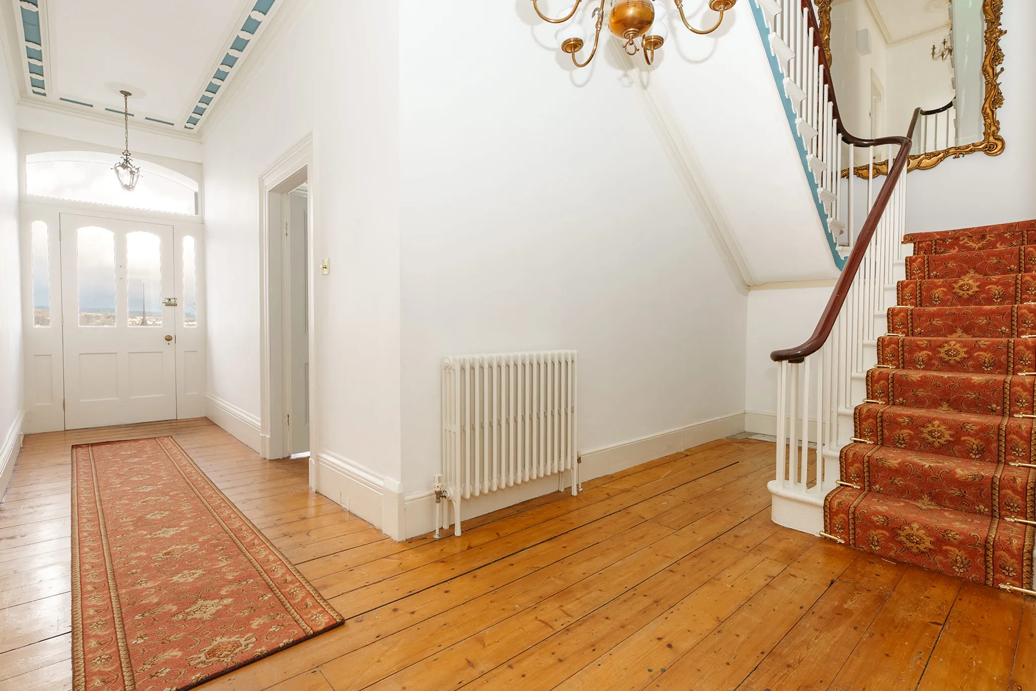 - Entrance porch, cloakroom (WC), glazed atrium and characterful reception hallway