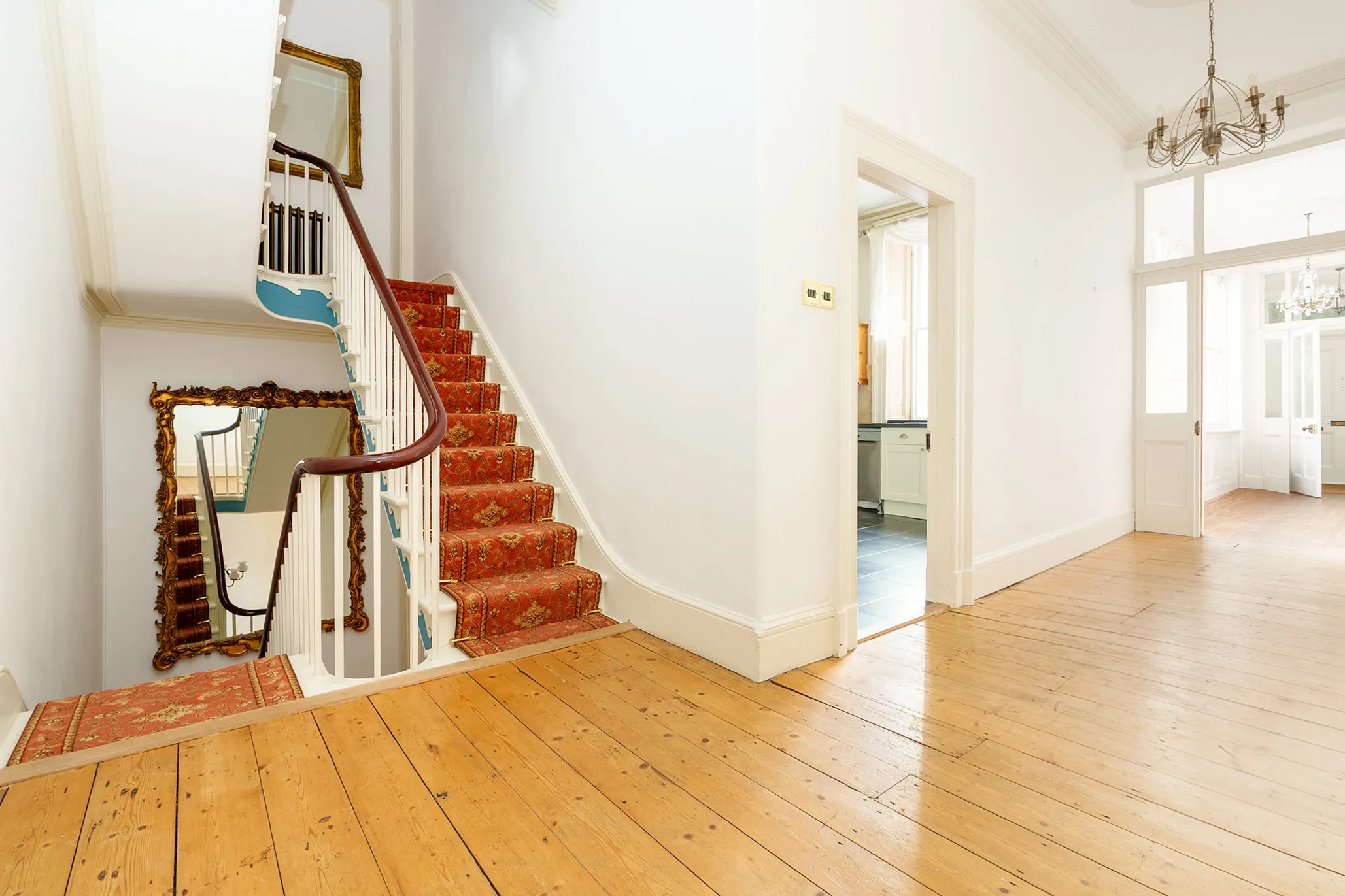 Rich in character, this exquisite home showcases an array of original period features, including soaring high ceilings, intricate decorative cornicing, a charming period fireplace, and elegant stripped wood flooring, all blending seamlessly with its timeless design.