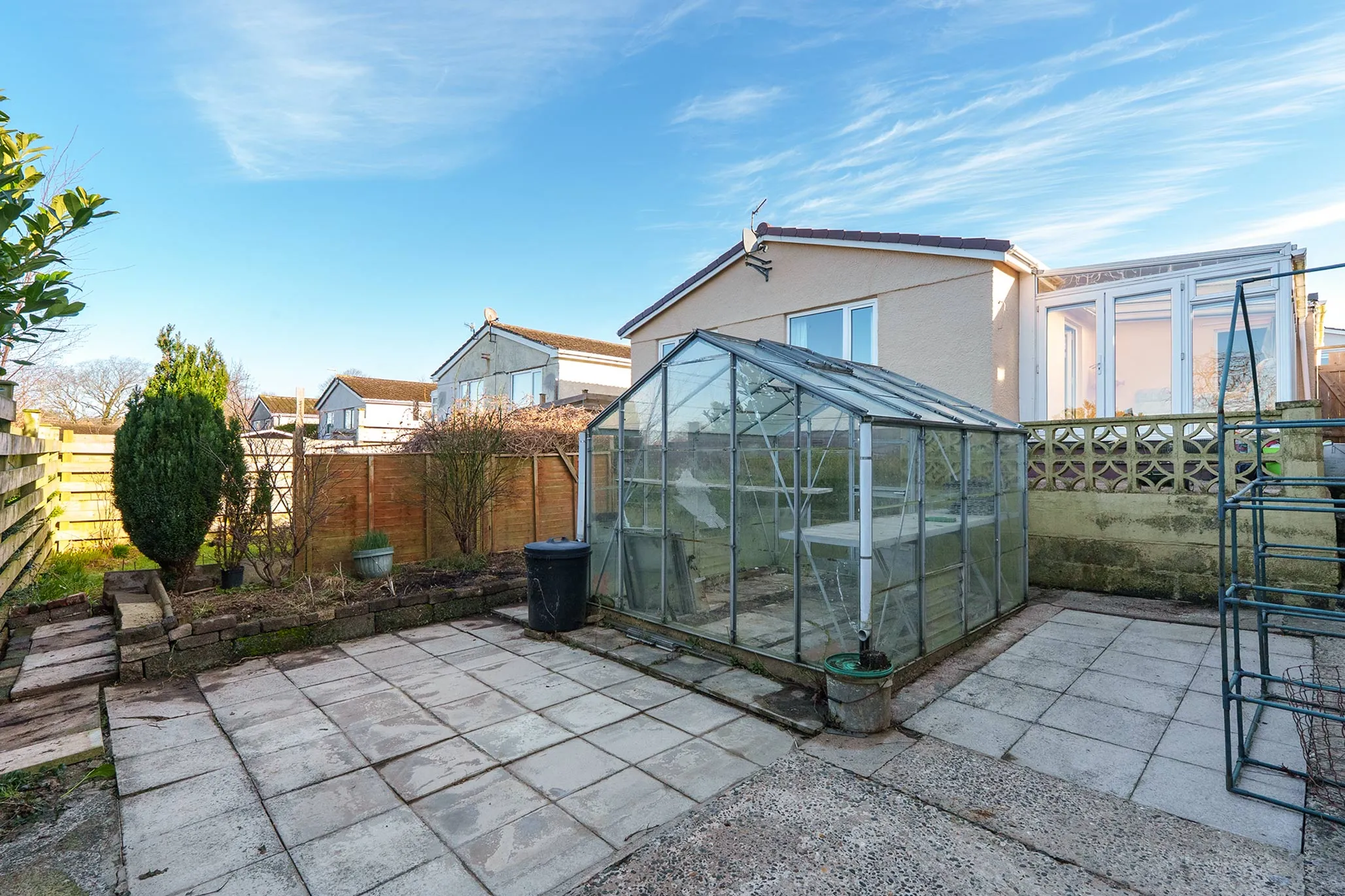 - Externally there is a good sized garden with greenhouse, paved patio and lawned area - enjoying much of the daytime and evening sun