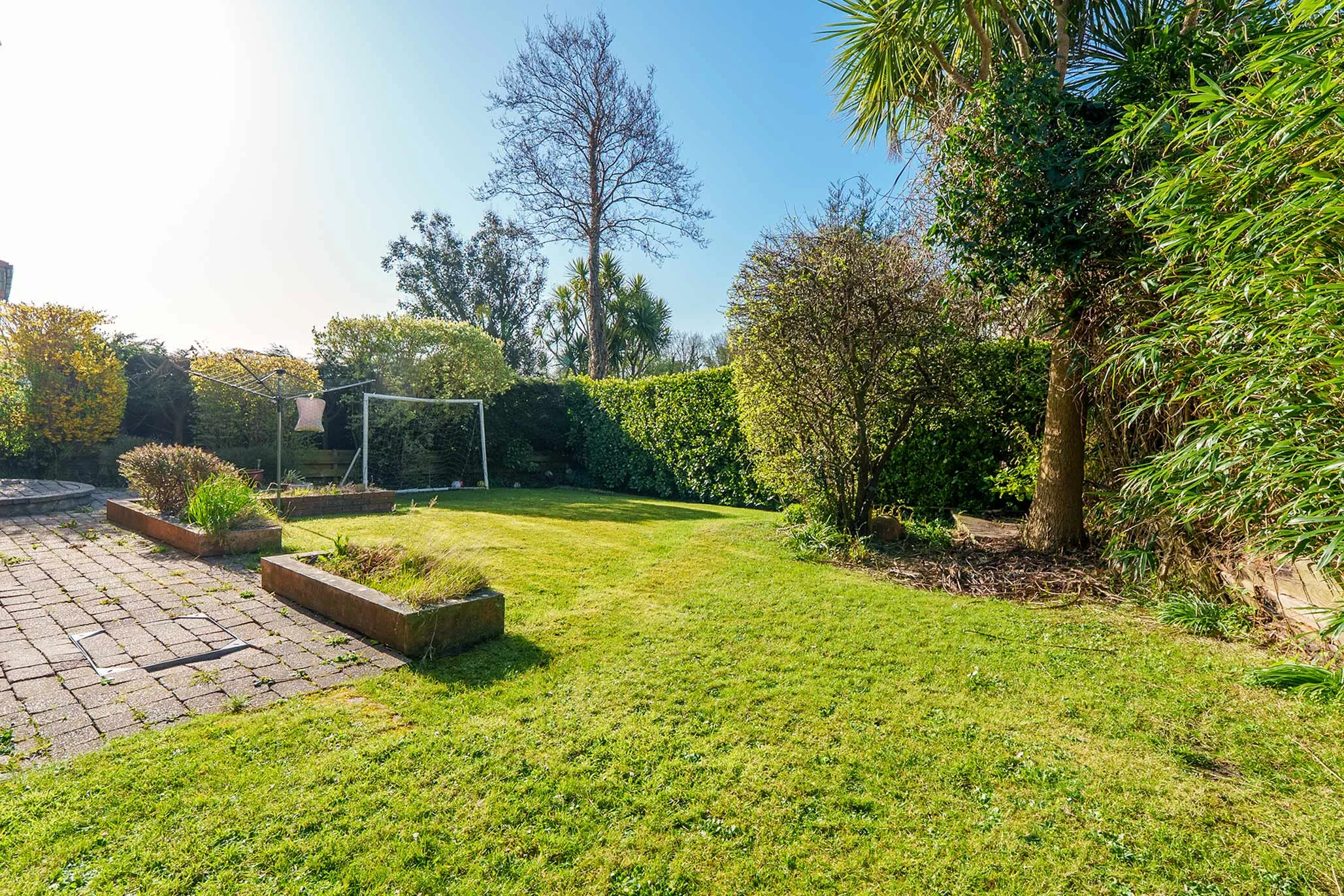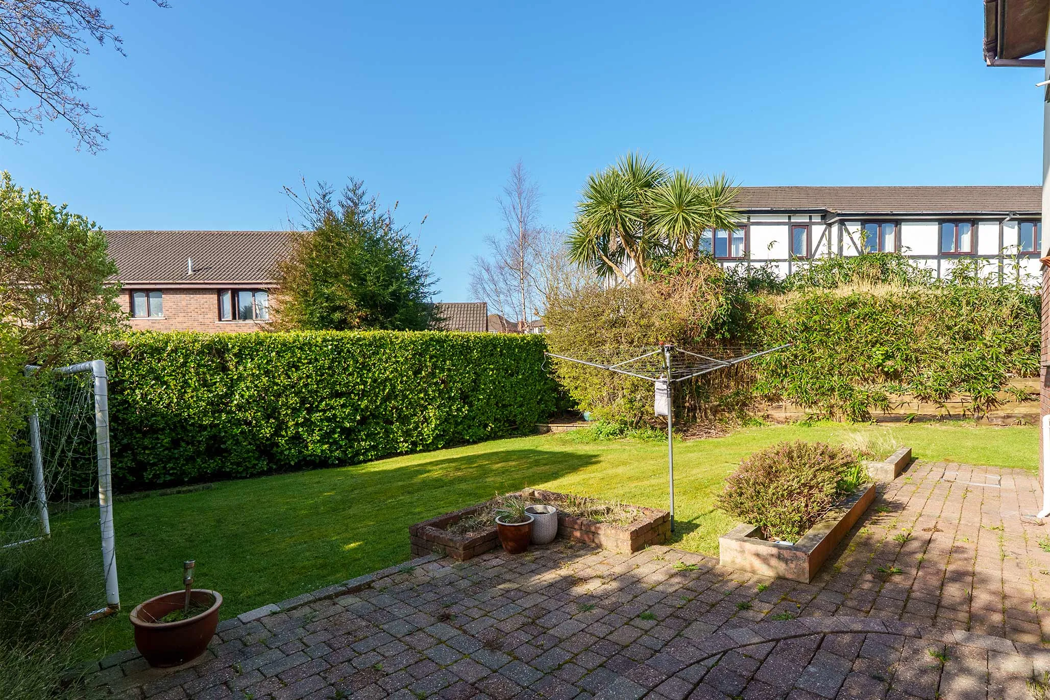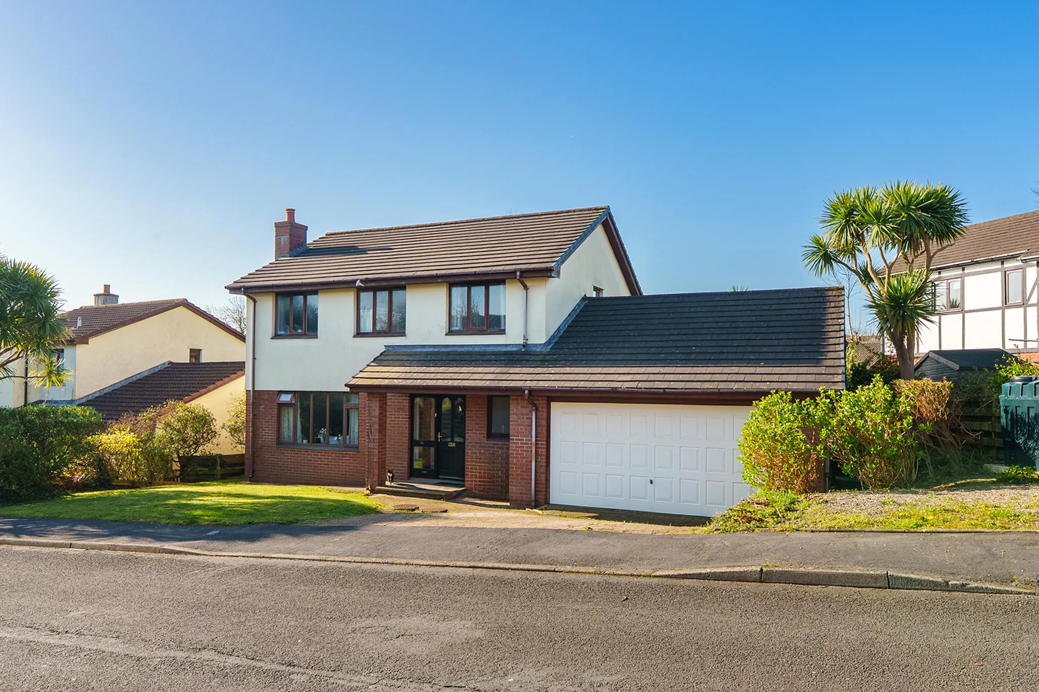 - Driveway providing off-road parking for multiple cars and access to the internal large garage