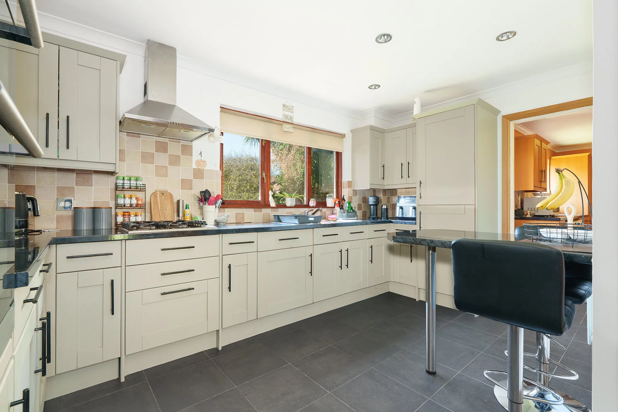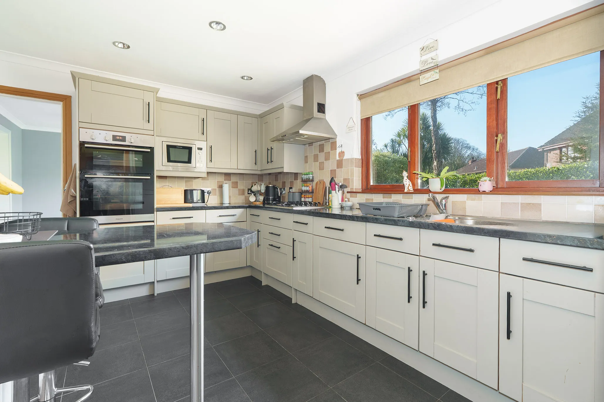- Modern kitchen with breakfast bar seating area