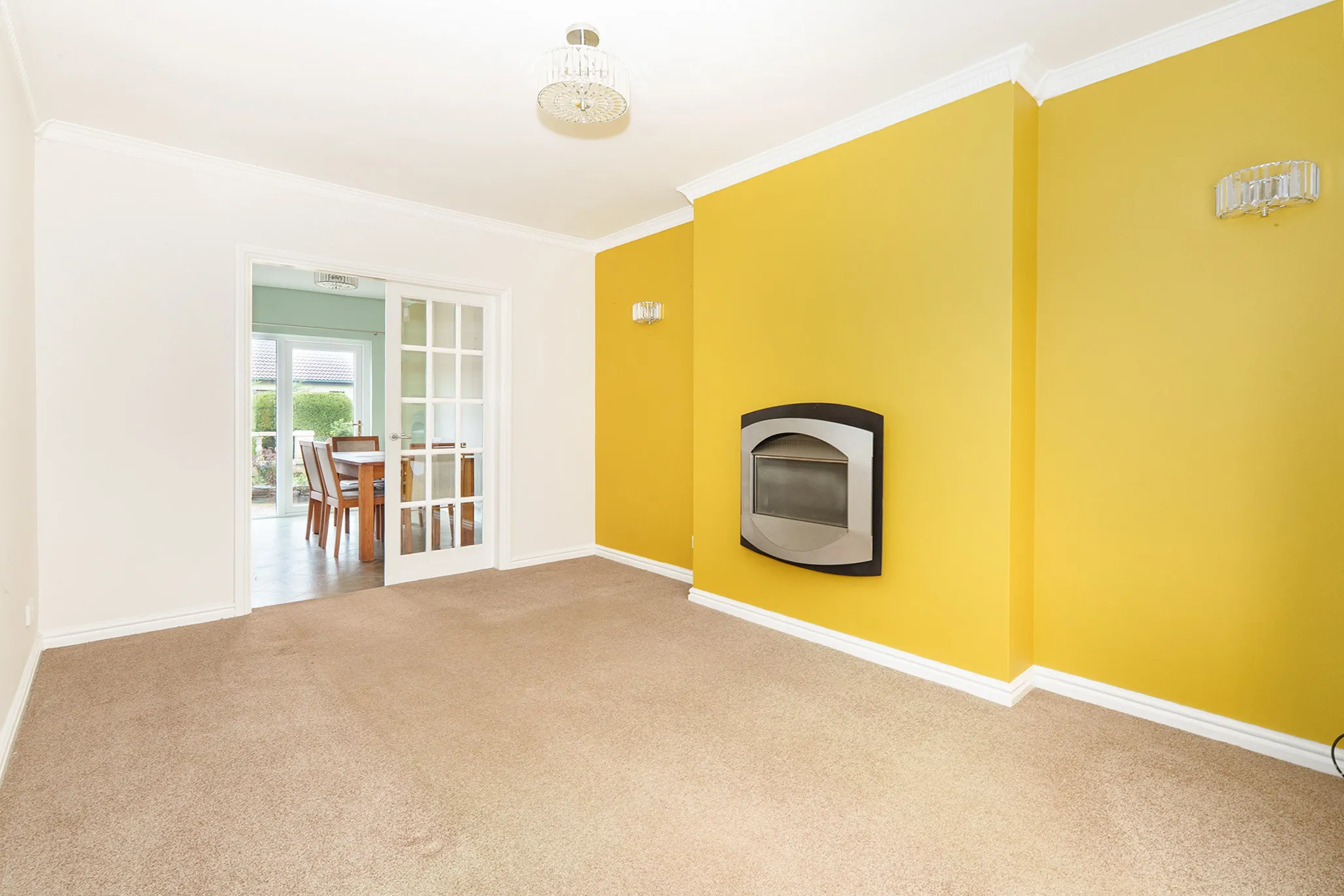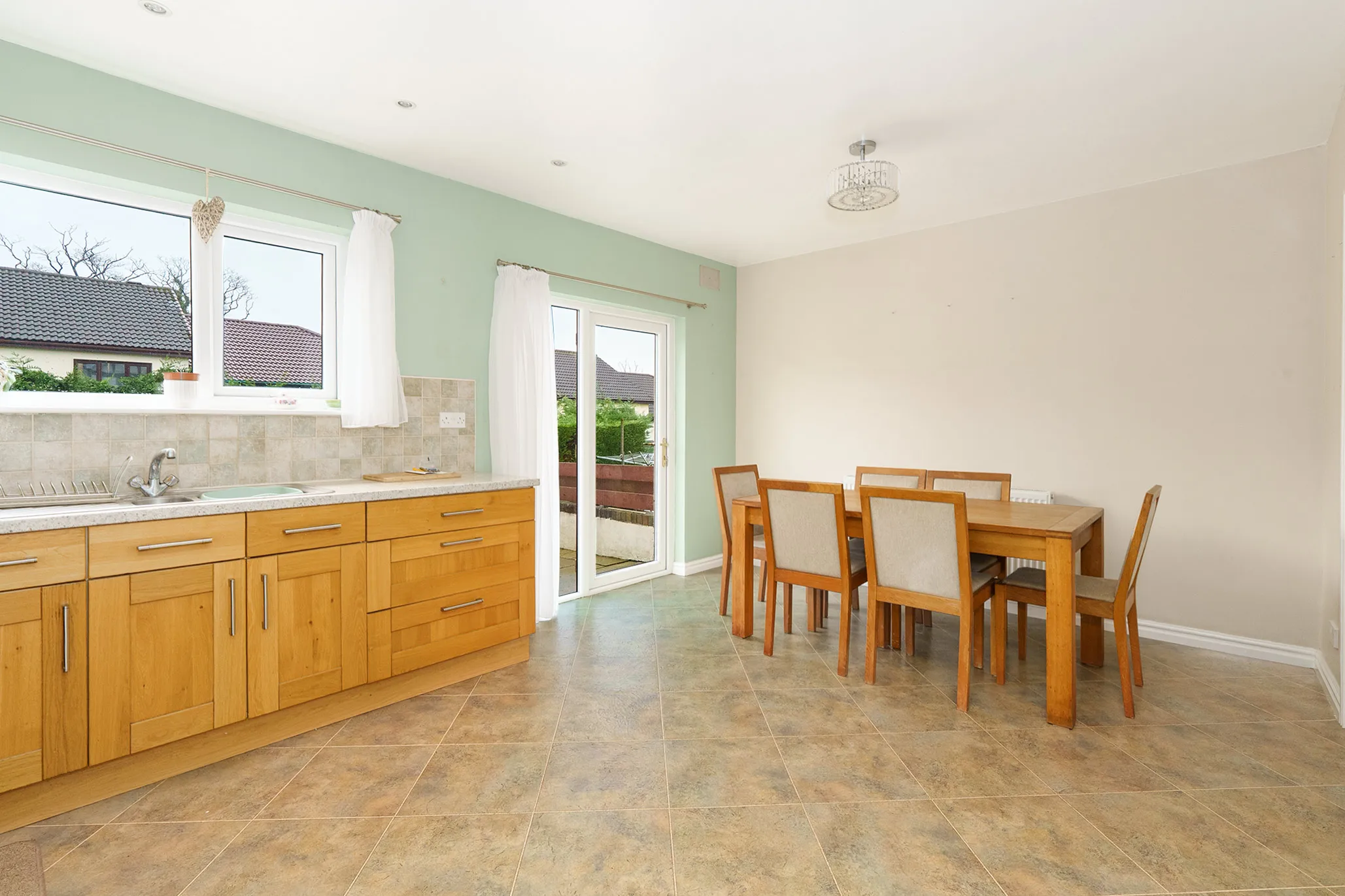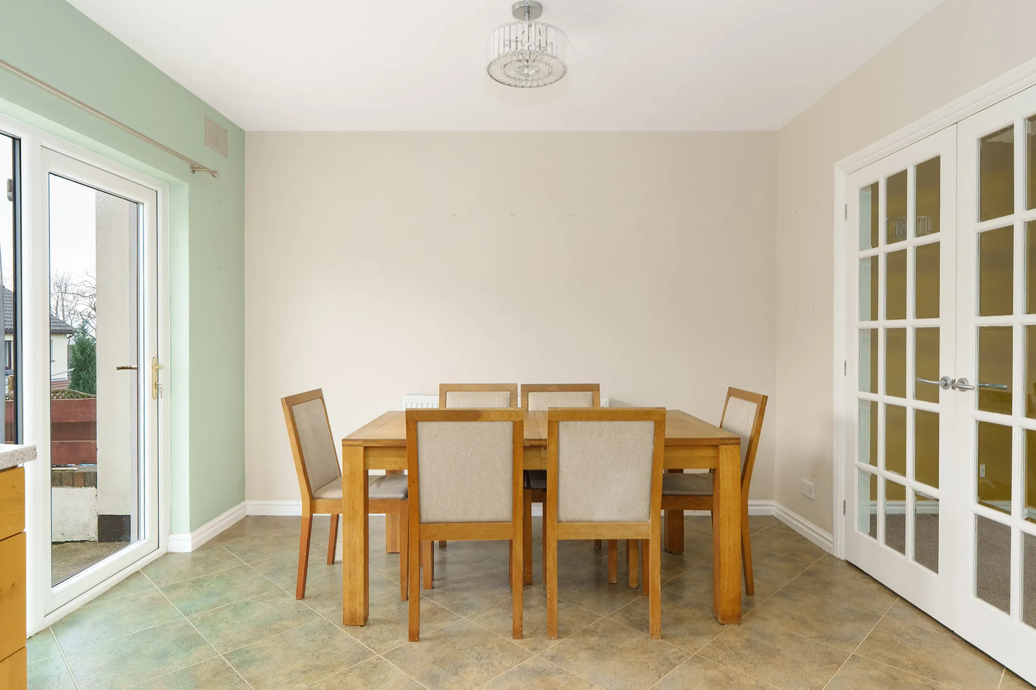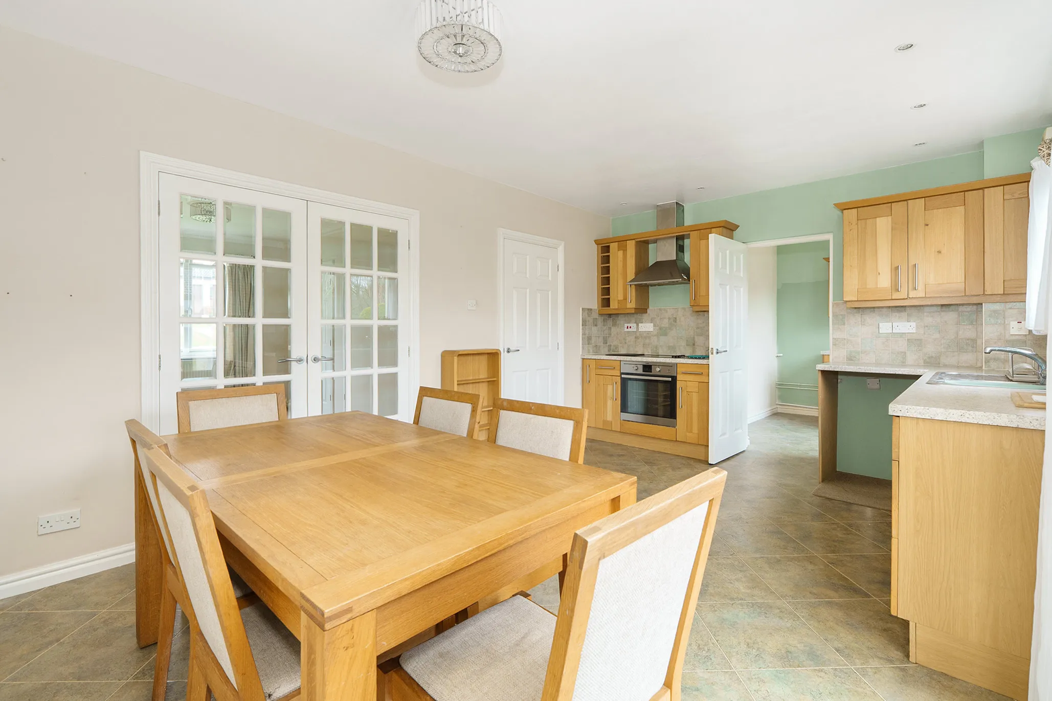 - Living room and a modern dining kitchen with French doors to the rear patio
