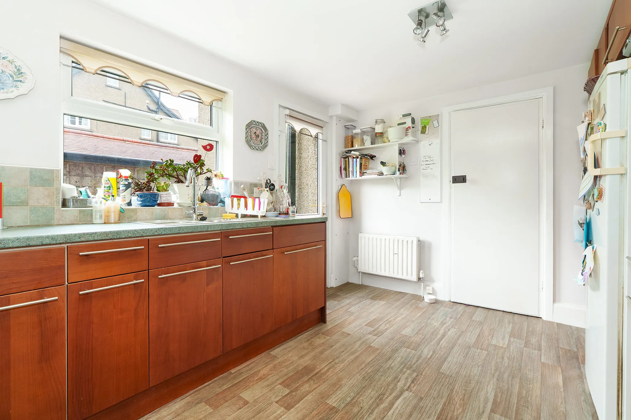The accommodation is both characterful and practical, featuring an entrance porch leading into a welcoming hallway with a range of useful storage cupboards. There are two charming reception rooms, including a living room with a feature bay window and a separate family/dining room, offering flexible space for modern family living. A separate kitchen completes the ground floor layout.