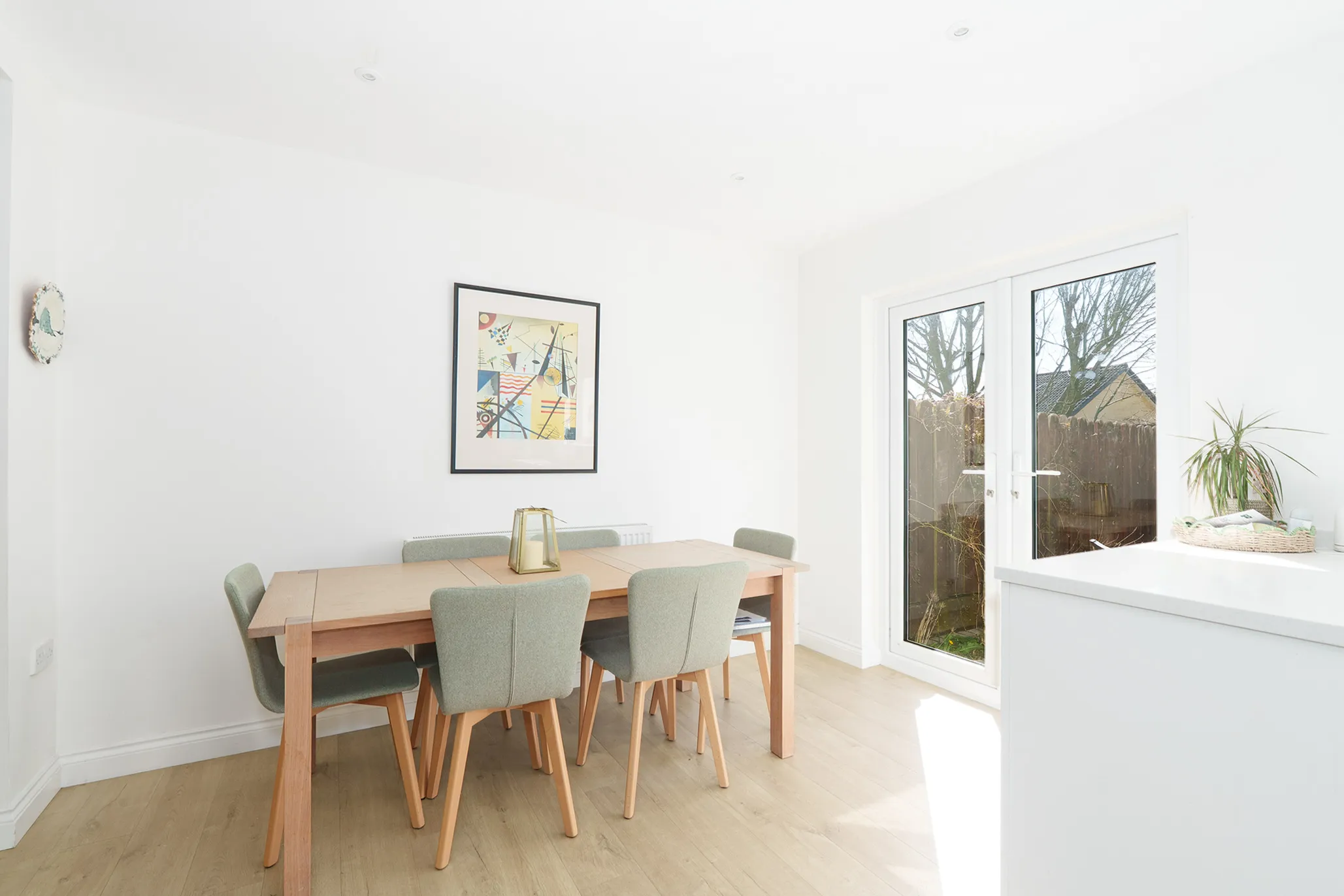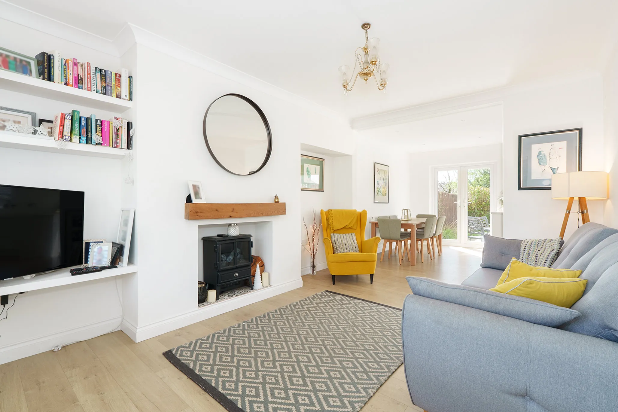 - Living room open to a stunning dining kitchen with french doors providing access to the landscaped south facing rear garden