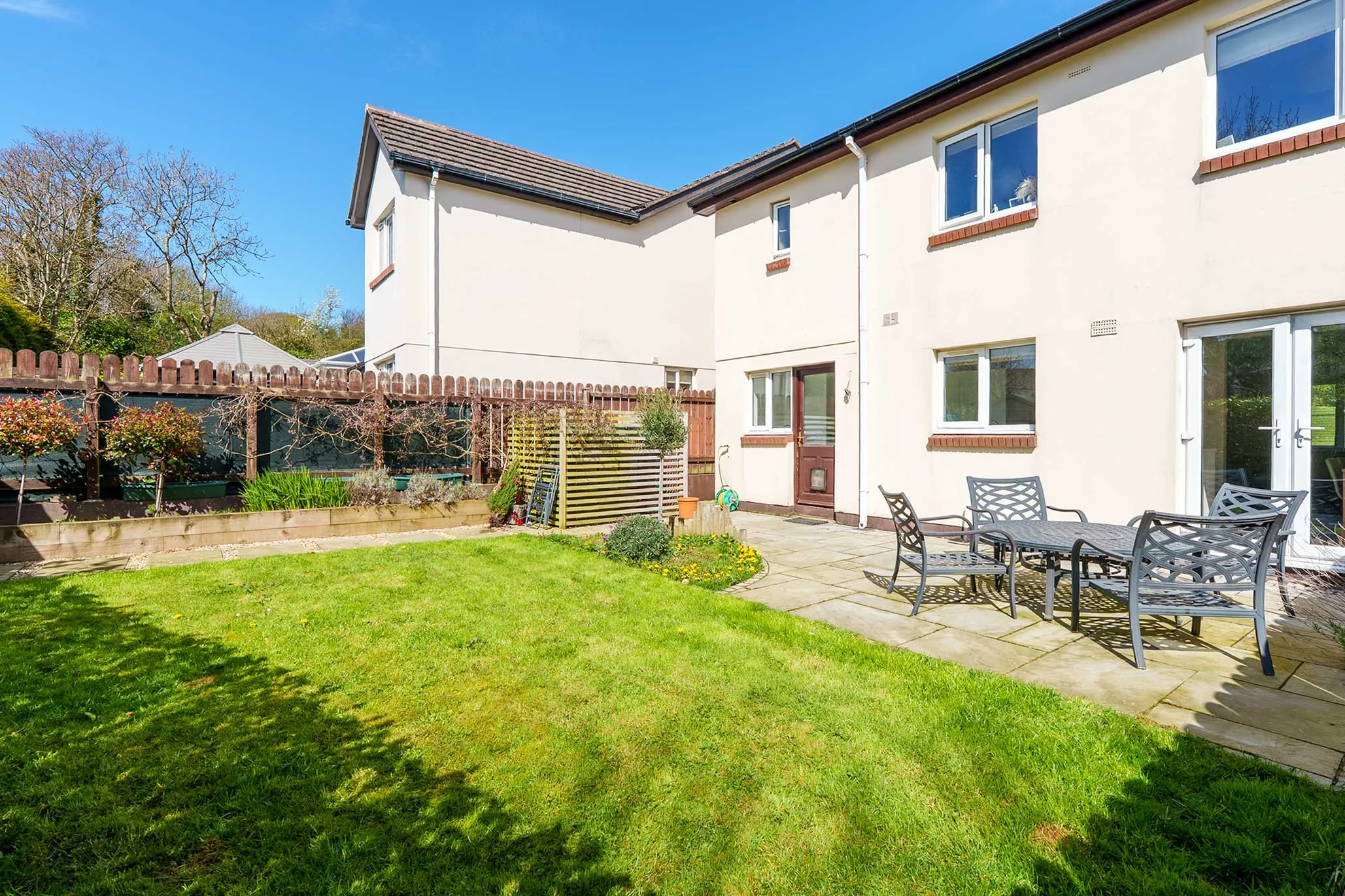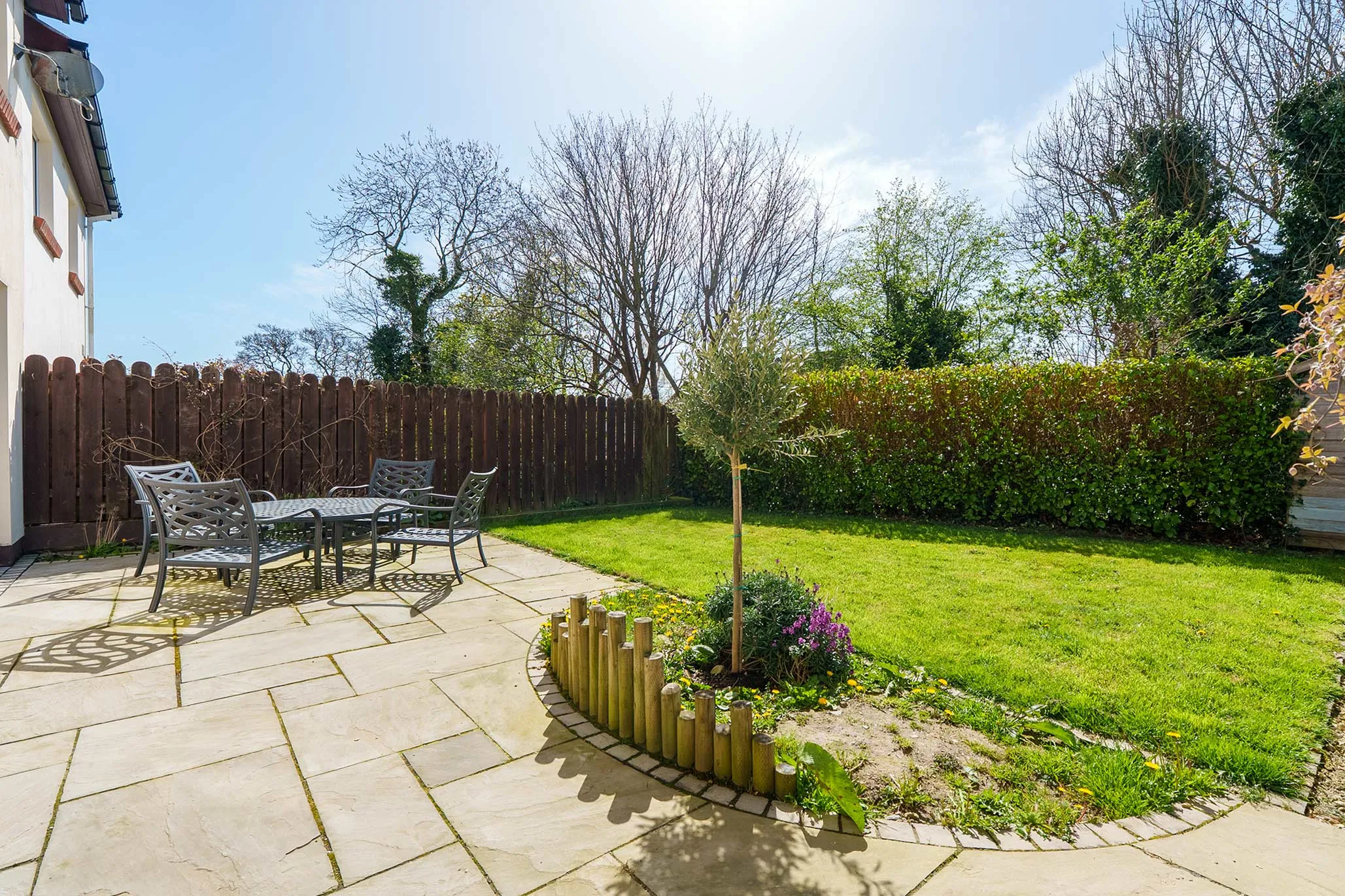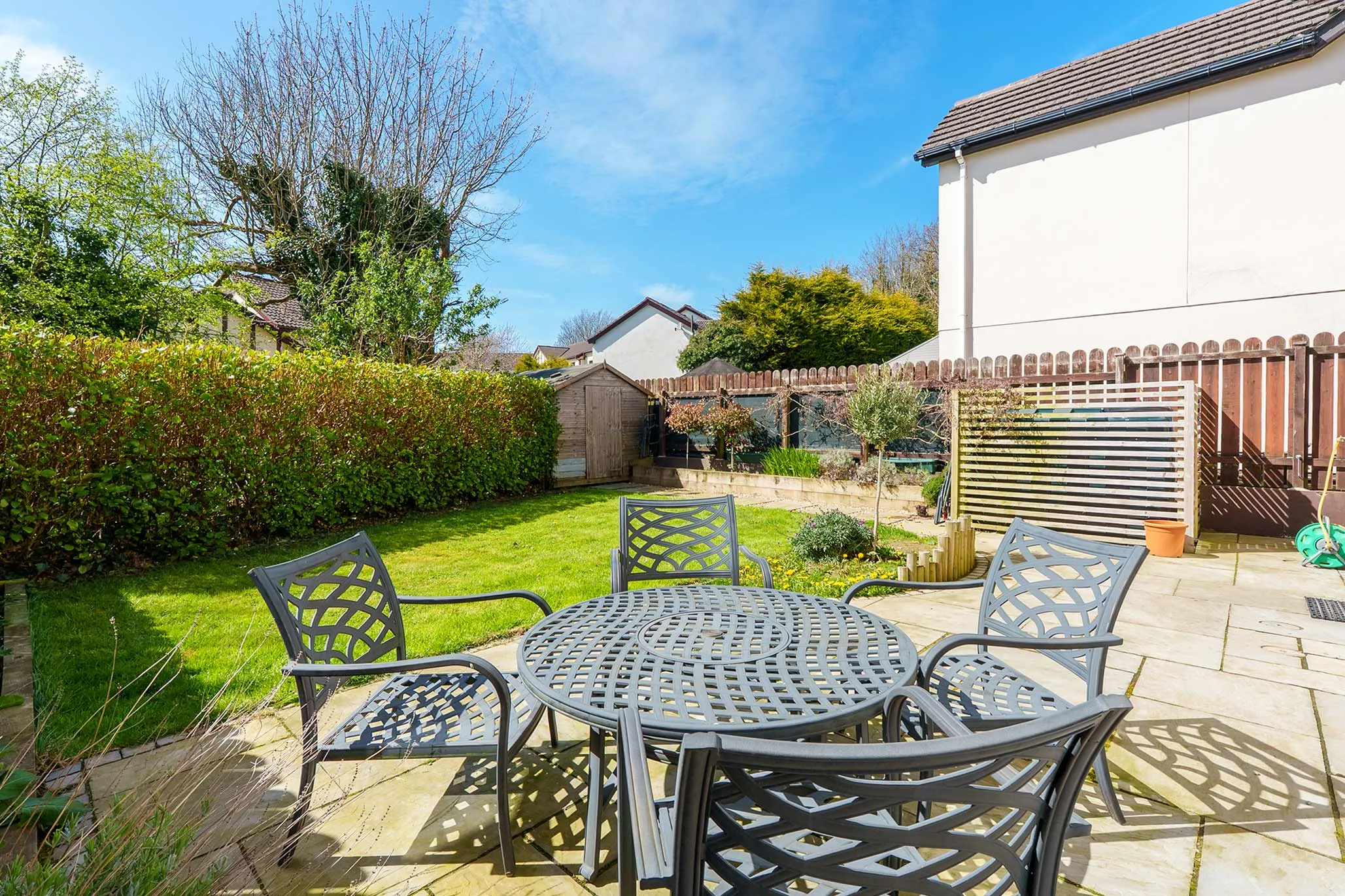 - Landscaped south facing rear garden with attractive curved patio, storage shed, raised planters and a level lawned area