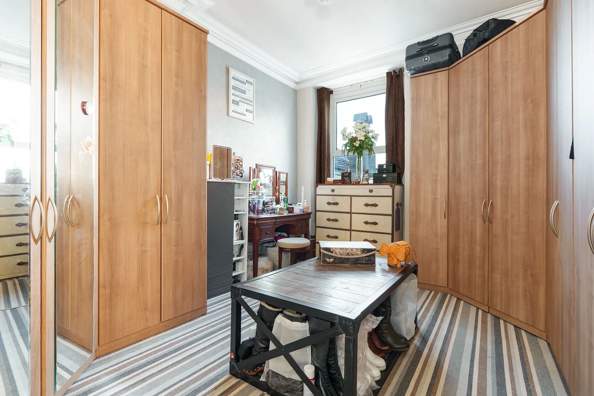 There are four well-proportioned double bedrooms, including a stunning principal bedroom that spans the full width of the property and is enhanced by a bay window and French doors opening onto a balcony area. The accommodation is completed by two bathrooms, including a spacious family bathroom, along with an ensuite shower room and a separate cloakroom (WC).