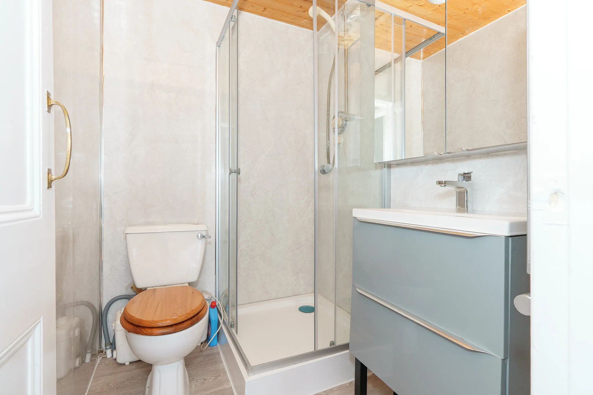 The annex includes a conservatory providing both internal and external access, a living room, bedroom, and shower room, creating a self-contained arrangement suitable for extended family or guests.