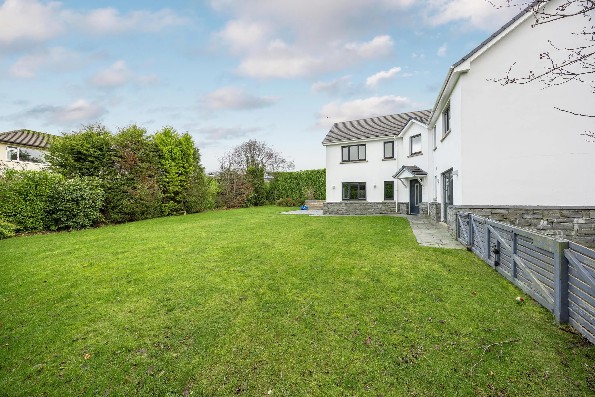 Externally, the property is approached via an imposing gated driveway offering ample parking and access to the integral double garage. The home is surrounded by private, wrap-around lawned gardens, providing a peaceful and secluded outdoor space ideal for family life and entertaining.