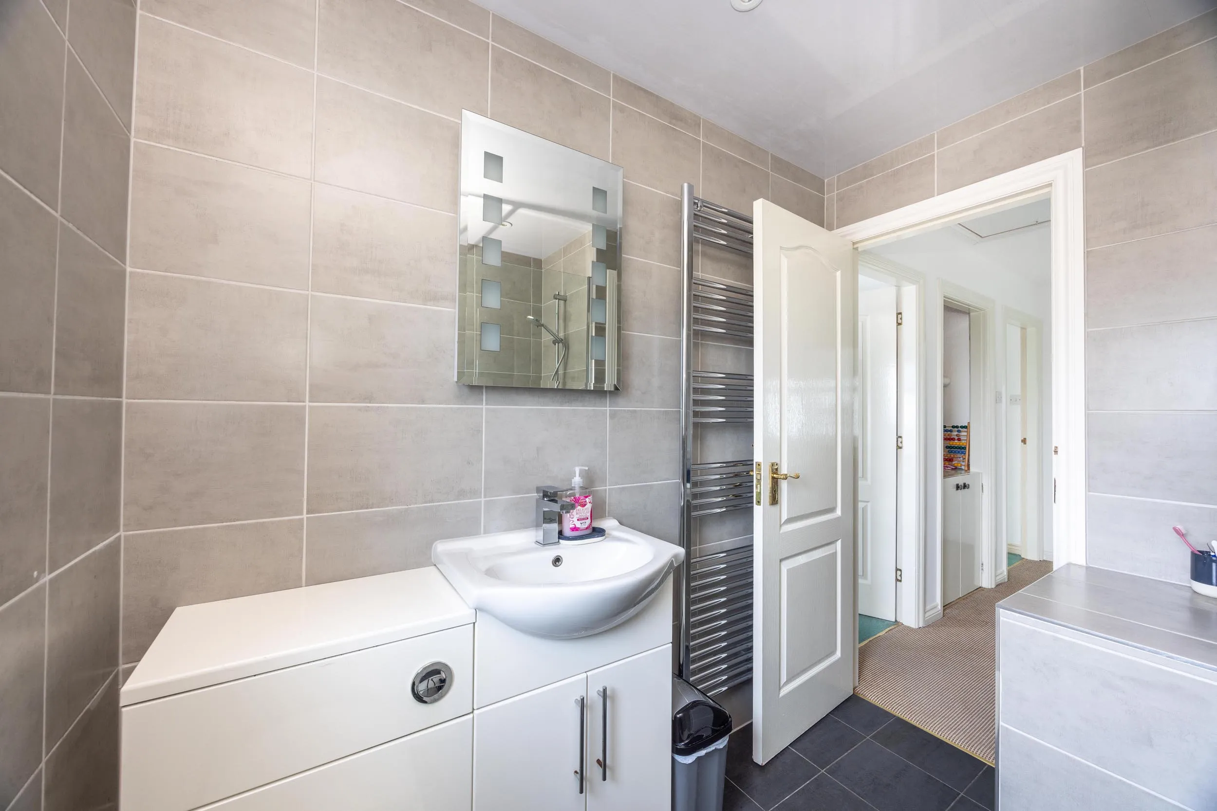 To the first floor are three bedrooms, served by a stylish modern shower room.