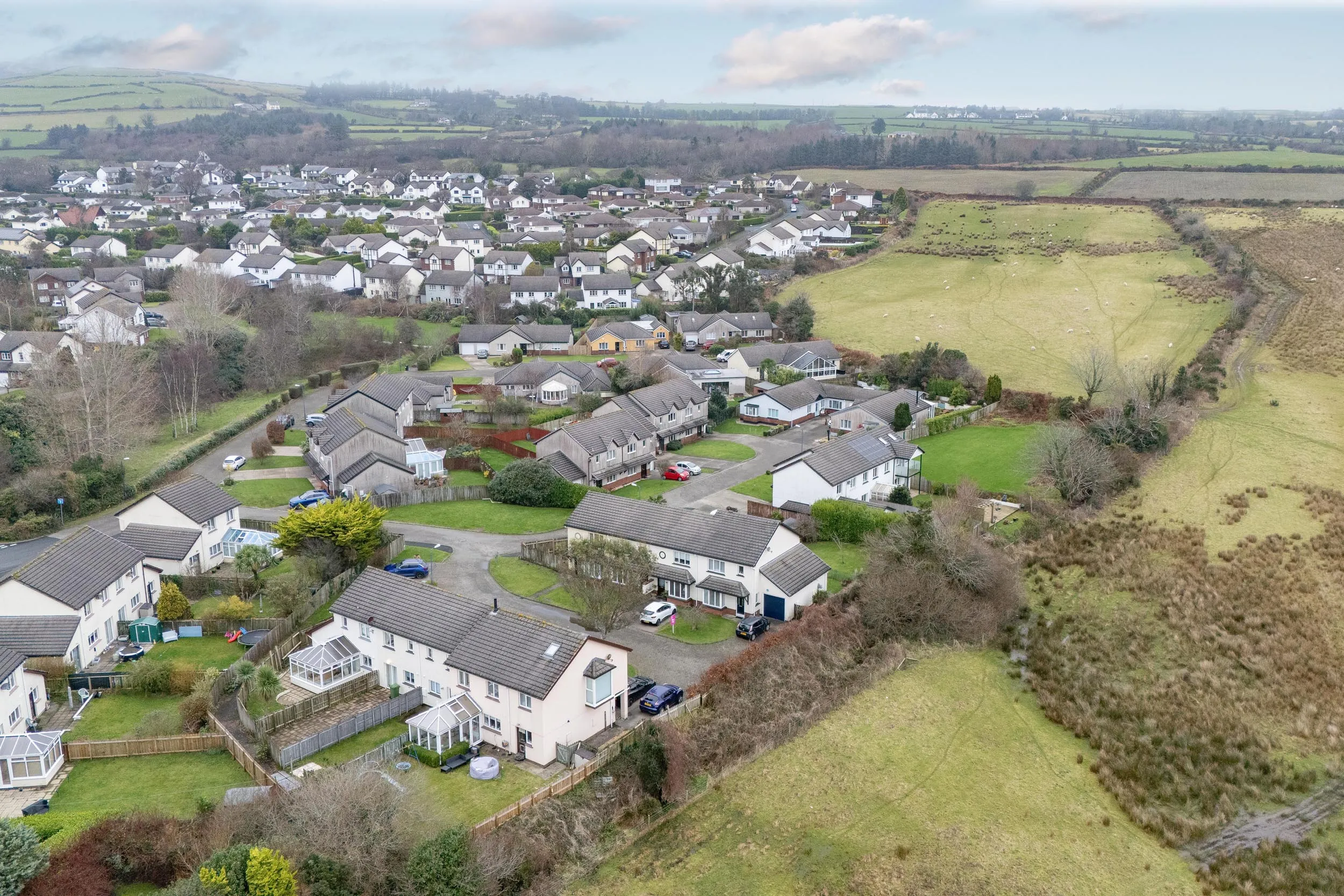 This highly sought-after extended family home is ideally positioned in a quiet cul-de-sac just off Ballagarey Road, enjoying the rare benefit of bordering open fields to one side, creating a pleasant sense of space and privacy.