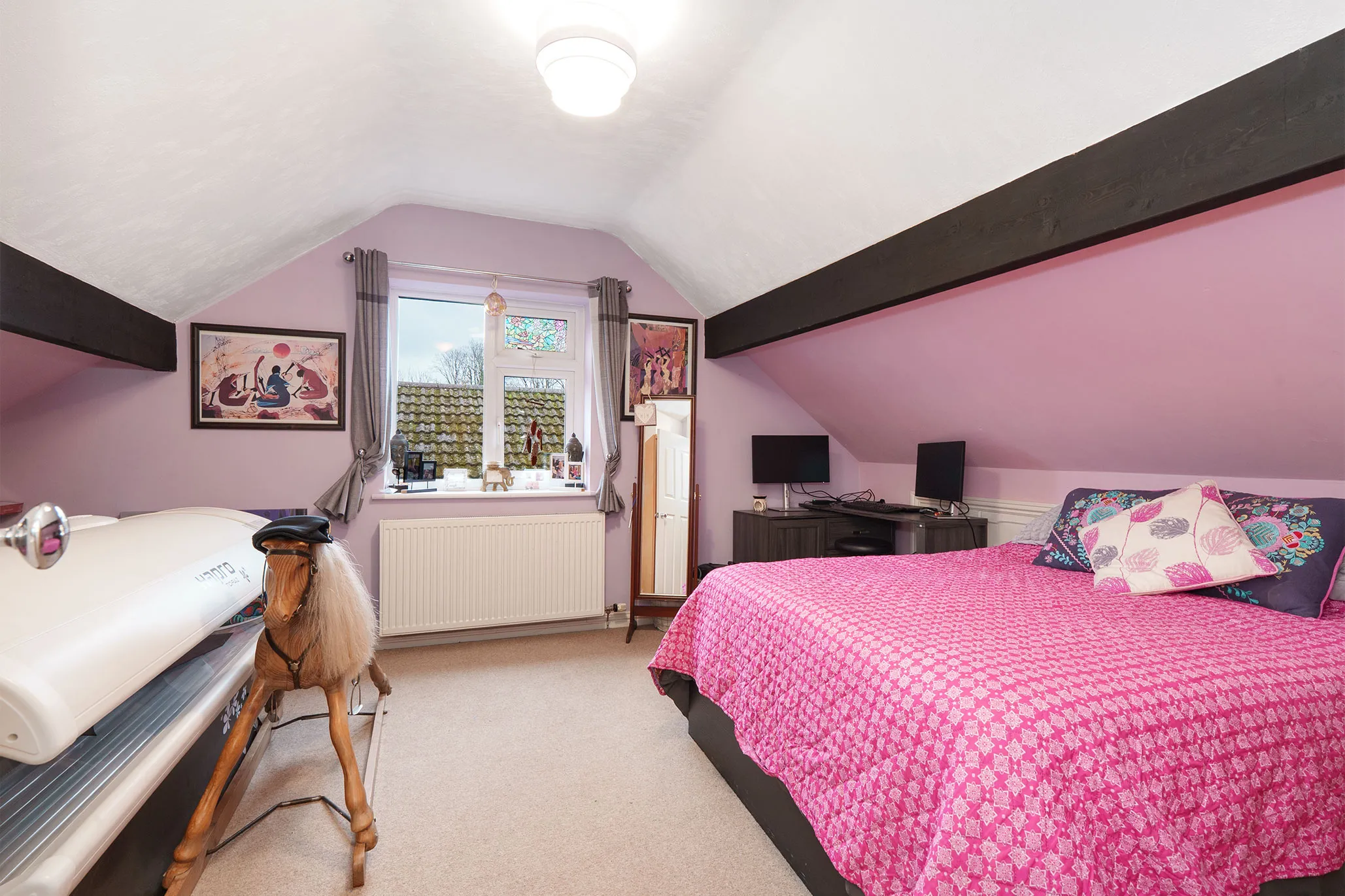 There are three bedrooms, including a ground floor bedroom offering flexibility for guests or multi-generational living. The two first floor bedrooms benefit from useful eaves storage and there is a ground floor stylish shower room.