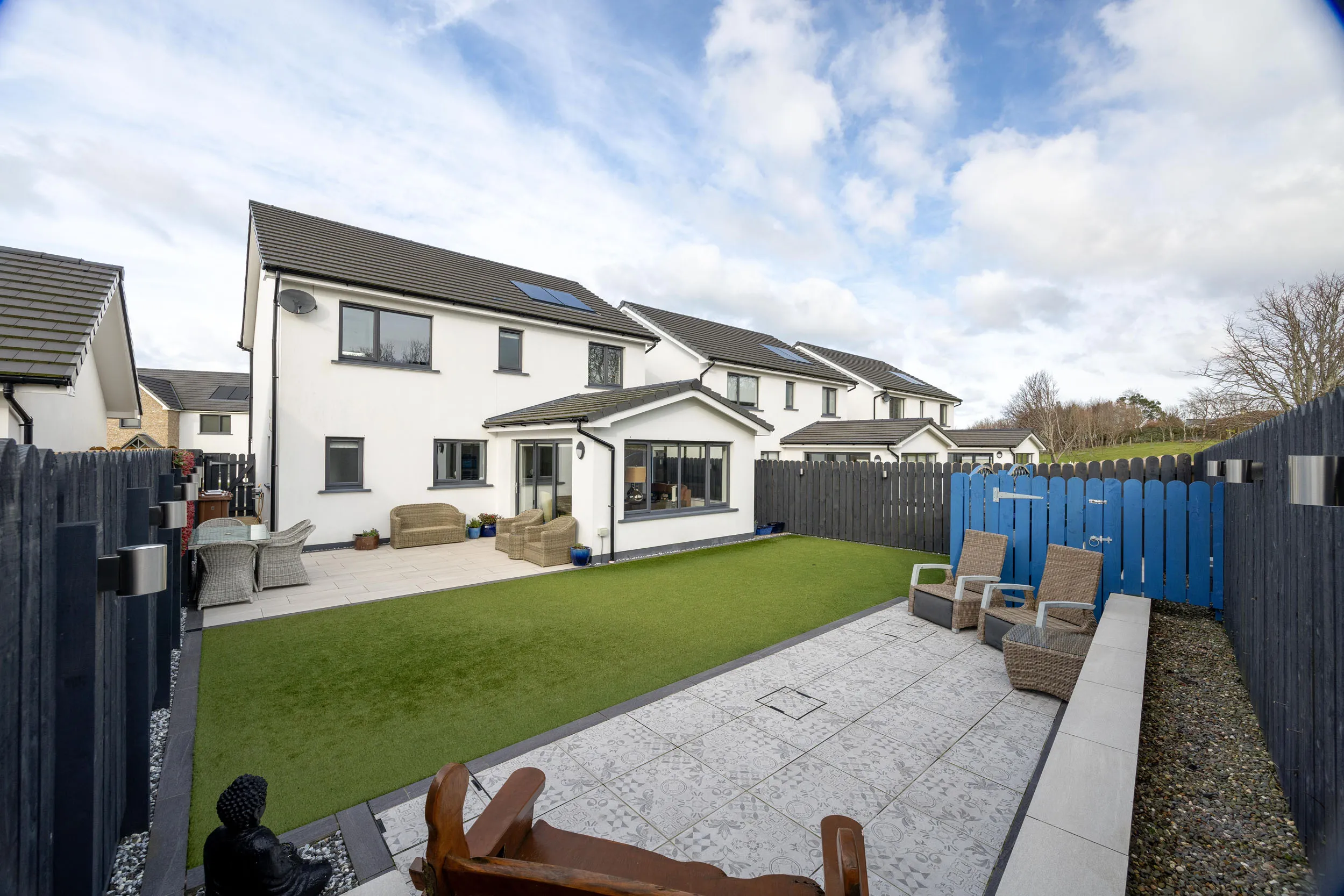 Externally, the property continues to impress with an integral garage featuring an electric door and a block-pavioured driveway providing parking for multiple vehicles. The stunning landscaped rear garden, completed in 2023, has been designed for low maintenance and year-round enjoyment, incorporating attractive paved patios and artificial grass—creating a truly summer-ready, south-facing outdoor space.