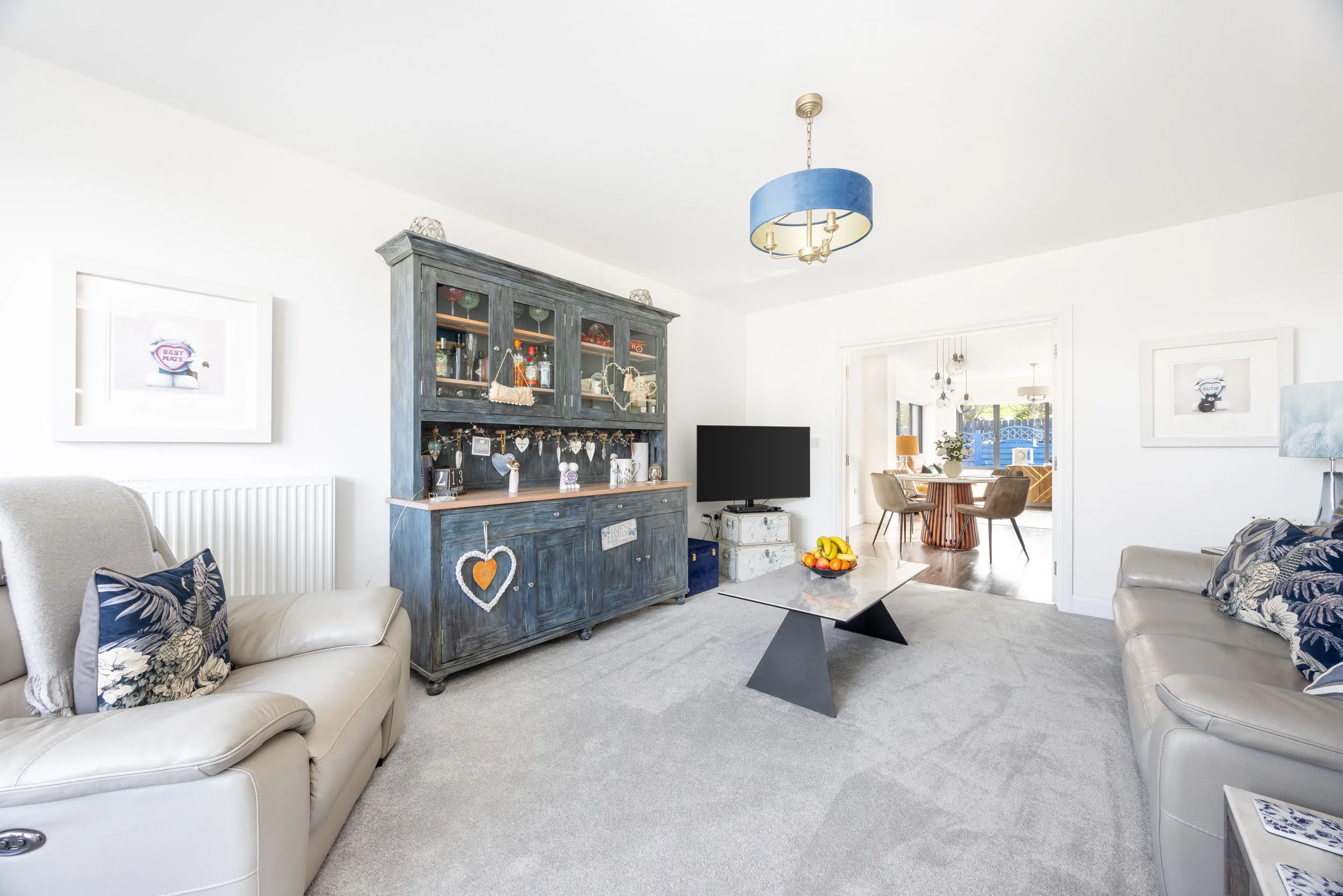 The beautifully presented accommodation is thoughtfully designed for modern family living. There are two separate reception rooms, including a comfortable living room and an impressive sun room with bi-fold doors opening onto the landscaped south-facing rear garden—perfect for indoor-outdoor living and entertaining.