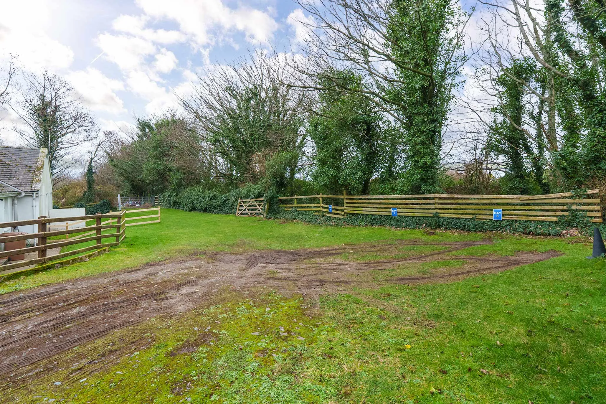 Externally, the front and rear gardens are laid to lawn and bordered by fencing. Please note there is vehicular access at the rear of the property to the neighbouring field. The property also benefits from two allocated parking spaces, noted as Bay 1 and Bay 2.