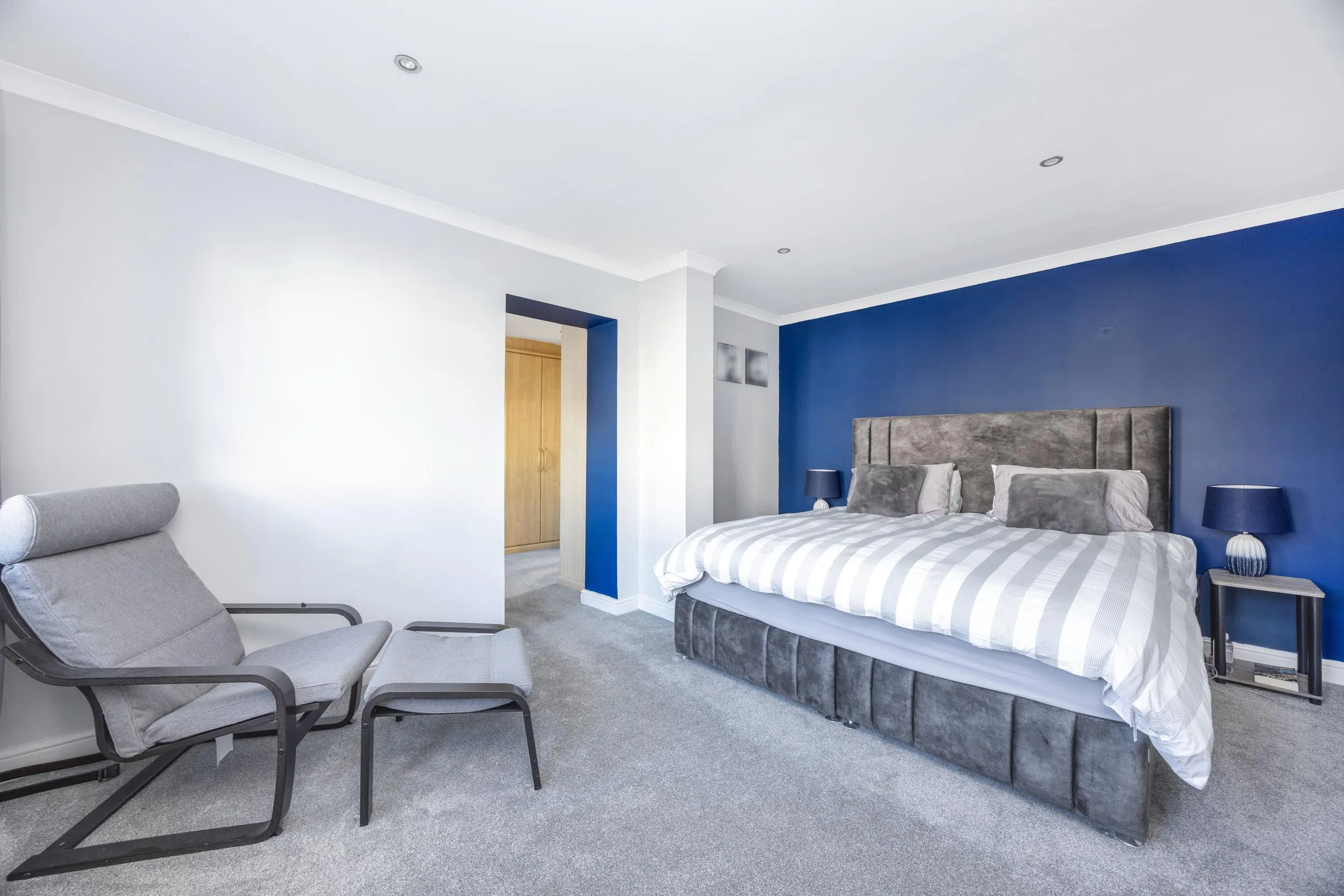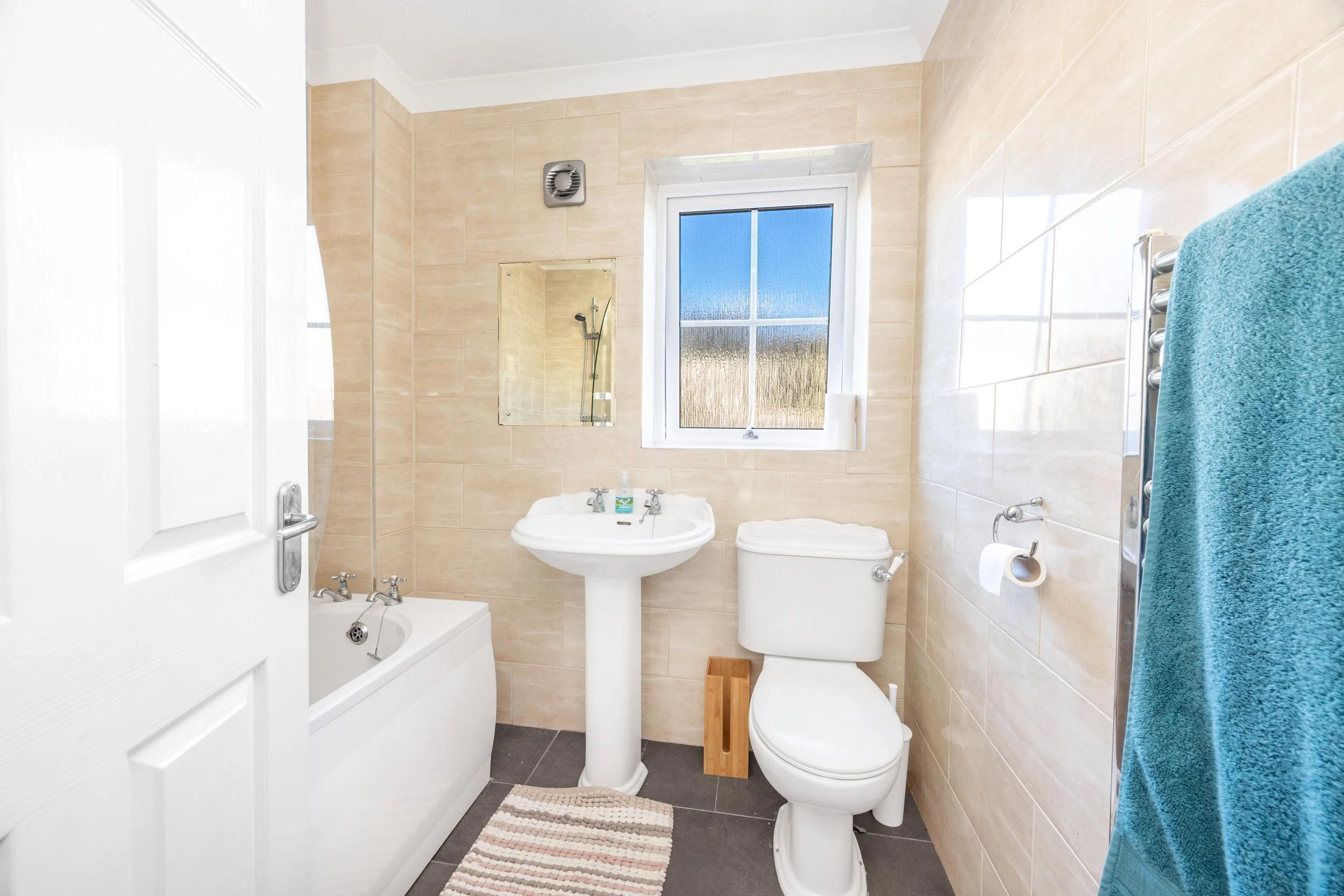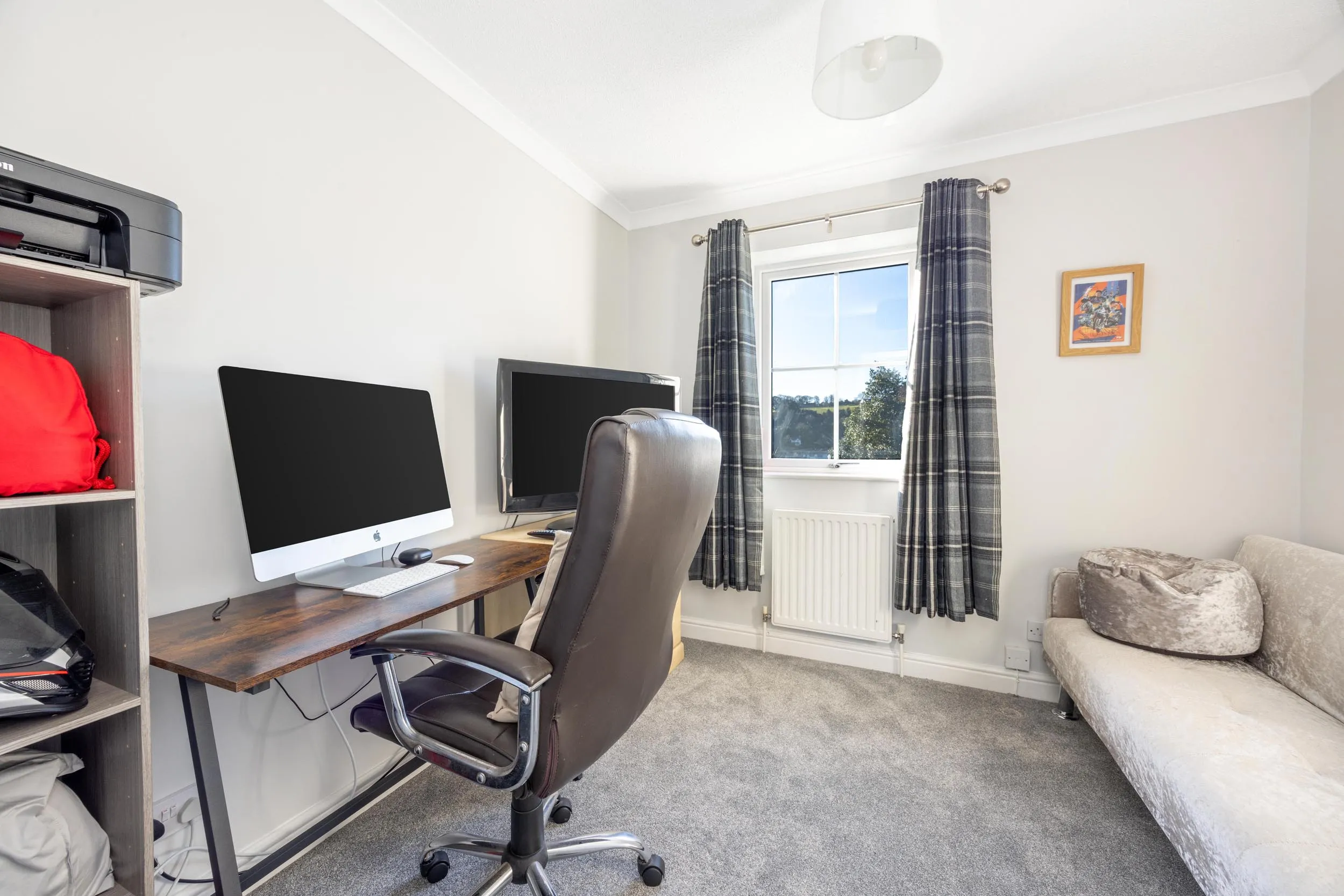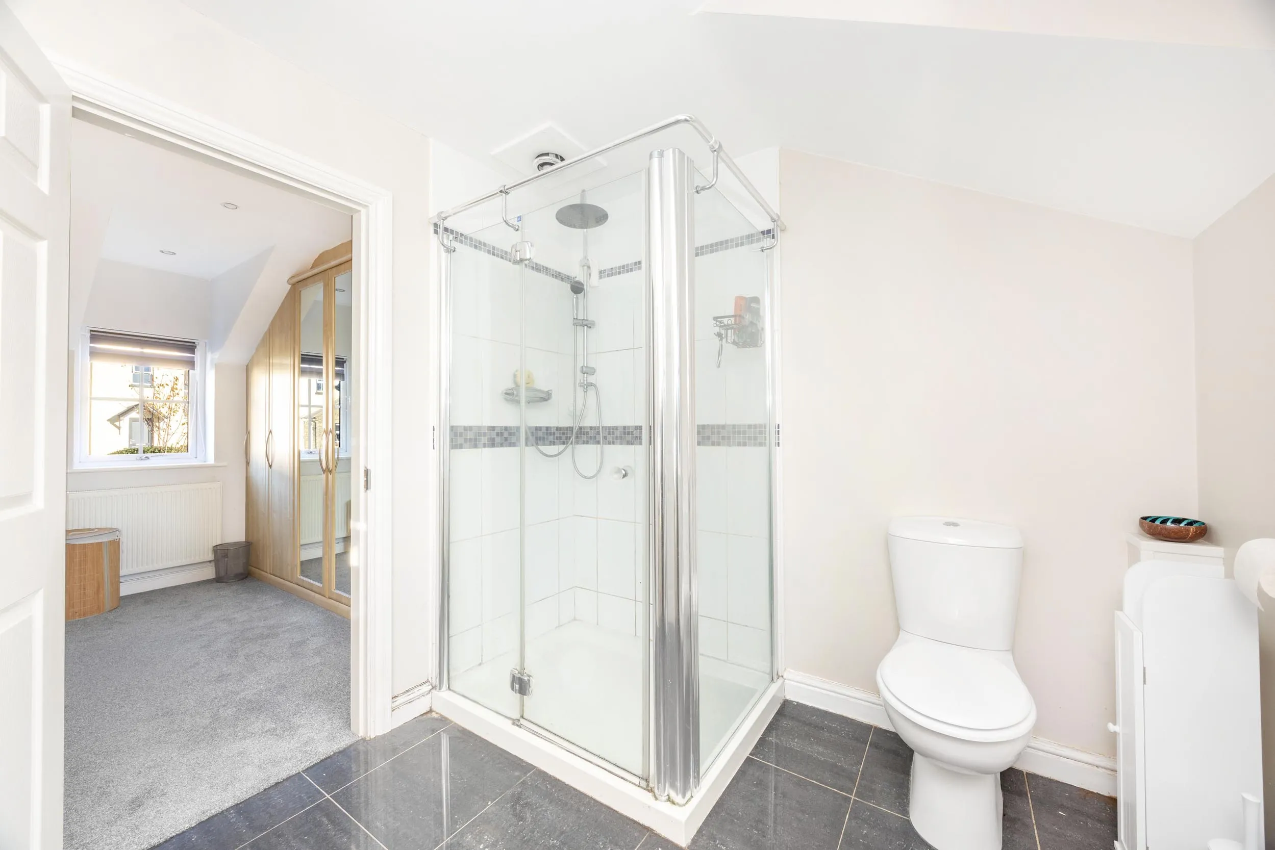 The first floor provides three bedrooms, including a superb principal suite with a dedicated dressing room. The rear bedrooms enjoy far-reaching aspects, enhancing the sense of space and light. There are two bathrooms—a family bathroom and an ensuite shower room to the principal bedroom.