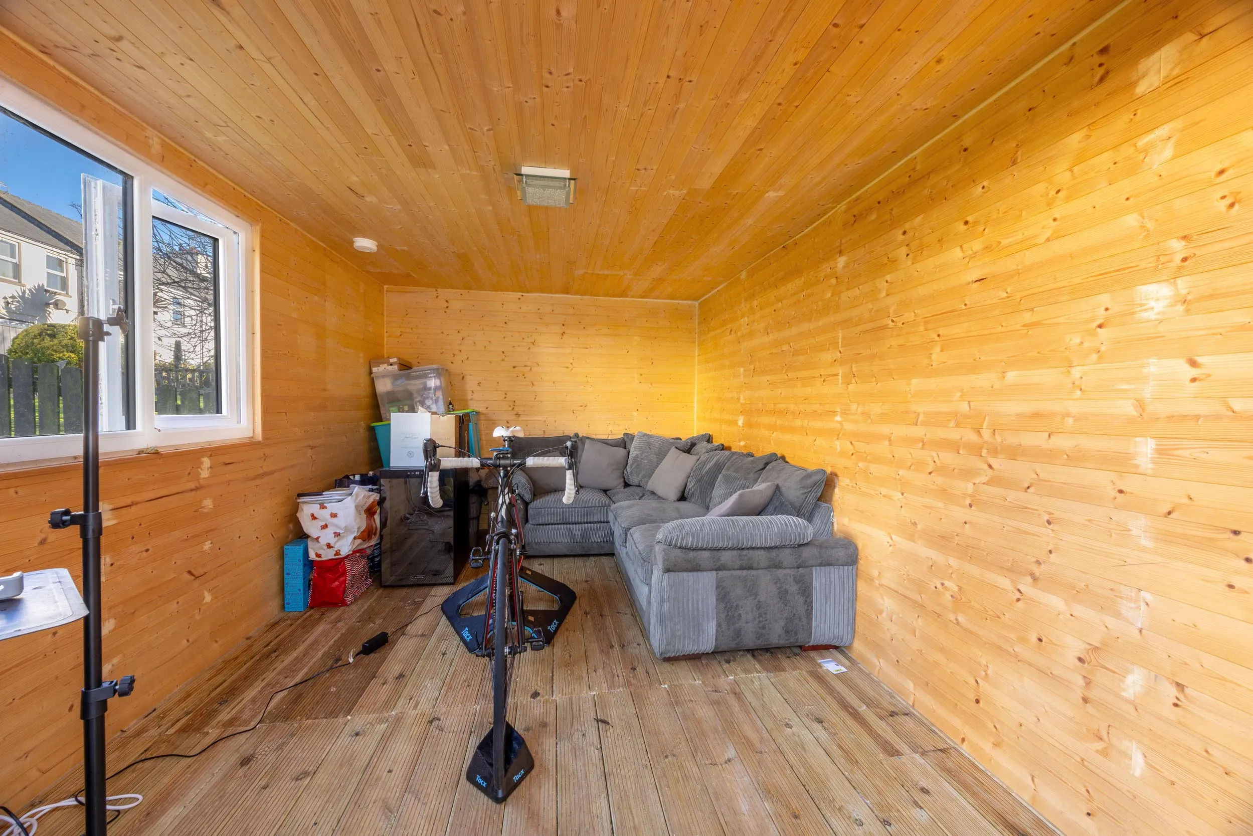 - South westerly facing garden with patio, lawned garden, large decking area and access to a summer house with power and light