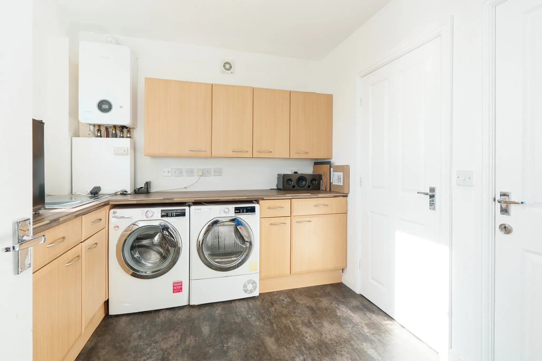 - Large living room and a separate dining kitchen with utility room and cloakroom (WC) off