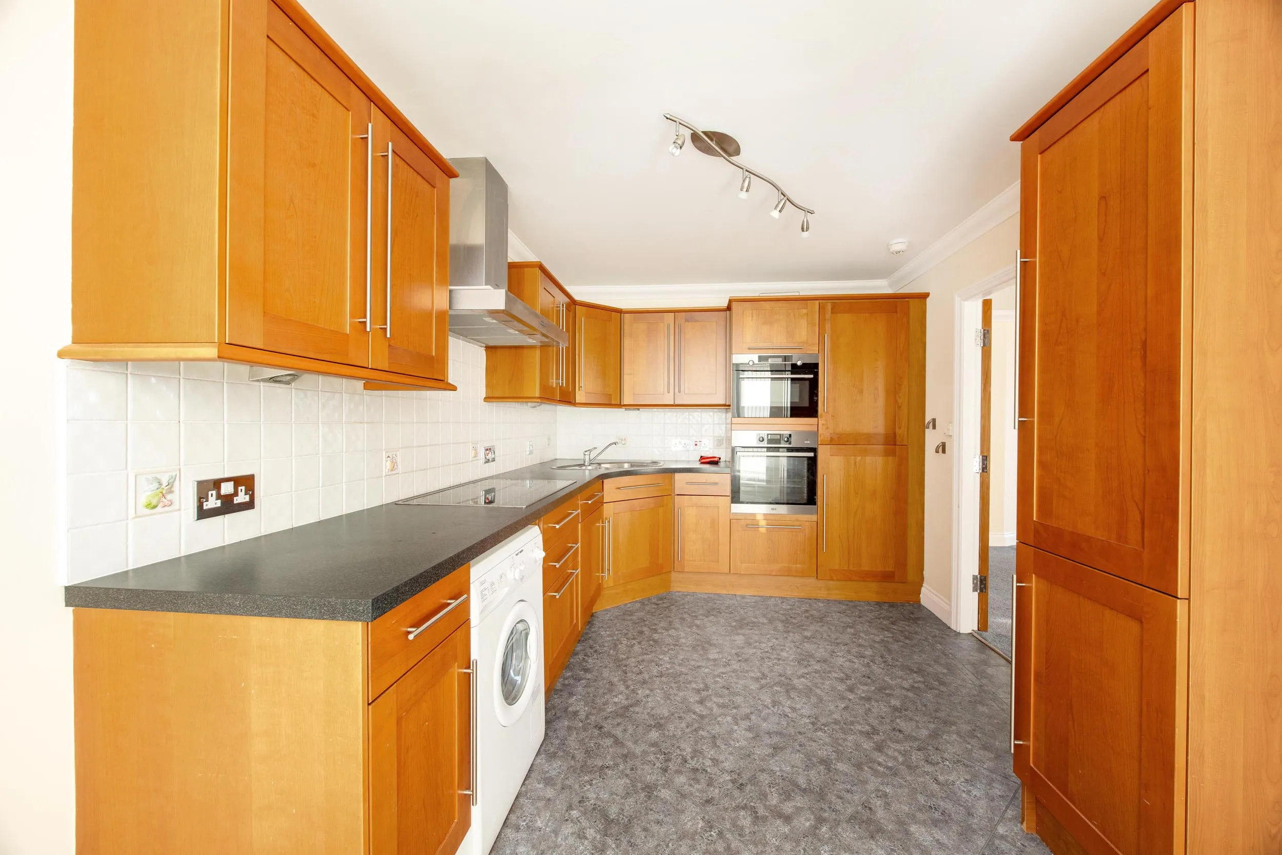 Appliances Electric oven, 4-ring hob, microwave, fridge/freezer, dishwasher, and a washer/dryer