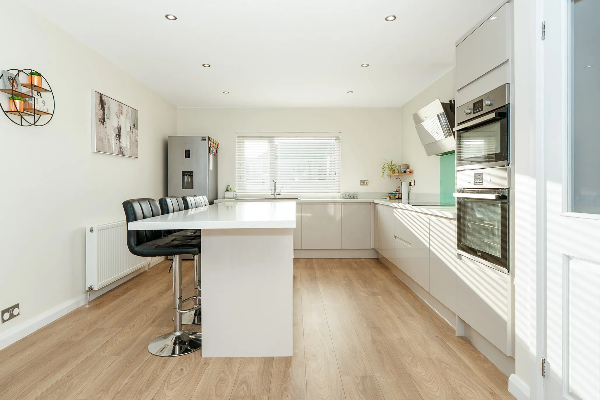 - Stunning ultra modern kitchen with large island and breakfast bar seating, utility room off and integral access to the garage