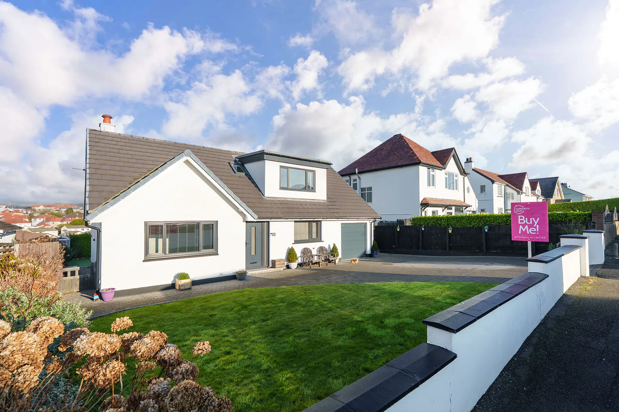 Externally, the home enjoys an attractive gated driveway providing off-road parking for multiple vehicles and access to the integral garage. The lawned garden is bordered by established shrubs and enjoys far-reaching views towards Snaefell, creating a delightful outdoor setting.