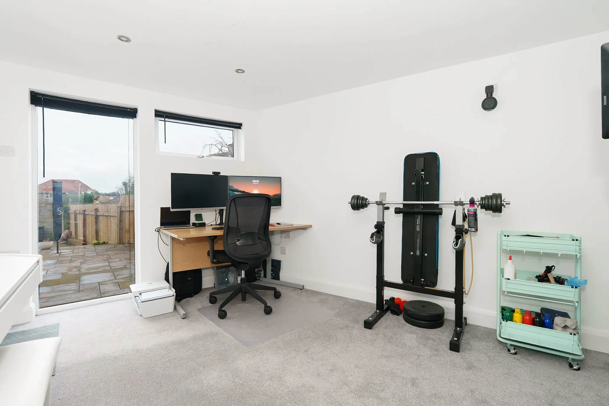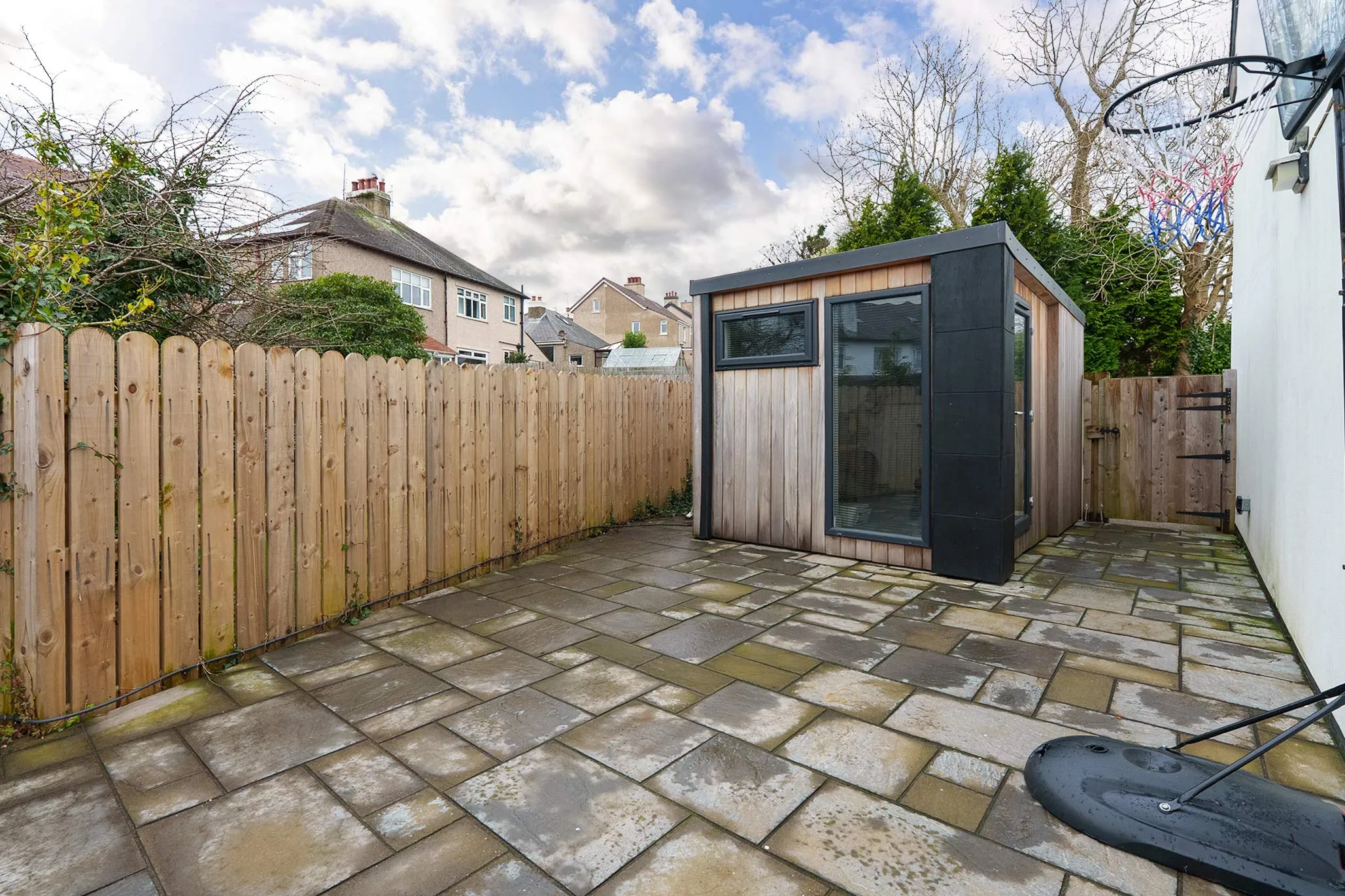 A particular highlight is the contemporary garden room/office pod, offering a versatile space ideal for working from home, a hobby room, or a home gym.