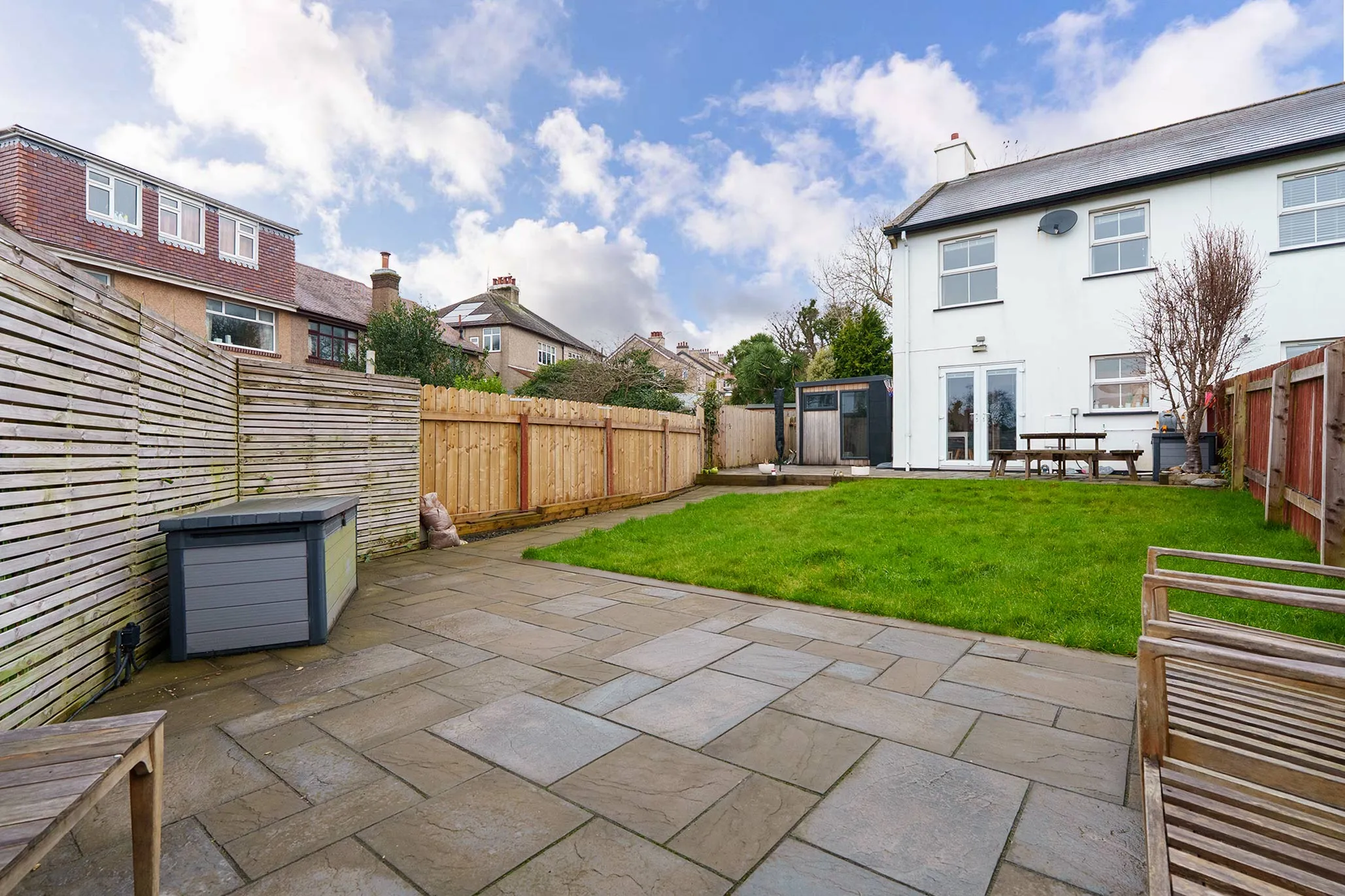 Externally, the property benefits from a driveway providing off-road parking for multiple vehicles. The landscaped south-facing rear garden is mainly laid to lawn and complemented by a selection of patio areas, creating the perfect setting for alfresco dining or entertaining.