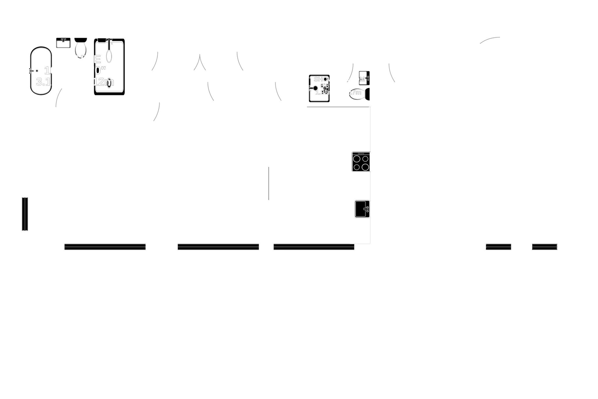 Appliances Oven and 4 ring hob, fridge, freezer, dishwasher and washing machine