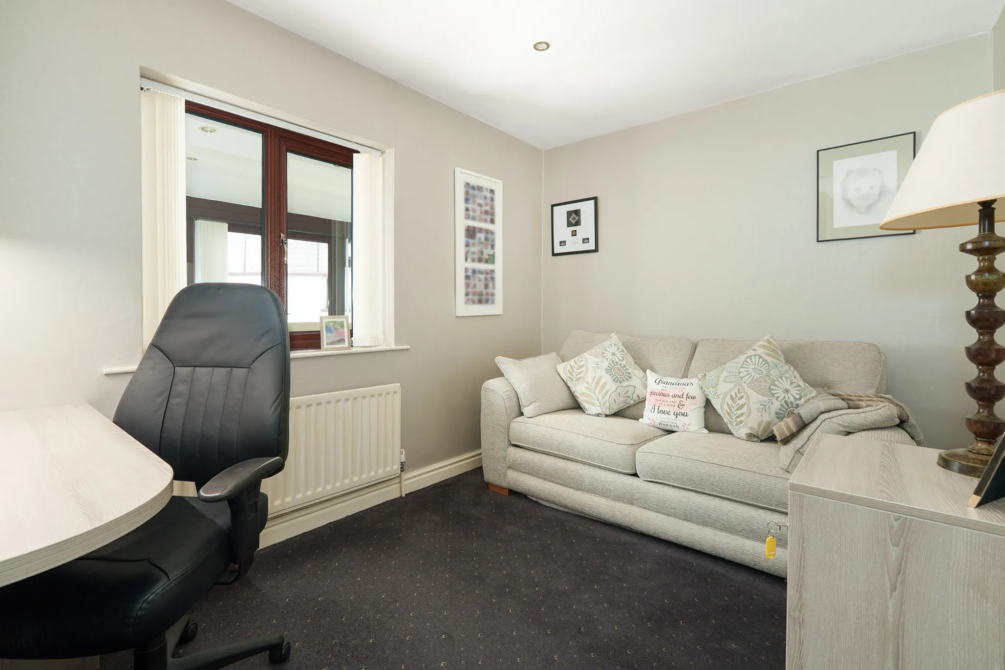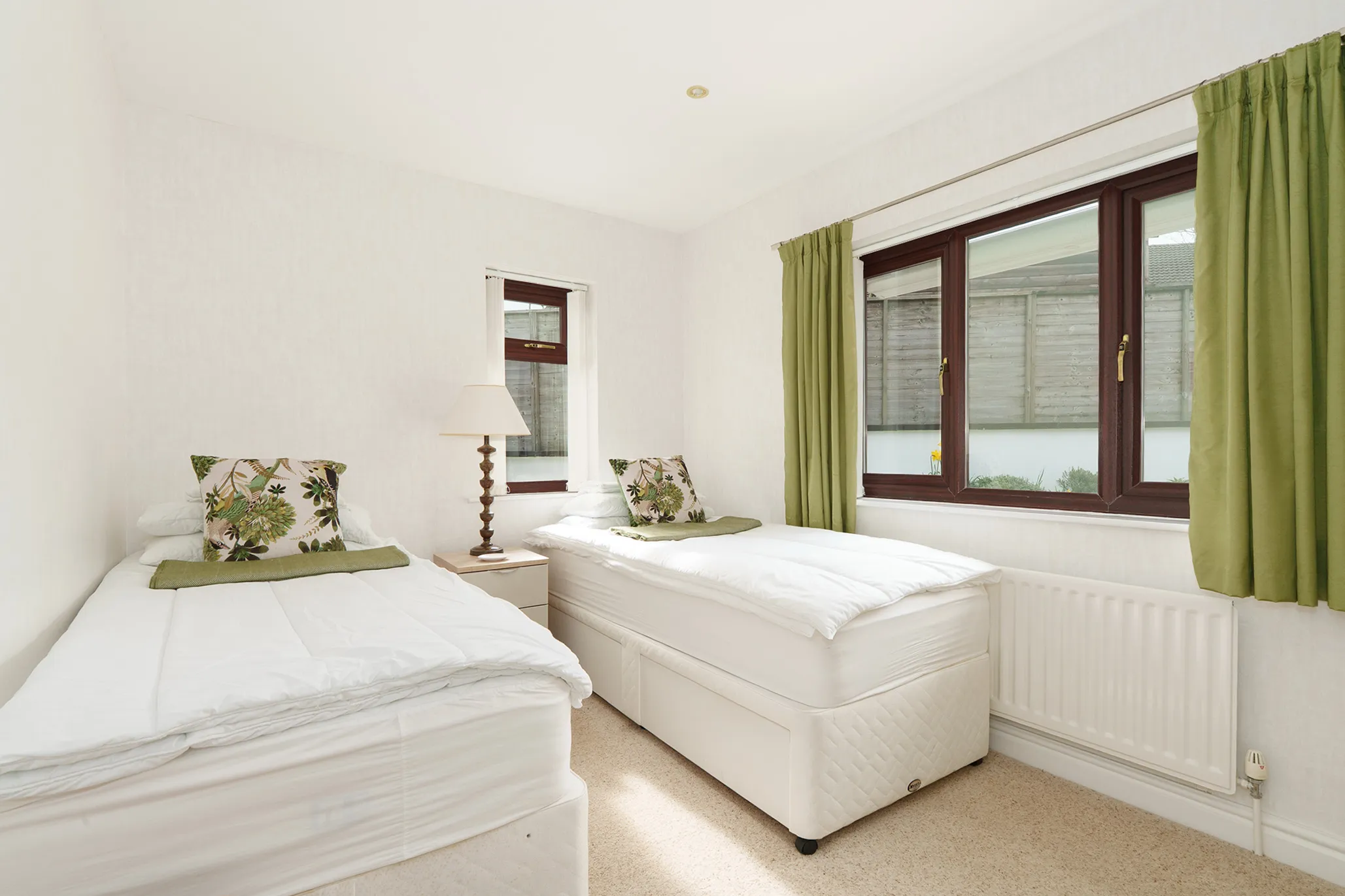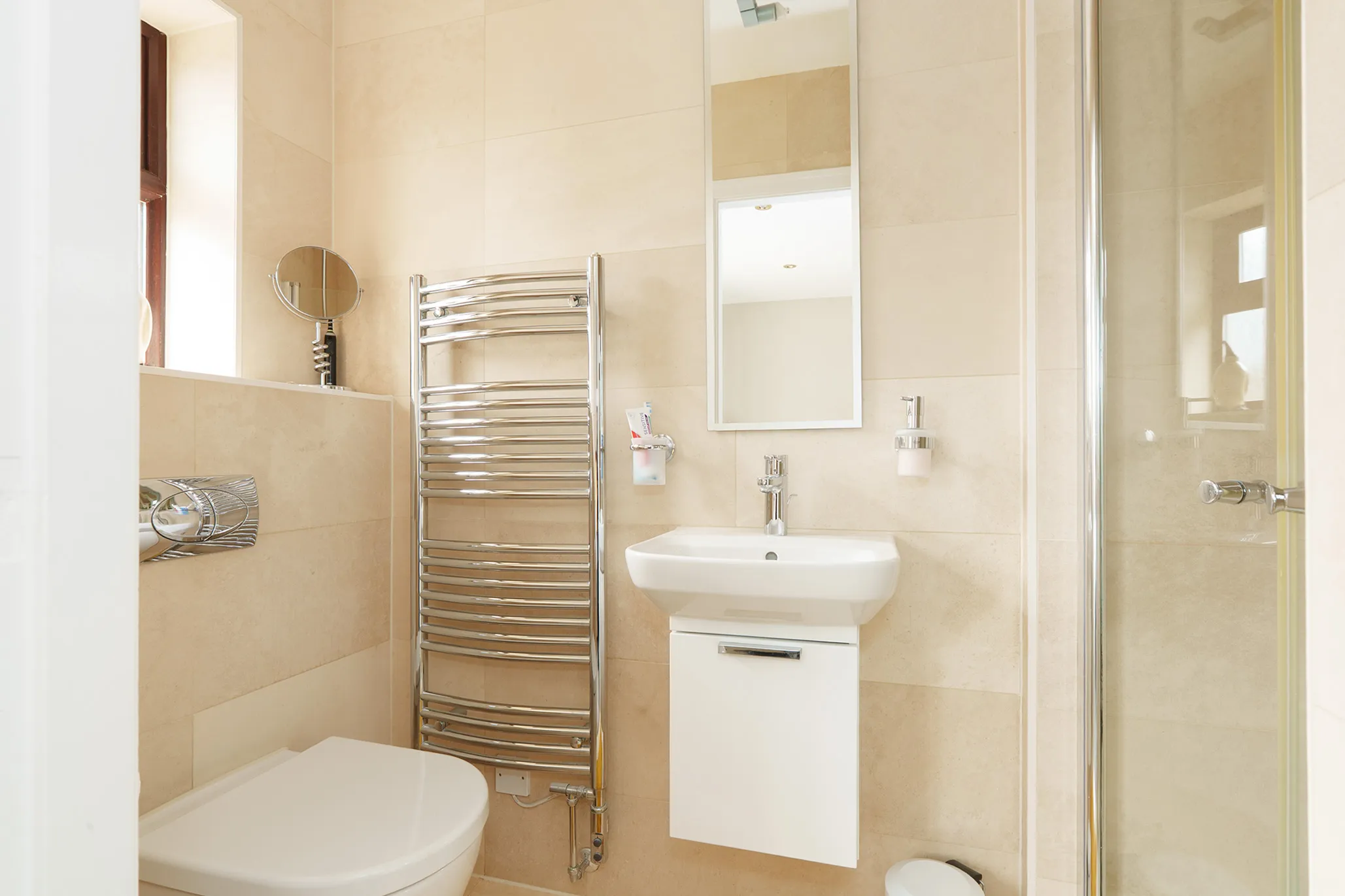 There are three well-proportioned double bedrooms, with the principal bedroom benefiting from an en-suite. A second bathroom serves the remaining accommodation, offering flexibility for family living or guests.