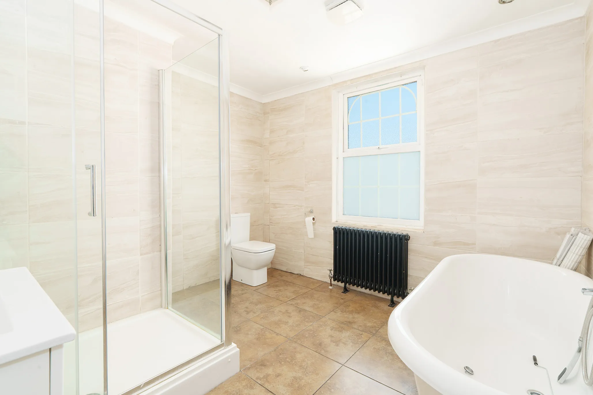 To the upper floor are two generous double bedrooms, complemented by two stylish bathrooms, including a contemporary en-suite shower room.