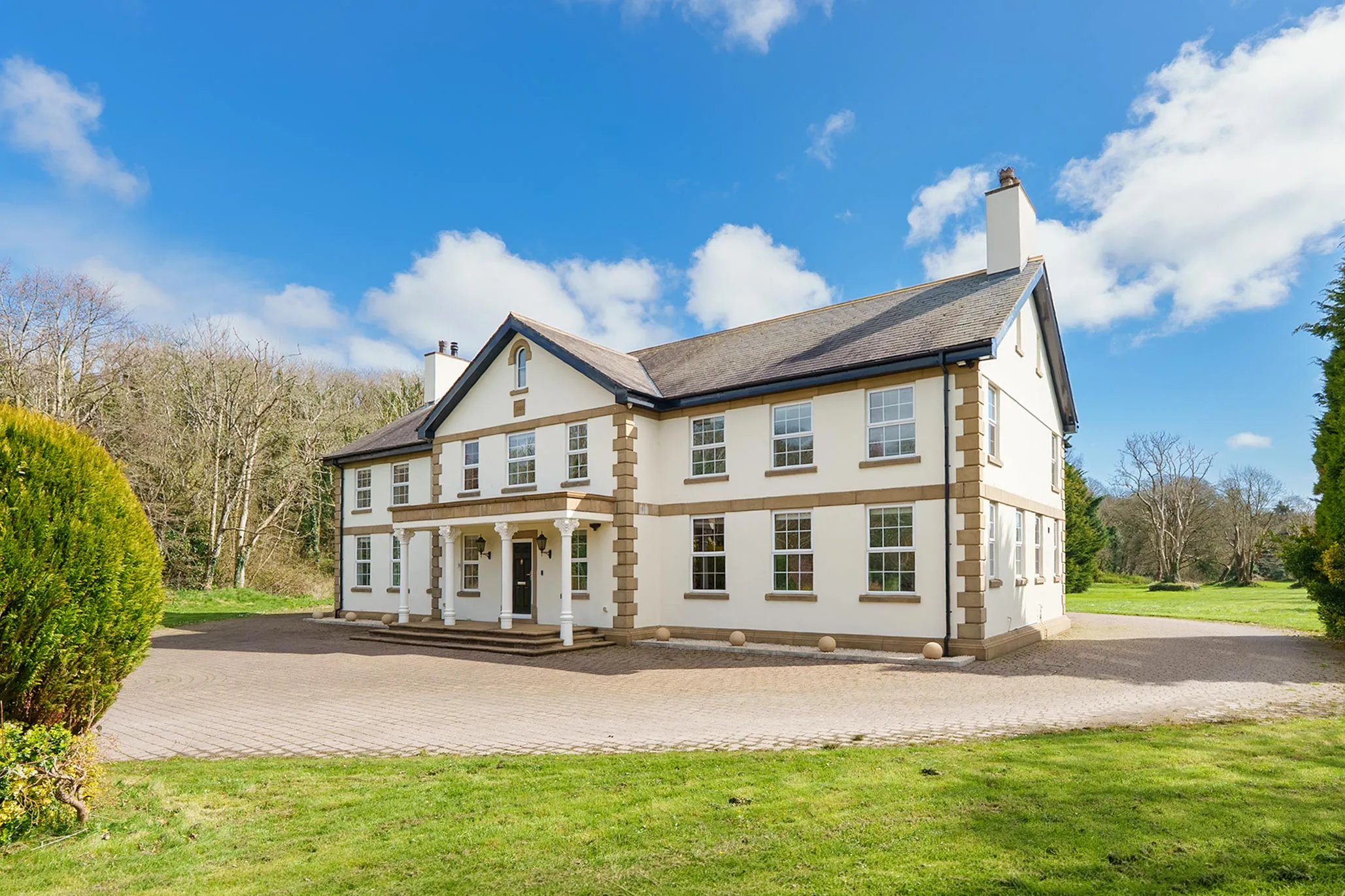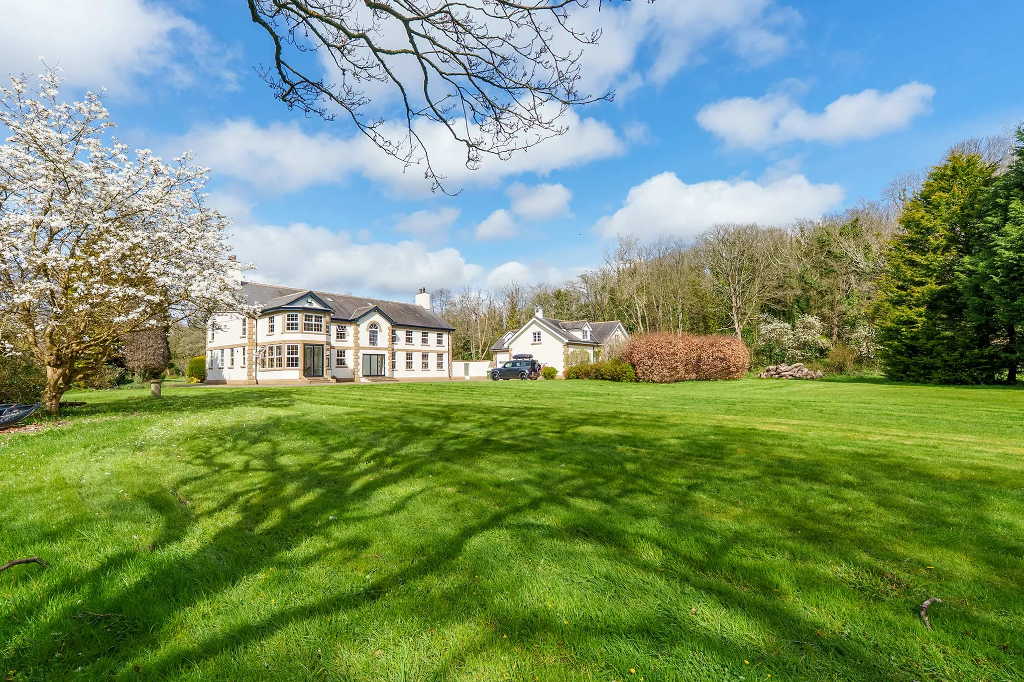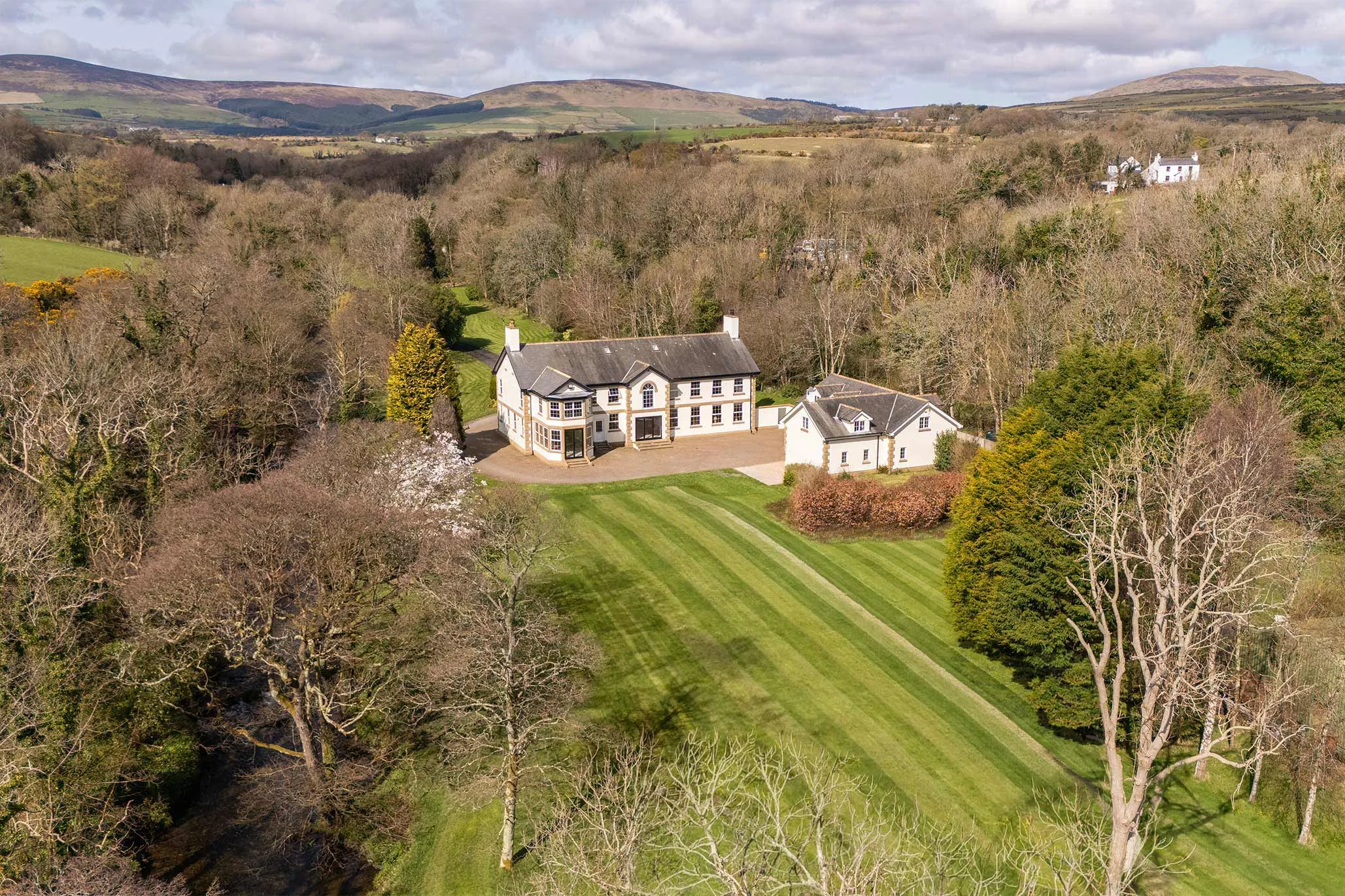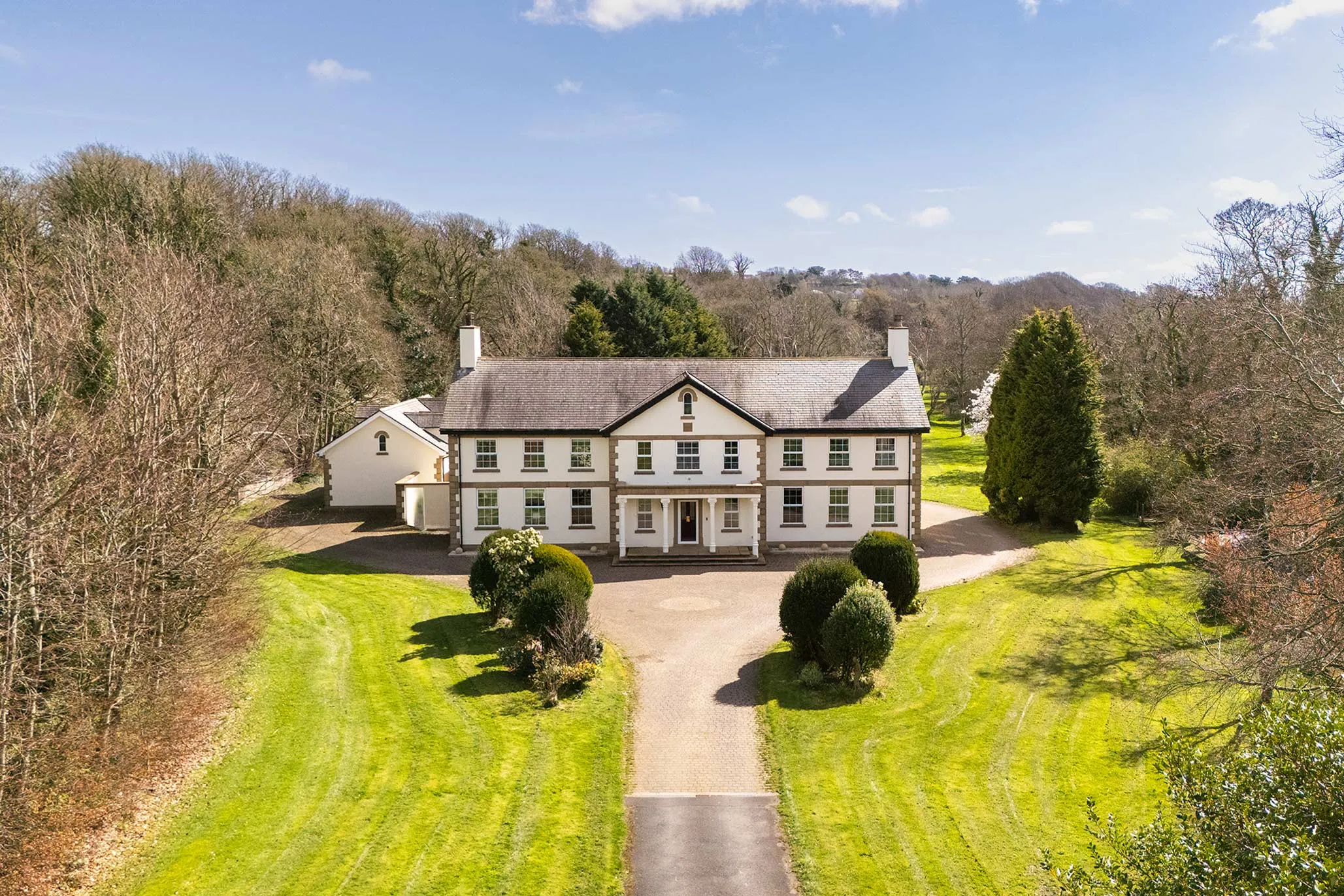 Garforth Gray Luxury, represented by Jonathan Garforth, is privileged to present this magnificent Georgian style country estate - an exceptional and rare offering set within approximately 10 acres of private parkland, complete with its own stretch of the River Glass. Combining classical architectural elegance with meticulous modern refinement, this distinguished residence delivers a lifestyle of privacy, grandeur, and versatility, all within easy reach of Douglas.