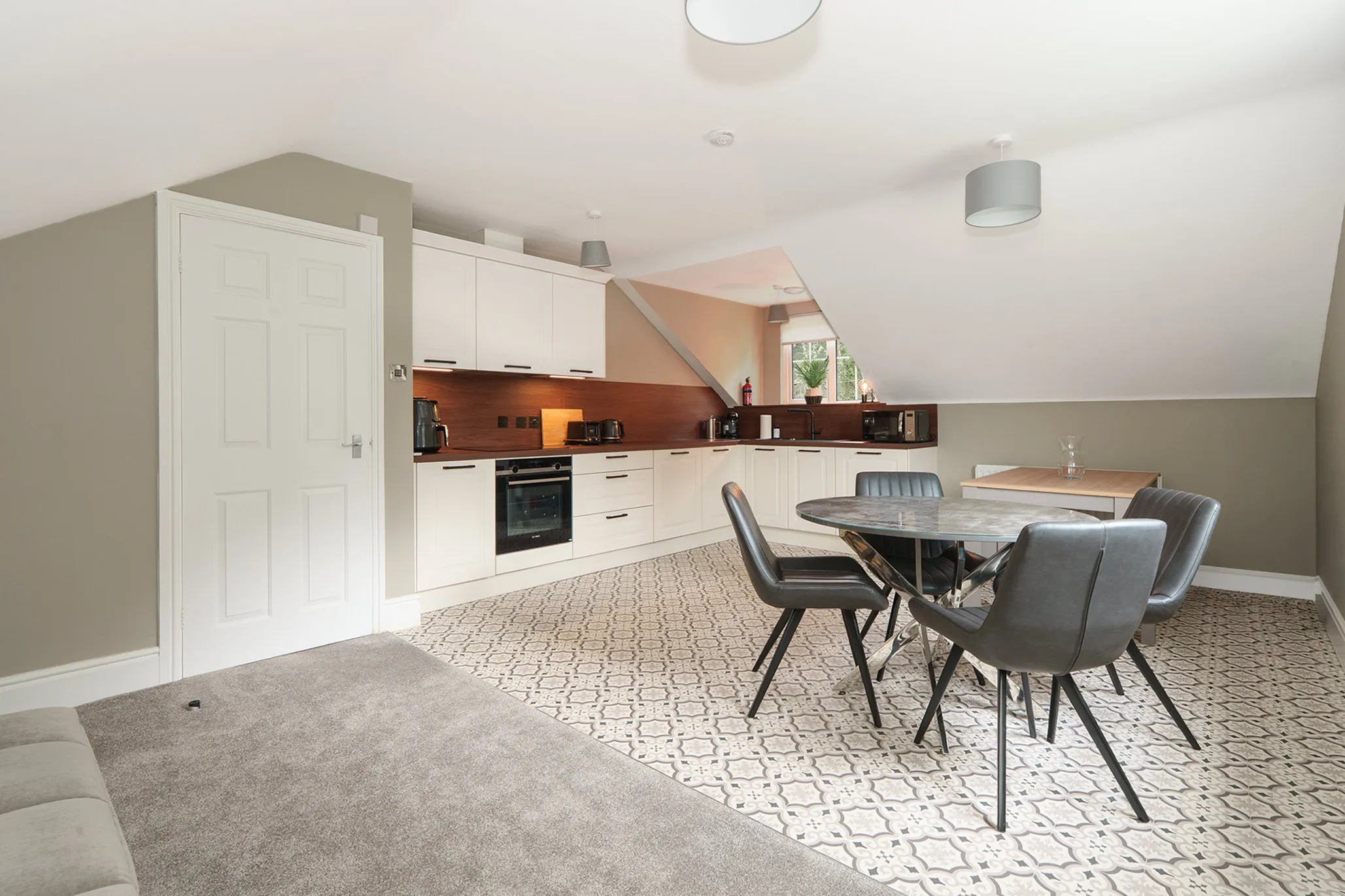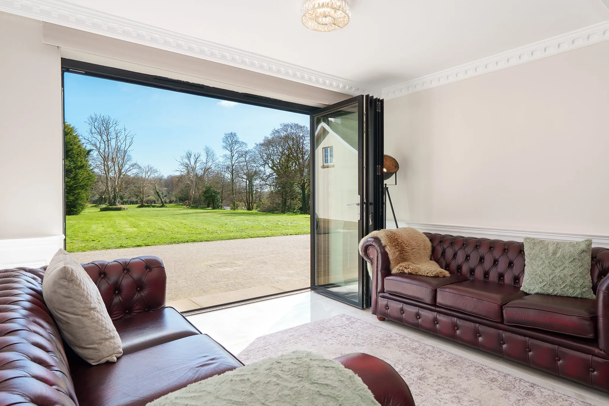 In addition to the main residence, a spacious self-contained apartment offers excellent ancillary accommodation. Designed to provide both privacy and independence, it is ideally suited for multi-generational living, visiting guests, or live-in staff. This space has also been elegantly and luxuriously modernised, and comprises of a large living room, stunning newly fitted dining kitchen, one double bedroom, and a luxury shower room.