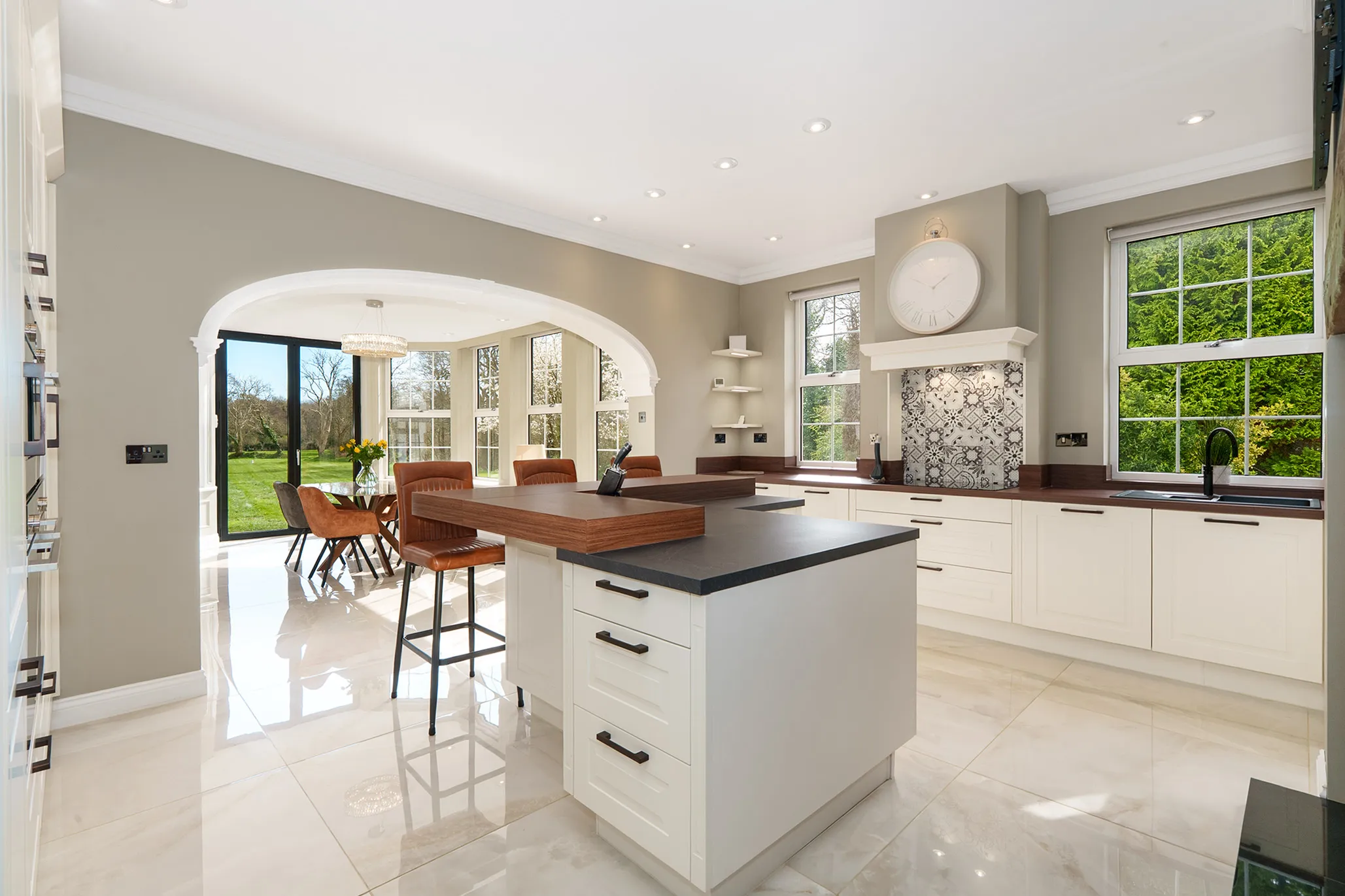 - Three elegant reception rooms, study, and a beautiful dining kitchen with pantry