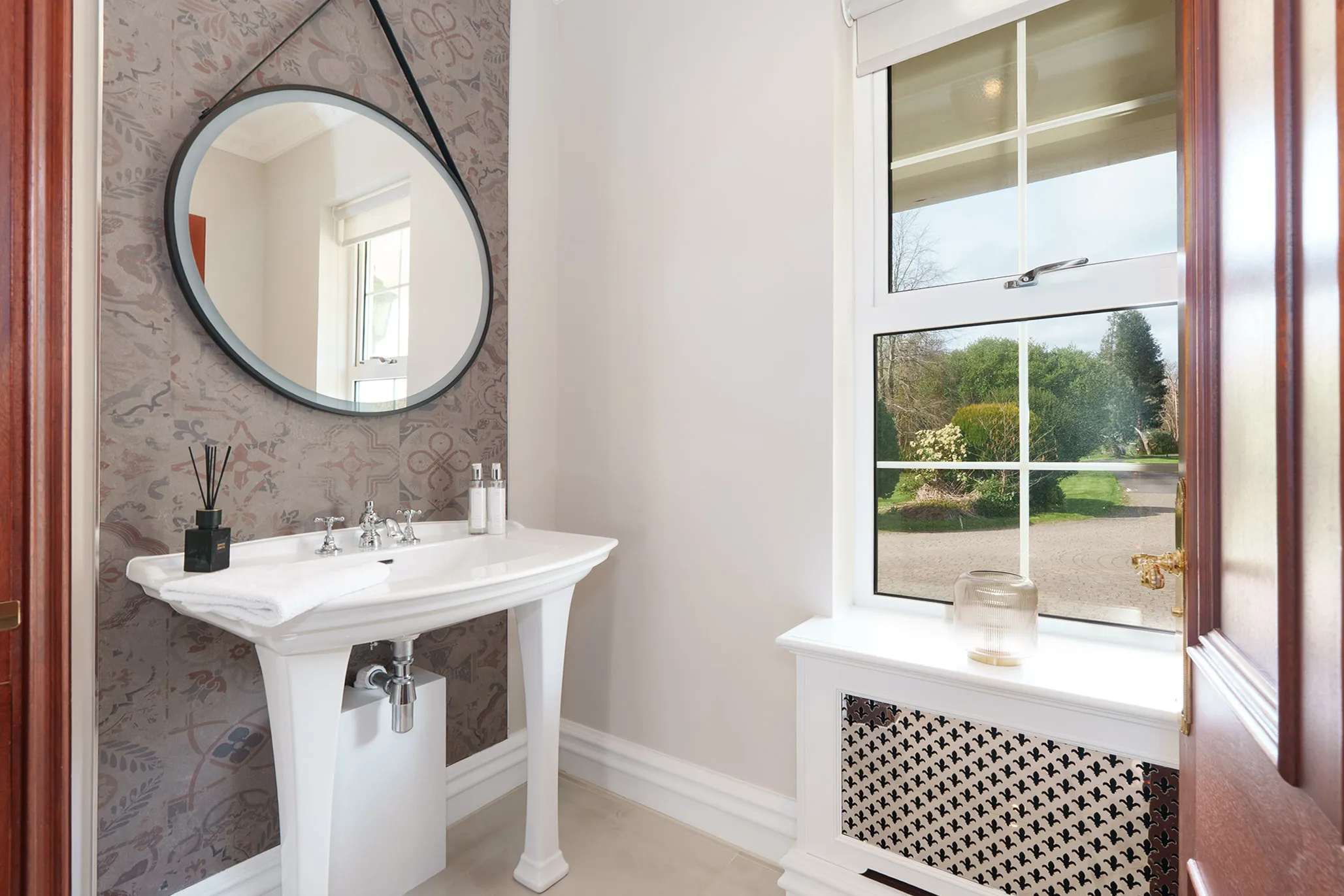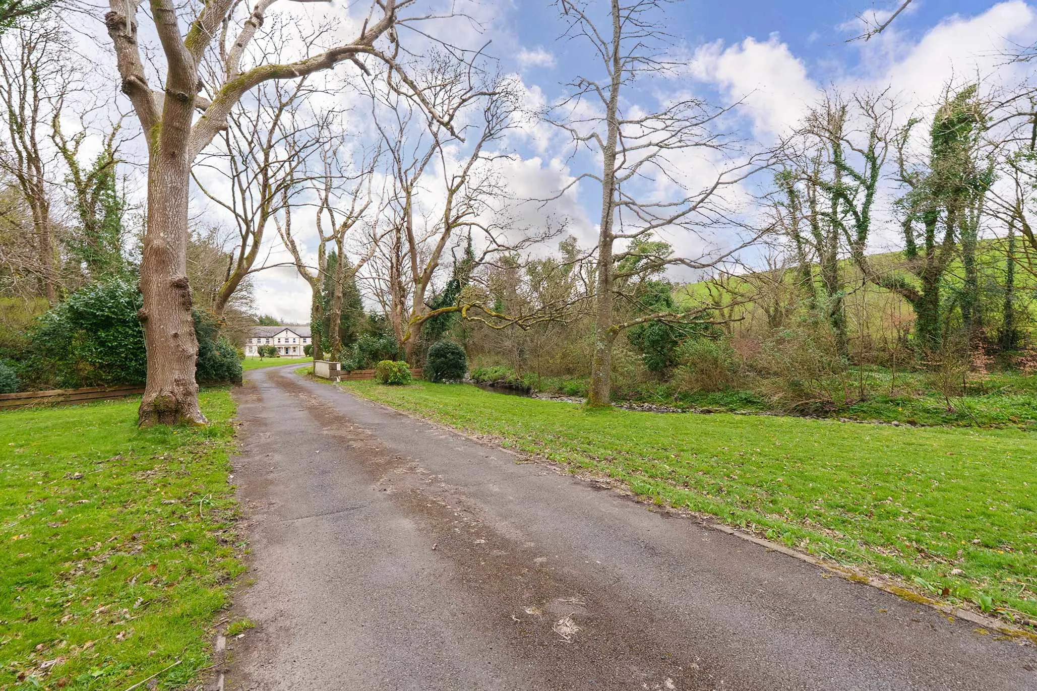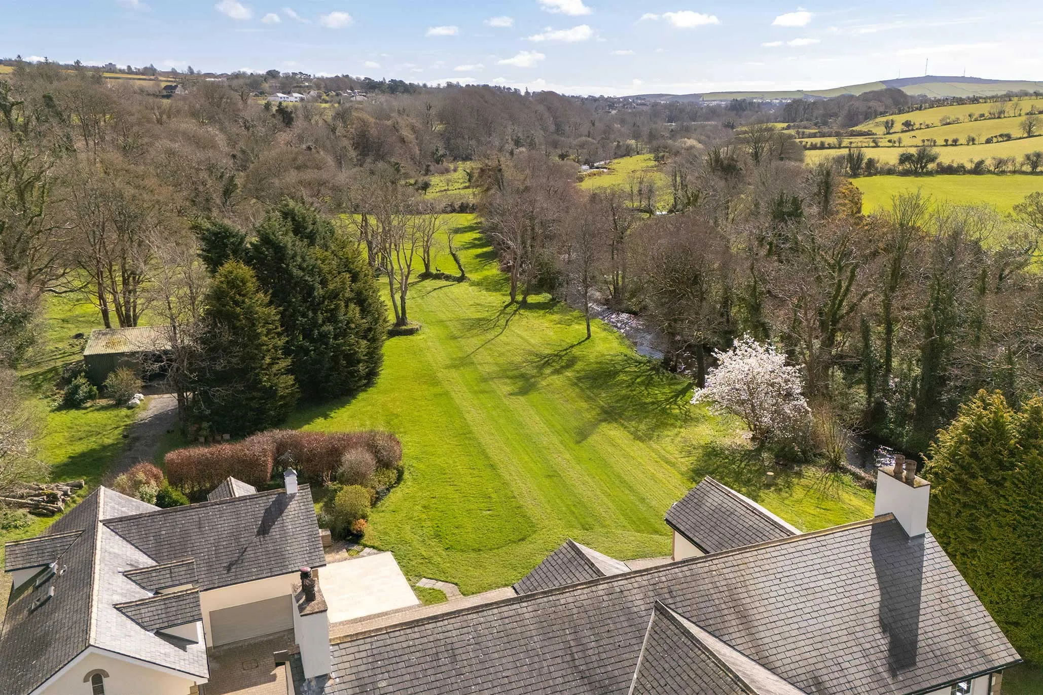 Set amidst beautifully maintained grounds, this impressive country mansion enjoys a peaceful and highly sought-after setting, surrounded by unspoilt countryside and scenic outlooks. The approach is nothing short of spectacular, with an imposing sweeping driveway leading through the grounds to a rear courtyard, perfectly complementing the stature and presence of the home.