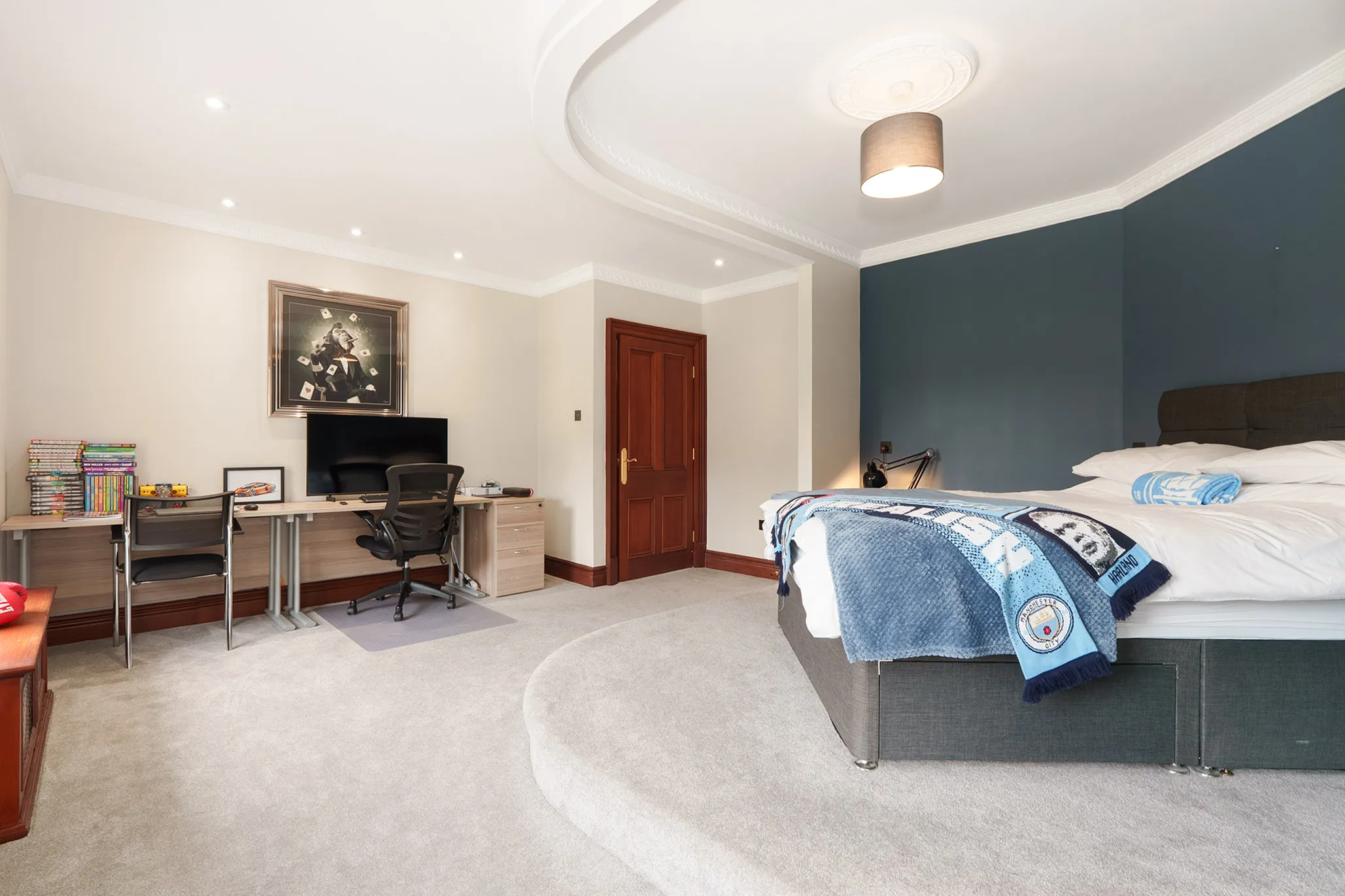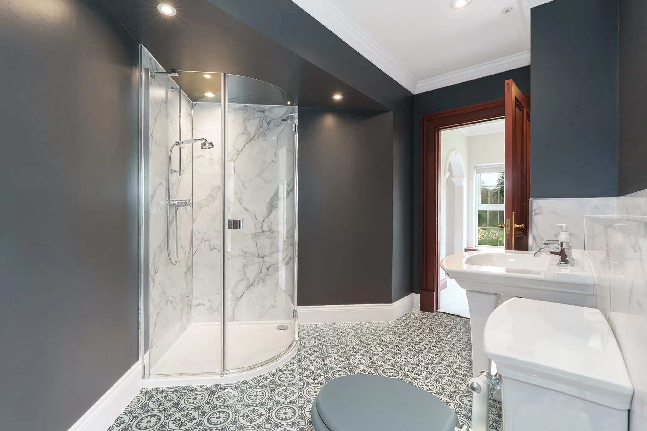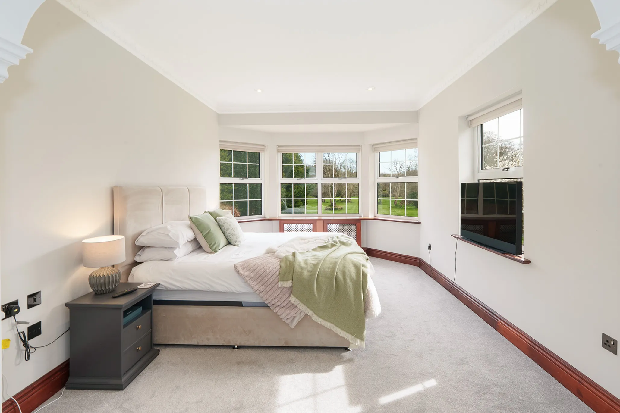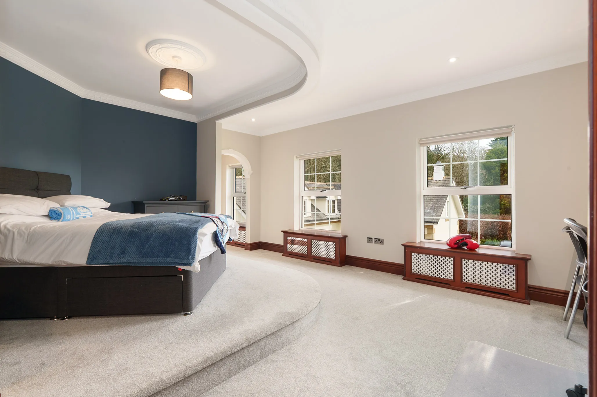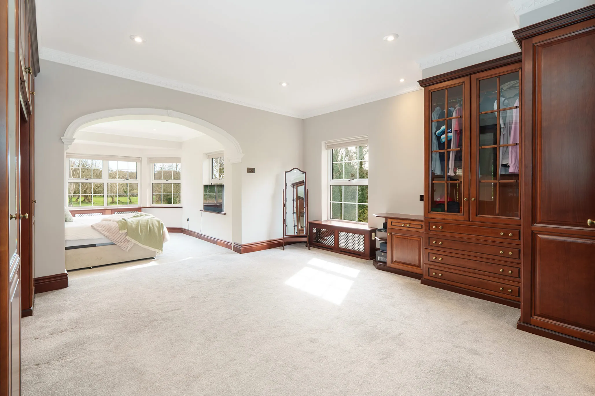 Principal bedroom suite with dressing area and en-suite, and in addition there are a further four bedrooms and three luxury en-suites.