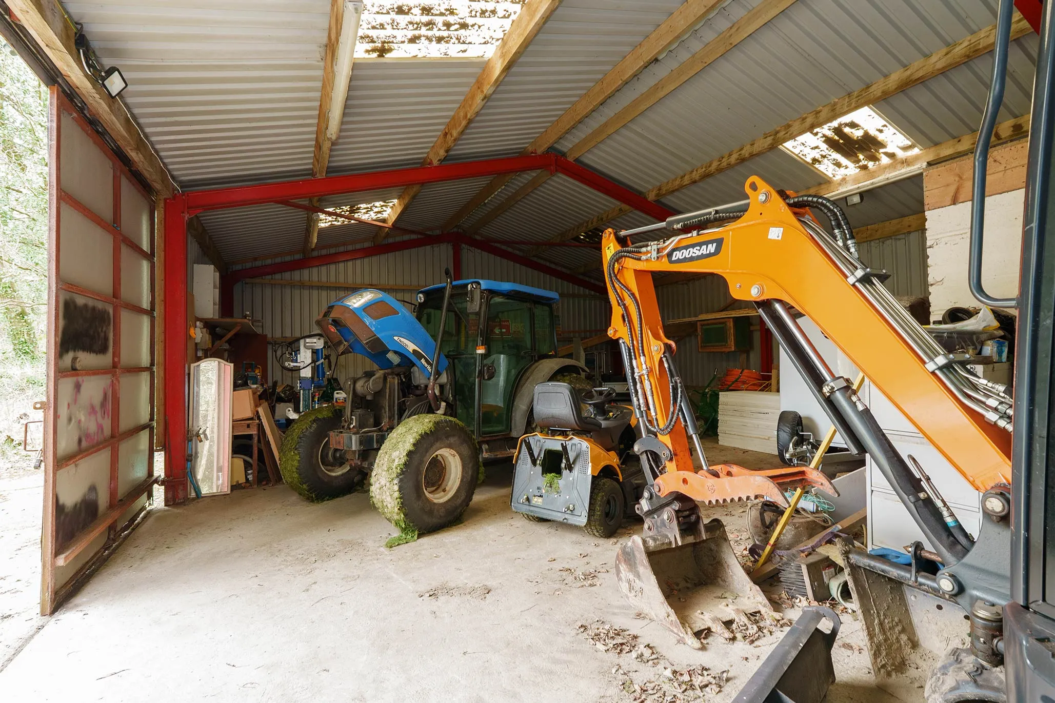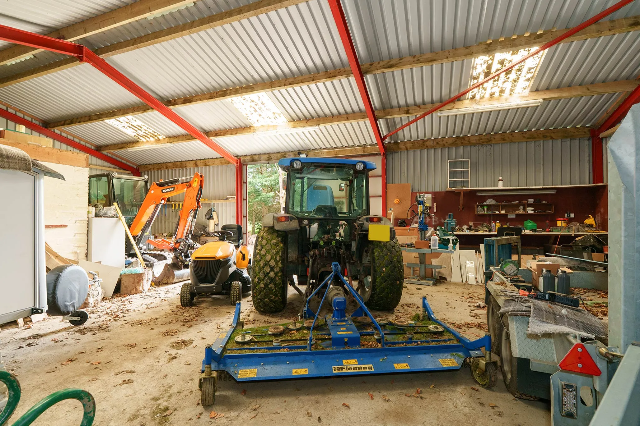 A substantial multi-purpose agricultural building provides outstanding versatility, ideal for tractor or machinery storage, workshop use, or potential conversion to stabling.