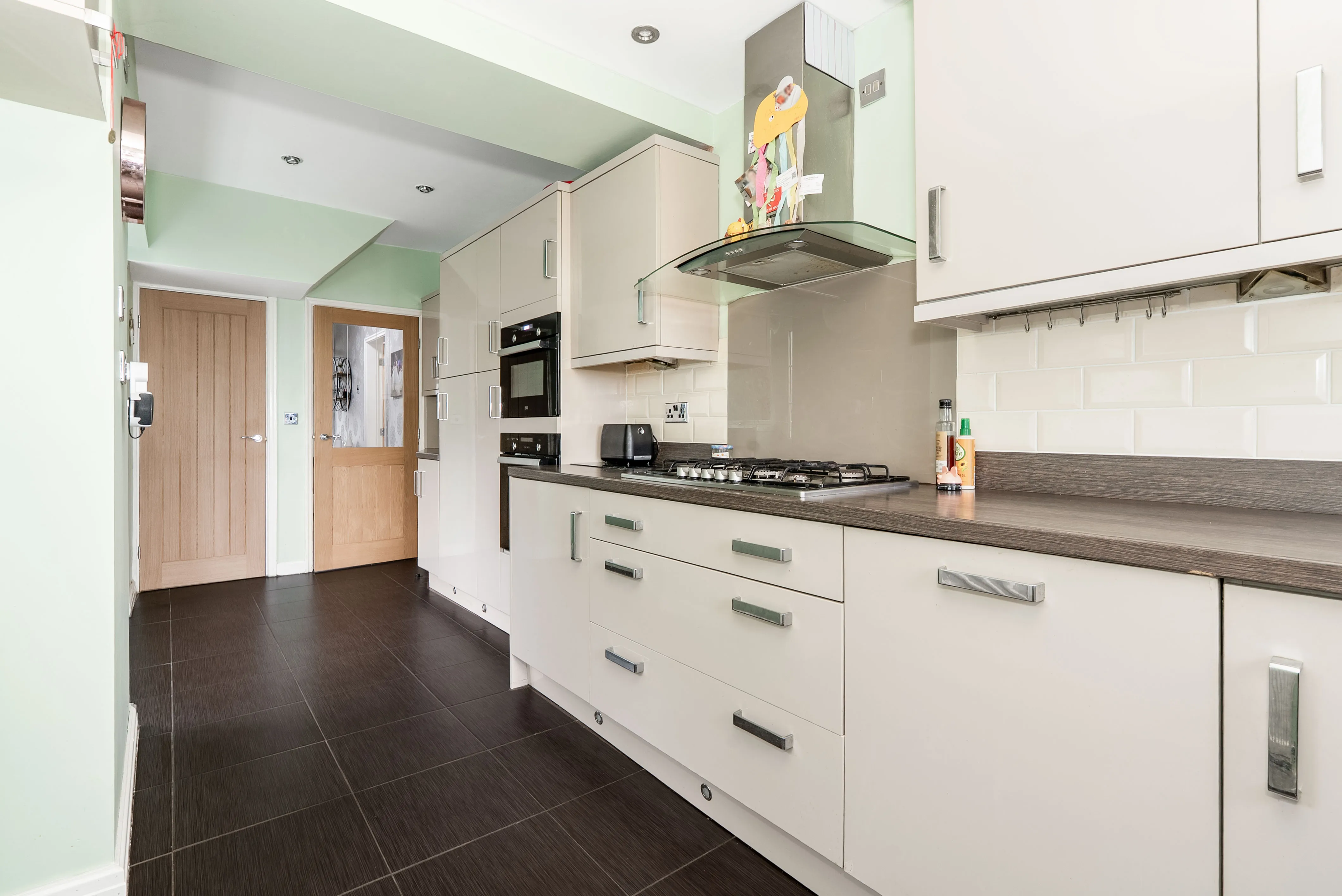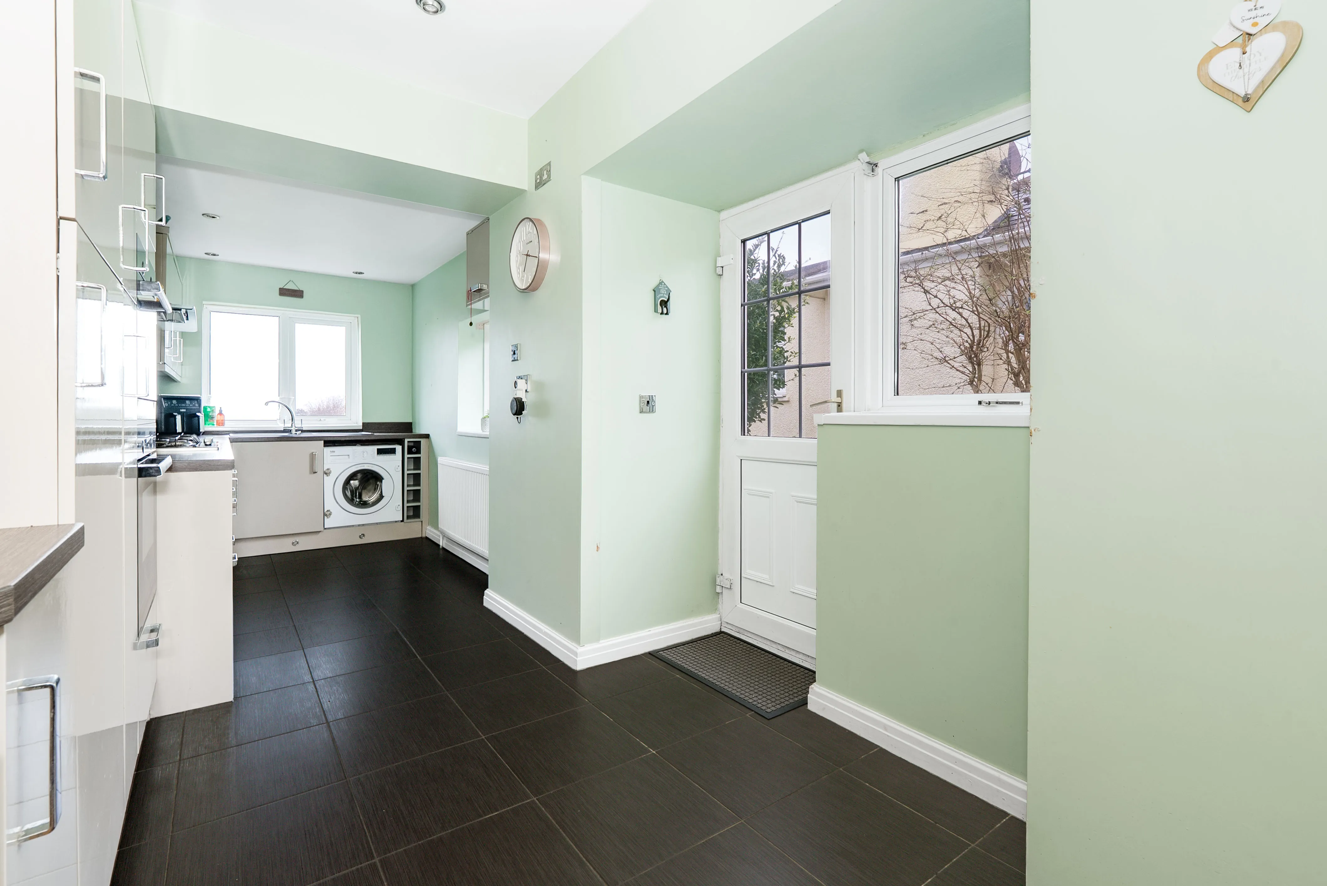 The accommodation includes two separate reception rooms: a charming dining room and a welcoming living room with direct access to the rear garden. The modern, stylish kitchen completes the ground floor.